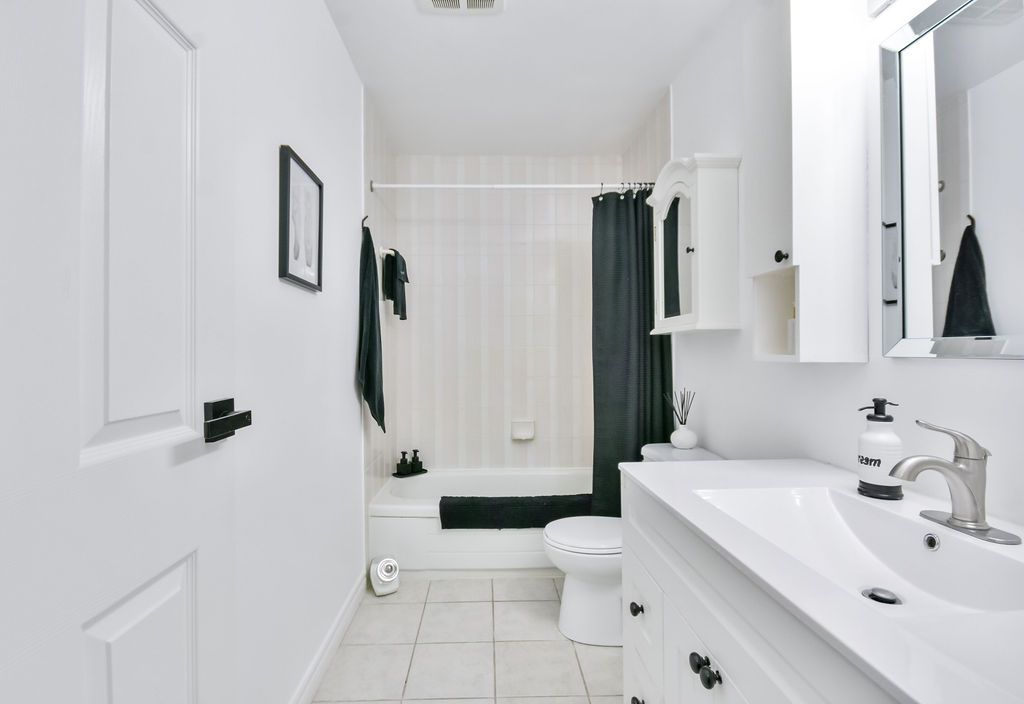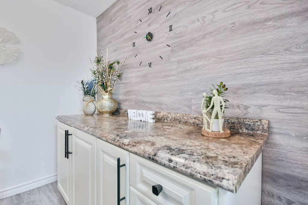 • Stylish white kitchen with granite countertops for cooking and entertaining.