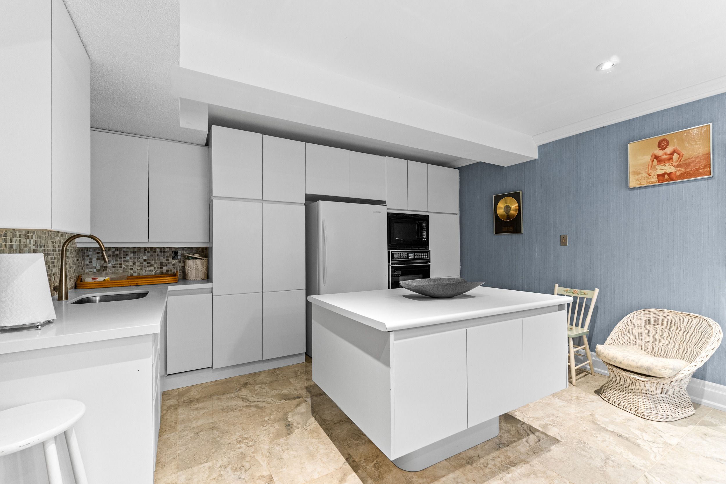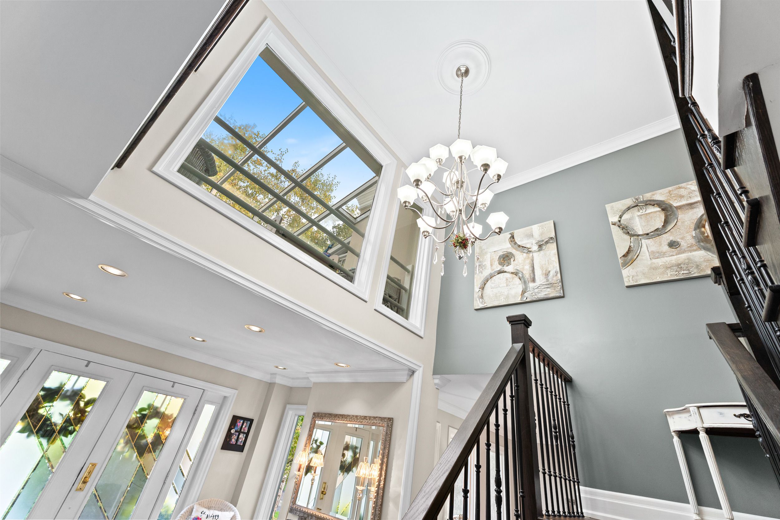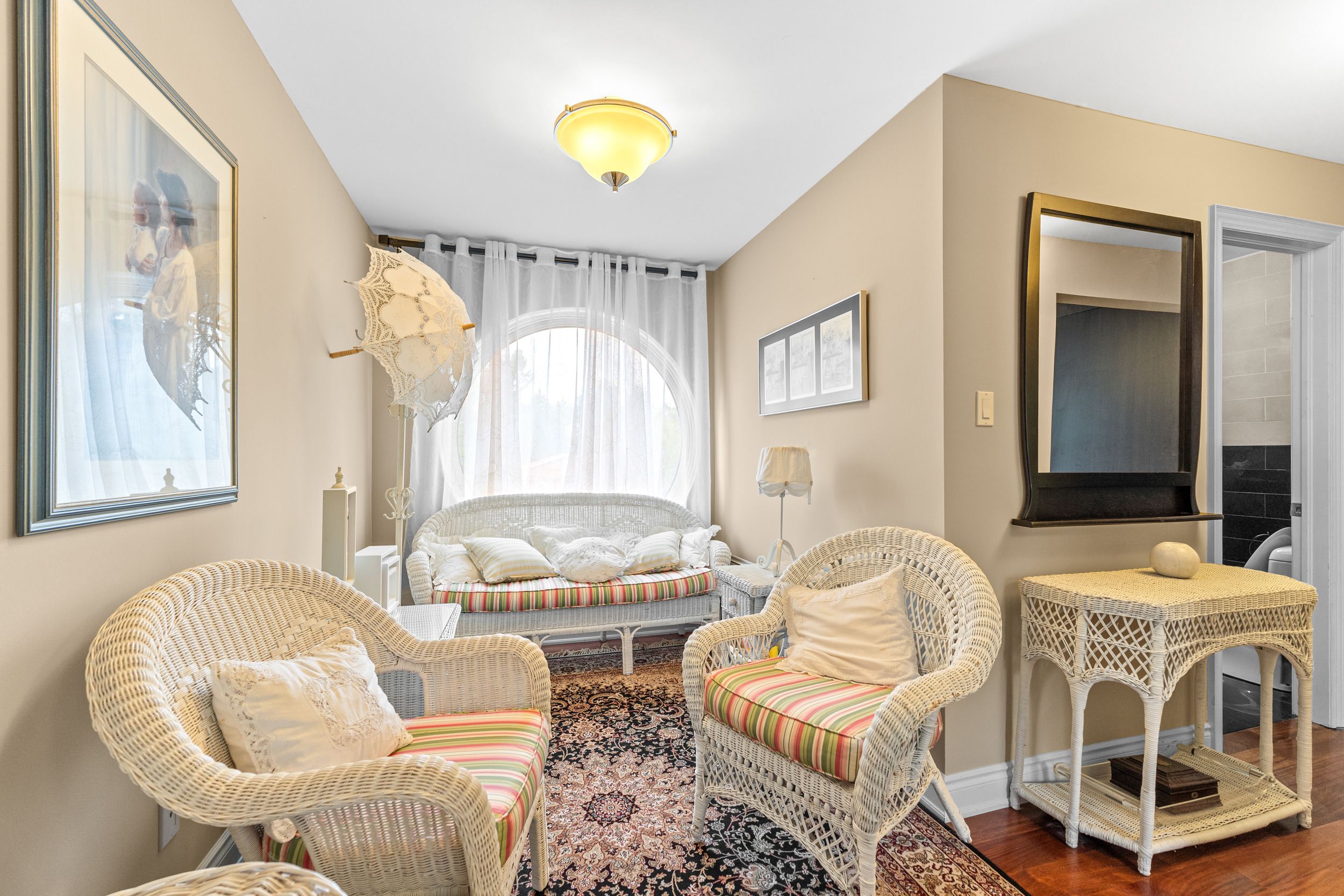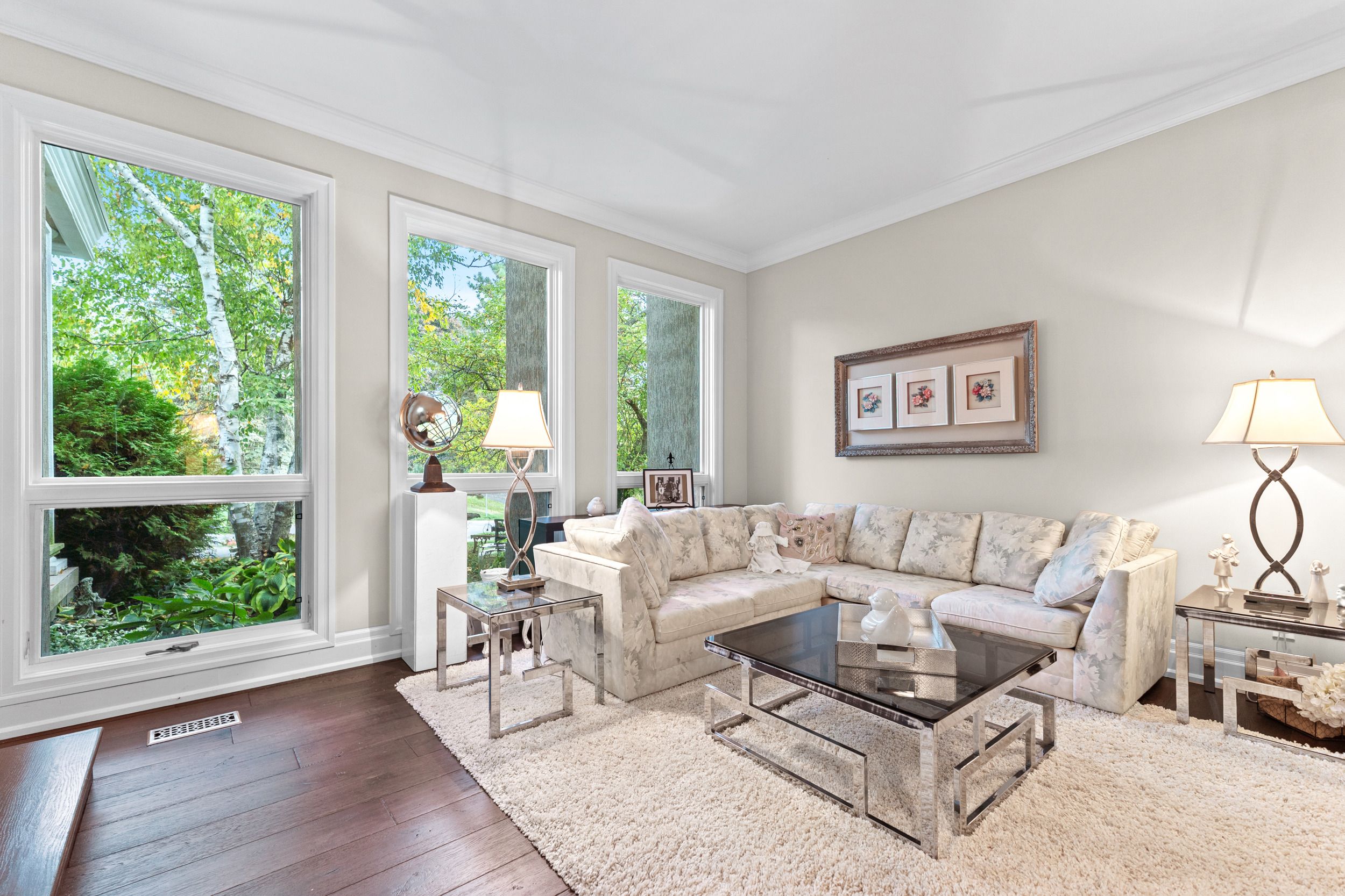 • Bright sunken living room with dramatic floor-to-ceiling windows.