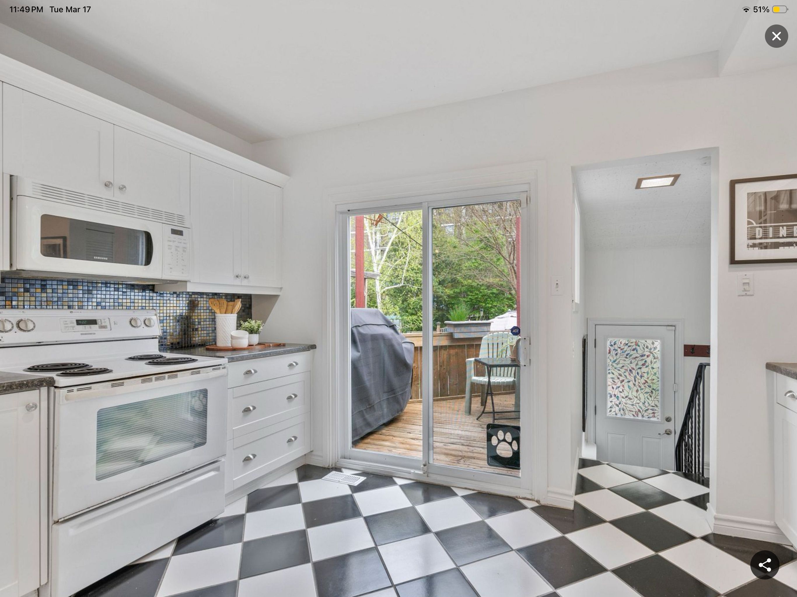 • Ample kitchen space with a walkout to the deck and big pantry.