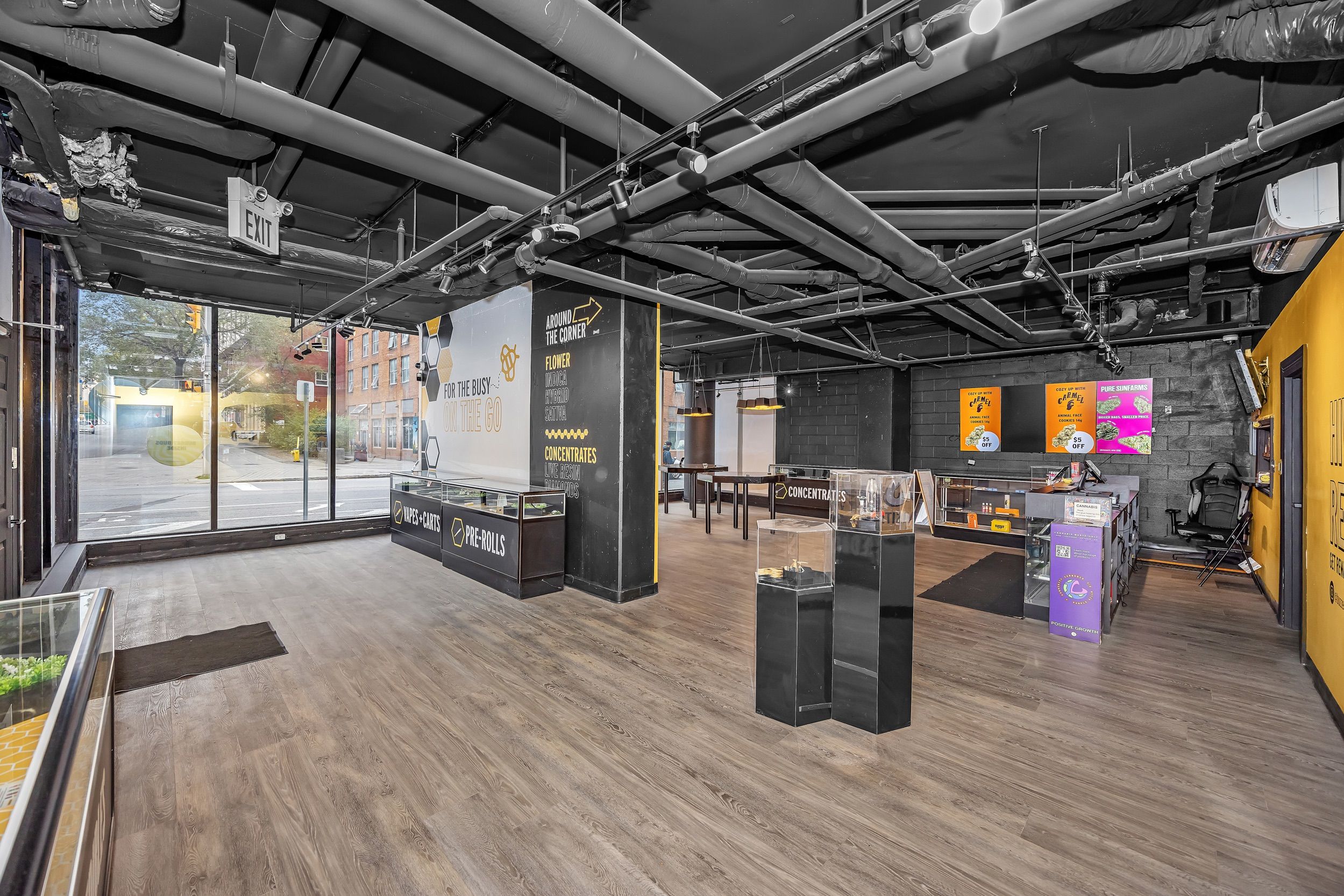• Large street-facing windows for excellent visibility and foot traffic.