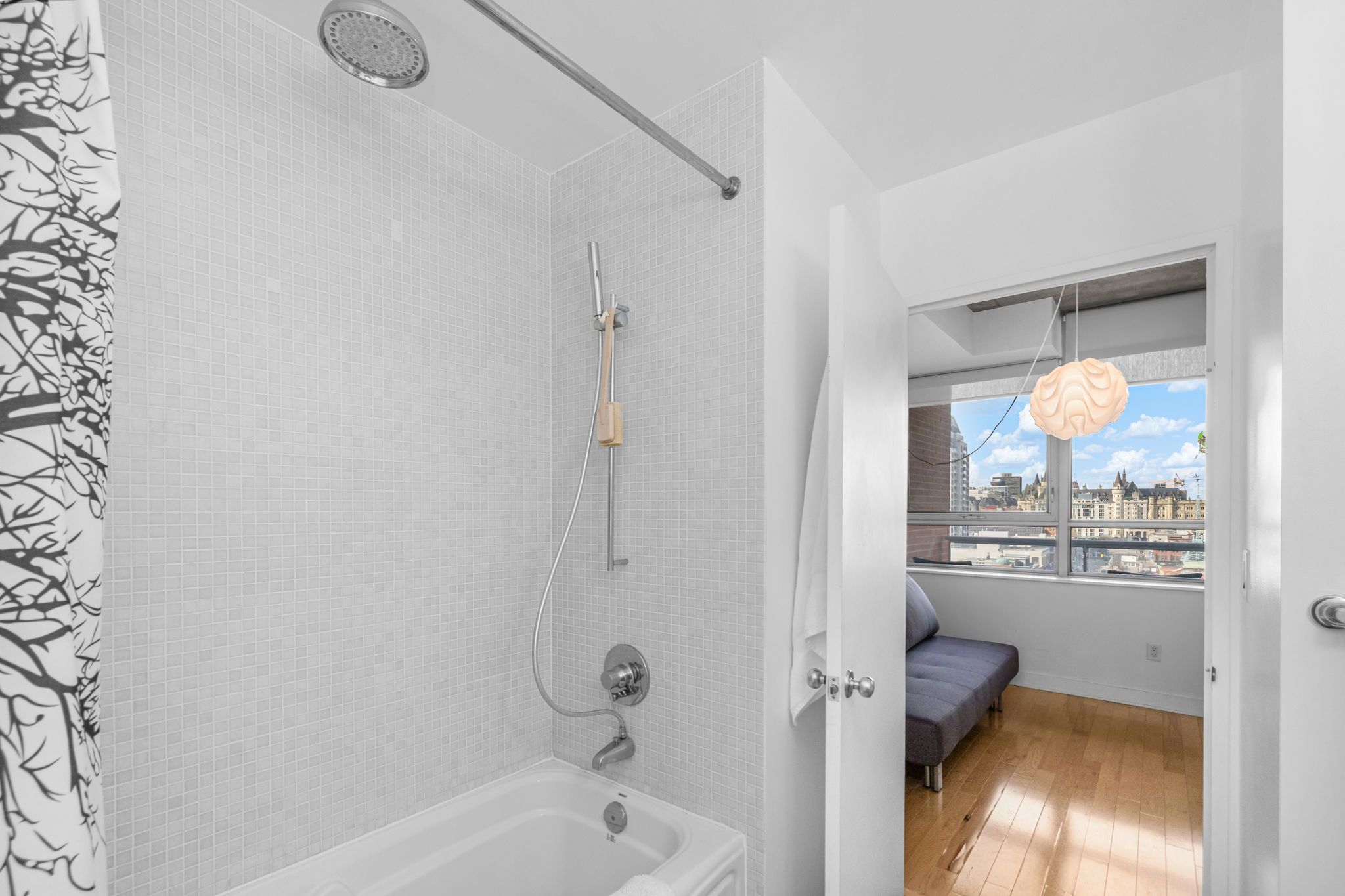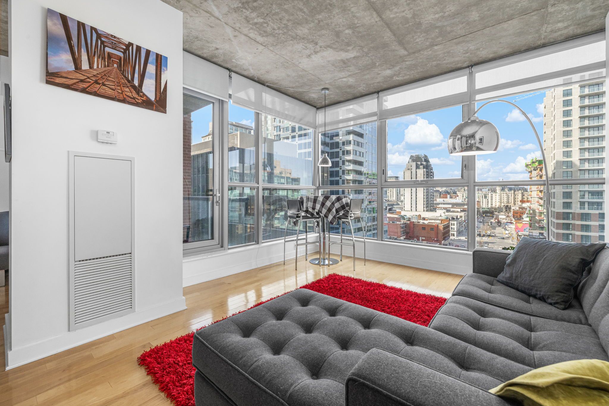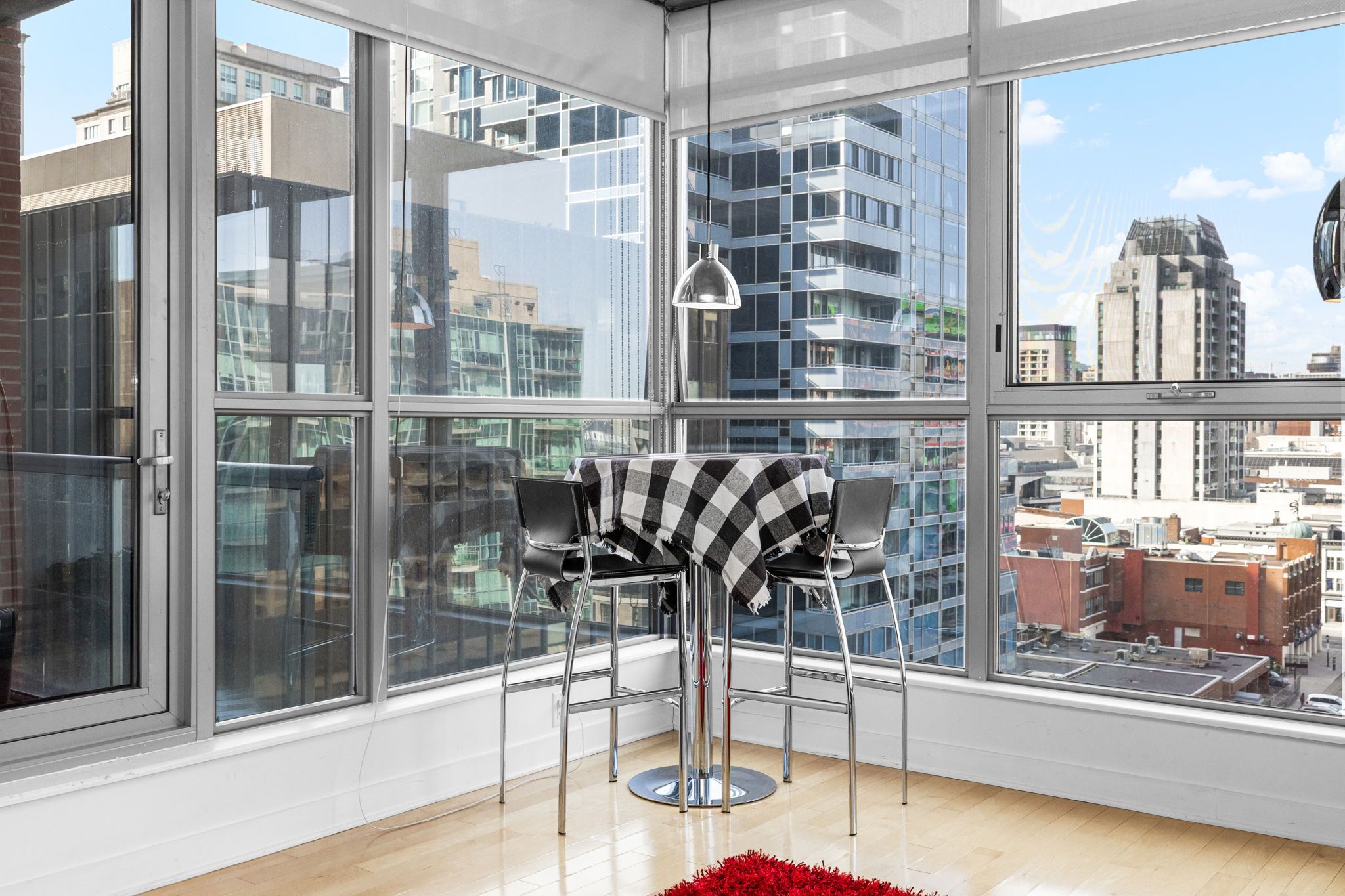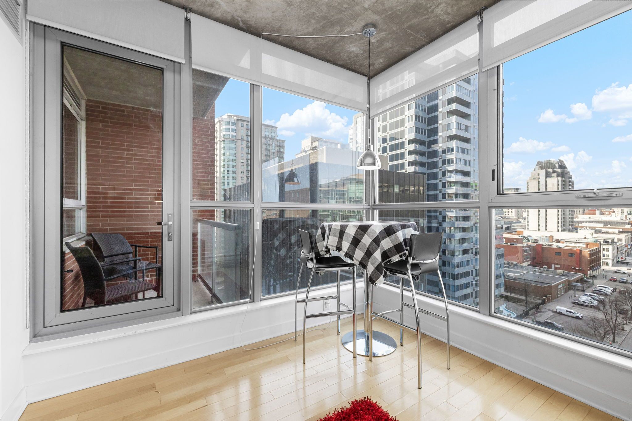 • Floor-to-ceiling windows with stunning views from the 12th floor.