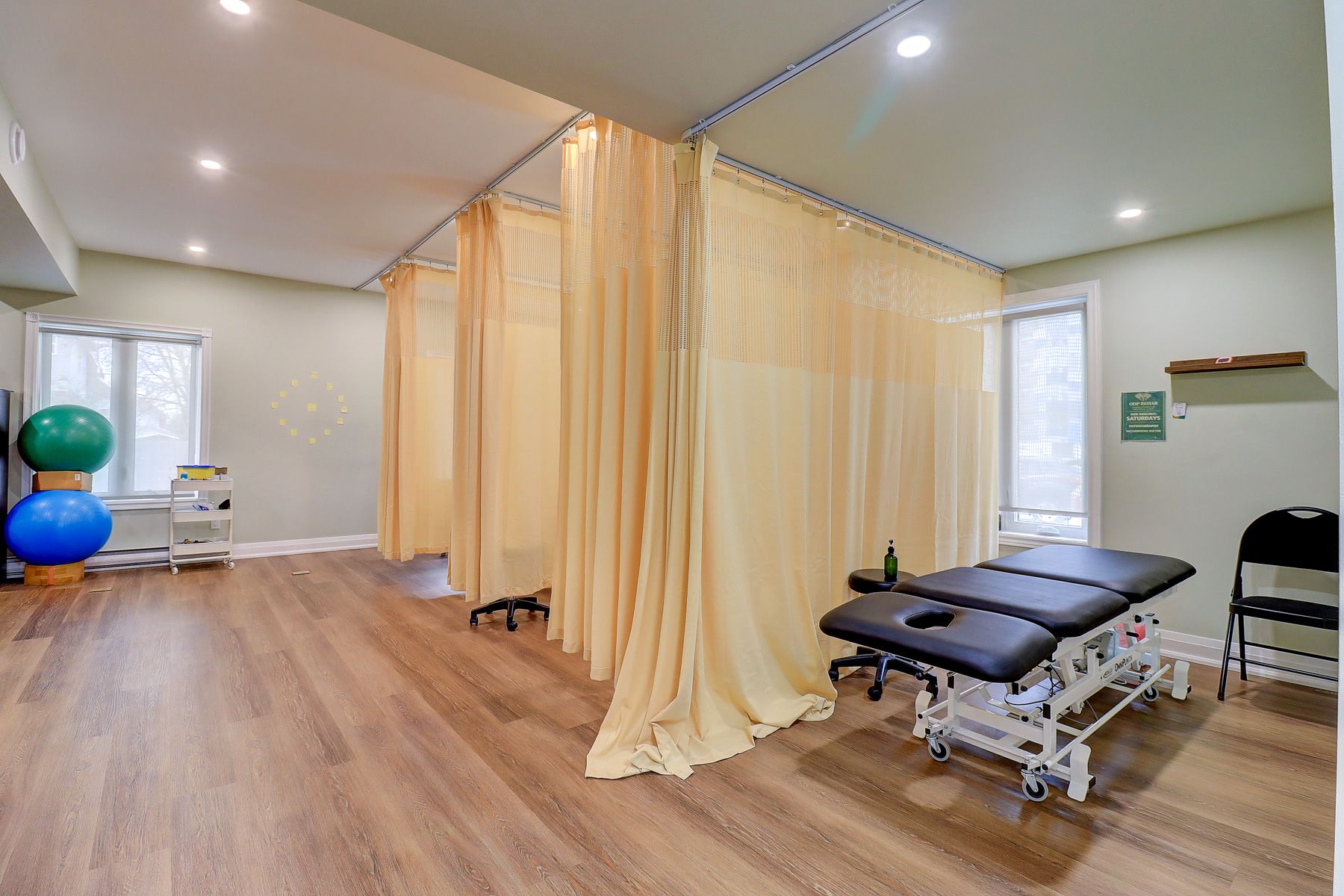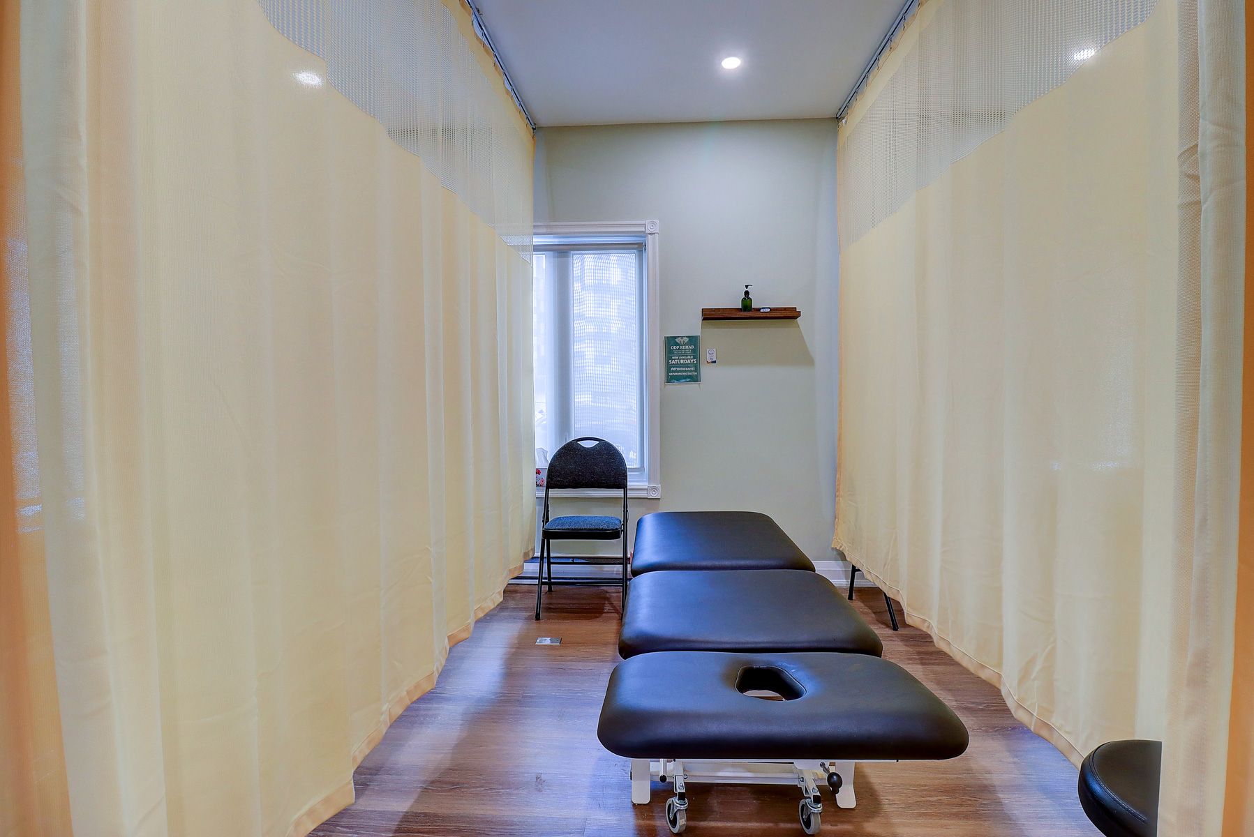 • Private treatment room available in a busy physiotherapy clinic.