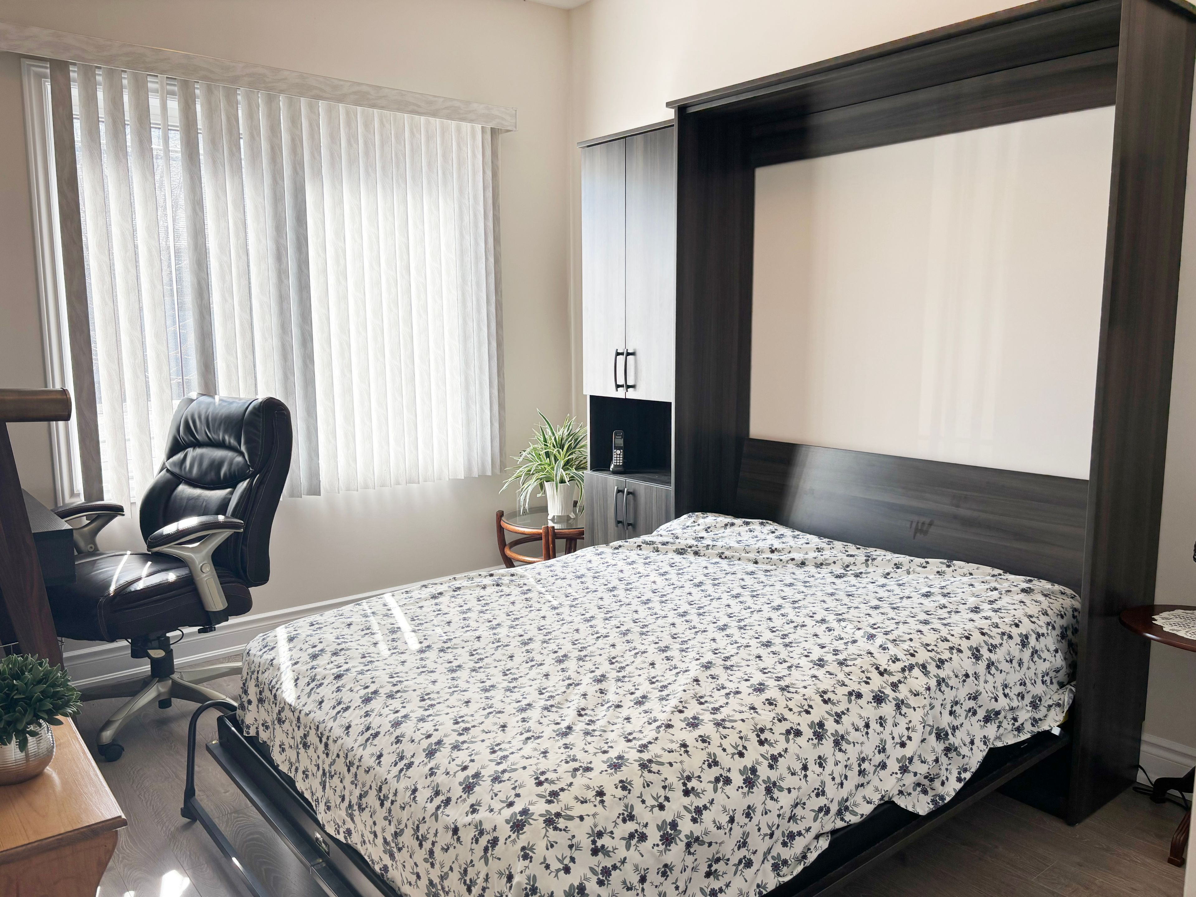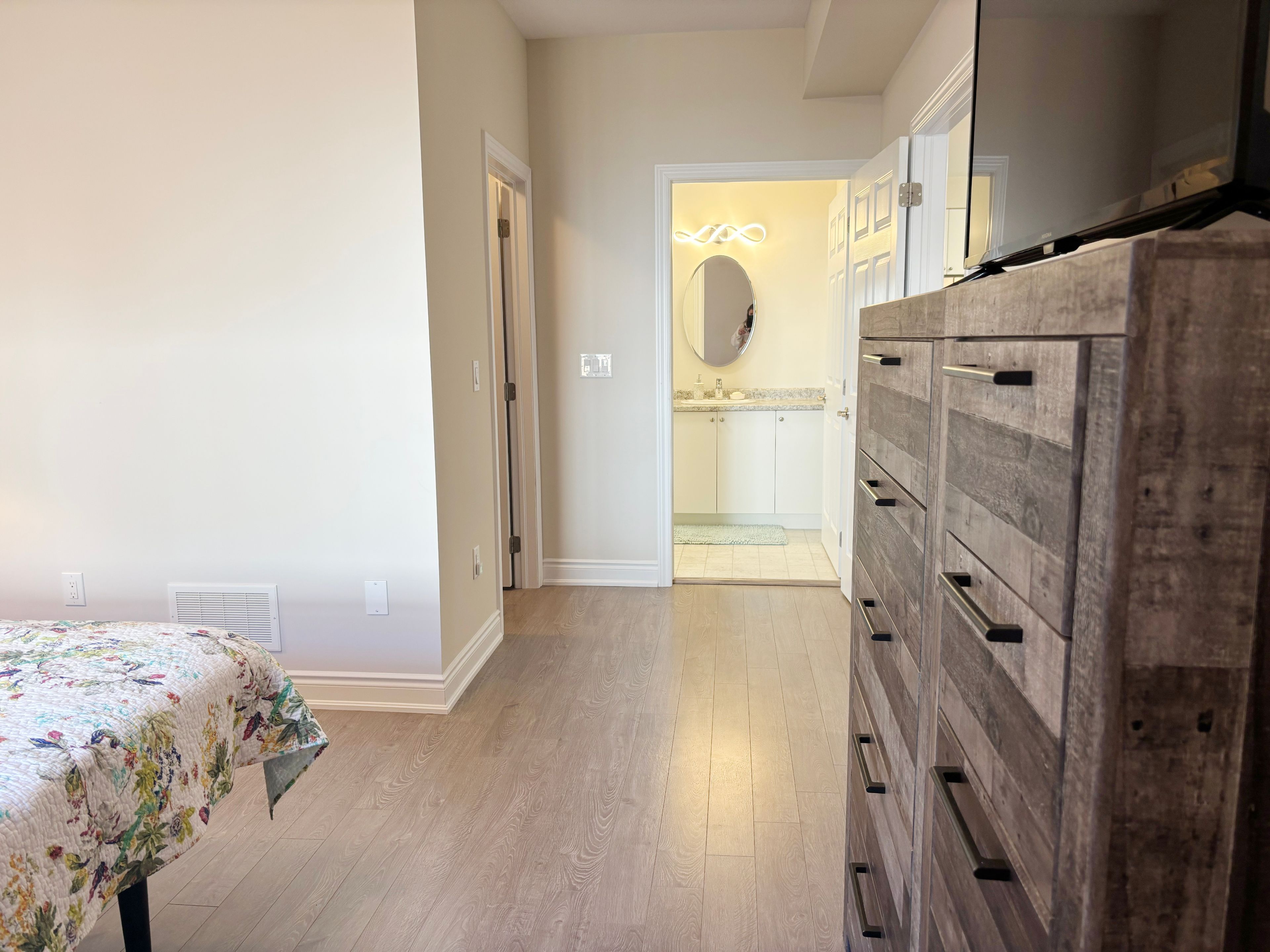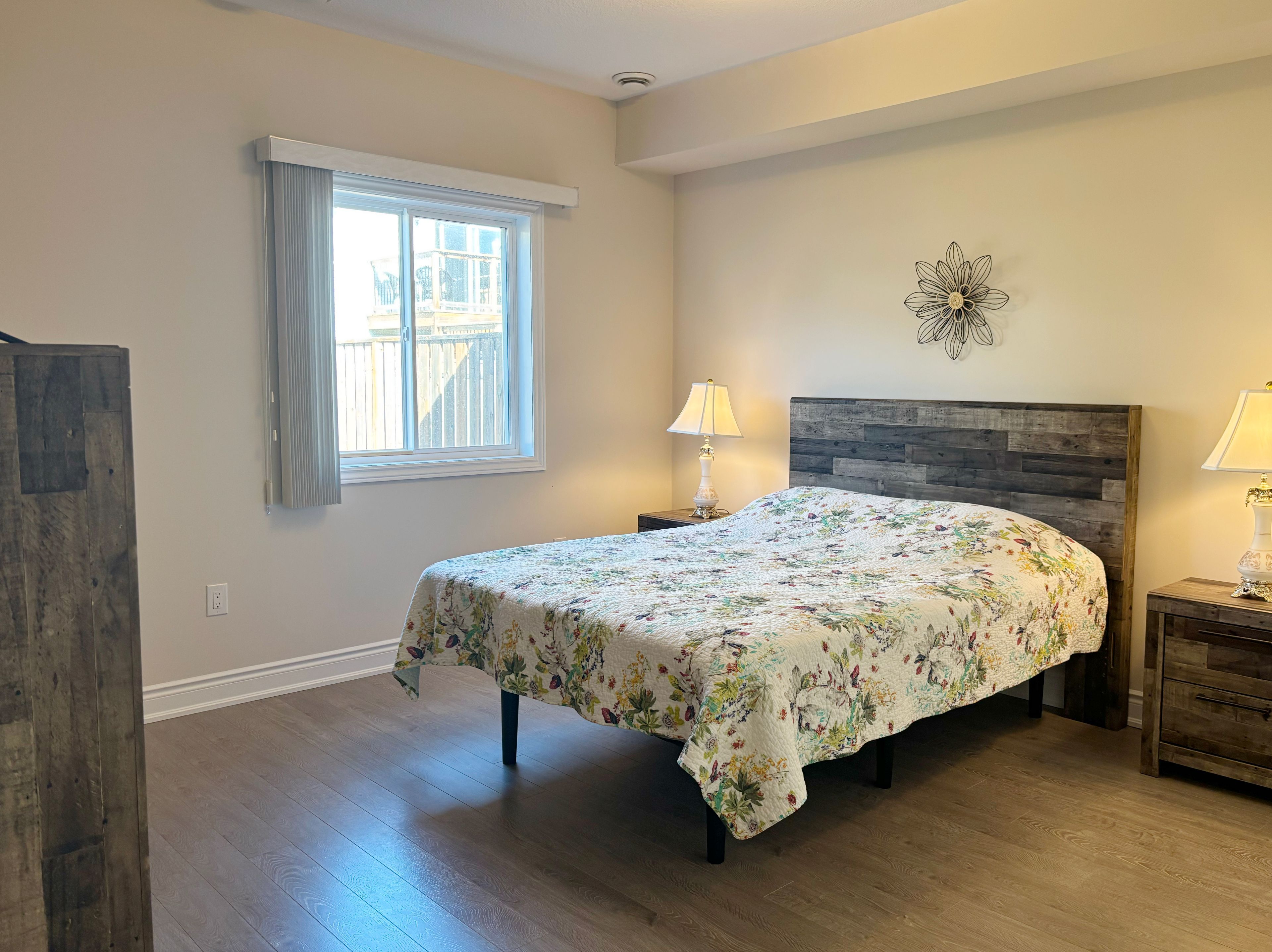 If you've been thinking about simplifying your space without giving anything up, this one might surprise you. Set in north lake village in orillia, this bungalow freehold townhome offers the kind of layout that just makes everyday living easier-everything on one level, no stairs to think about, and a floor plan that actually feels spacious. An open concept design and 9-foot ceilings, pot lighting, really opens things up, giving the whole home a bright, easygoing feel. The kitchen sits right at the heart of it, laid out in a practical u-shape with a generous breakfast bar, tiled backsplash, under-mount lighting, and an upgraded fridge with water and ice-perfect for both quiet mornings and casual get-togethers. There's also a pantry for added storage, something you'll appreciate more than you expect. Built on a slab, it's a great option for anyone looking to avoid stairs, and while not fully accessible, the 36-inch interior doors offer added flexibility for mobility. The primary bedroom is genuinely roomy, with a walk-in closet and a comfortable 3-piece ensuite, and a second 4-piece bath is conveniently located near the guest bedroom-ideal for visitors or everyday use. There's even a murphy bed ready for guests when they visit. Storage is practical throughout, including a spacious laundry room with a large linen closet-so everything has its place without feeling cramped. Out back through the patio doors the composite deck, bbq gas line & fully fenced yard give you just enough outdoor space to enjoy-without the usual upkeep. No grass means no lawn maintenance, so you can spend more time relaxing and less time working. Add in inside entry from the garage, a paved driveway, and it all comes together in a way that simply works. For first-time buyers or anyone tired of apartment living, this is a chance to have your own space, your own yard, and the ease of single-level living-all in a quiet, established community.