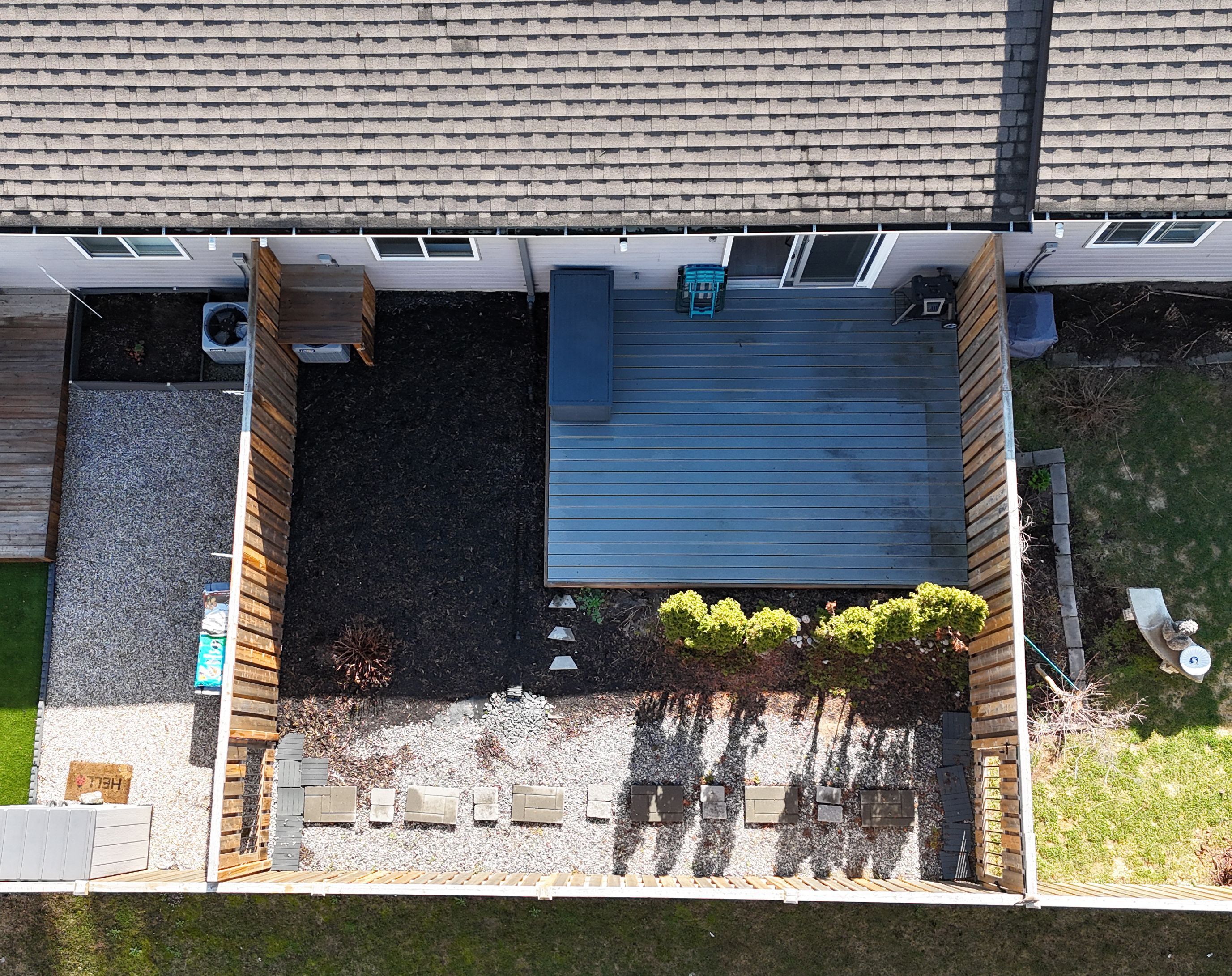 • Fully fenced yard with composite deck and no lawn maintenance required.