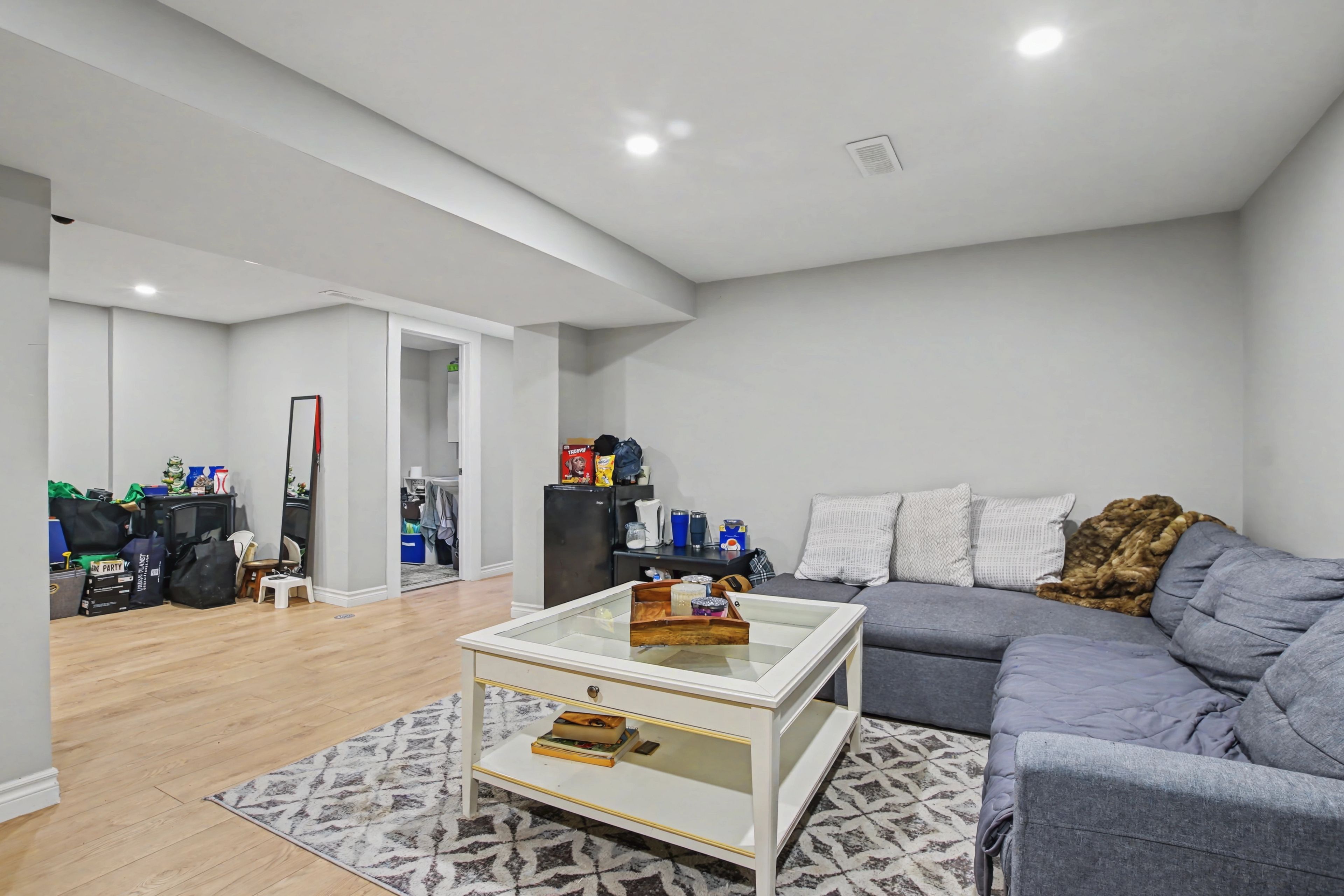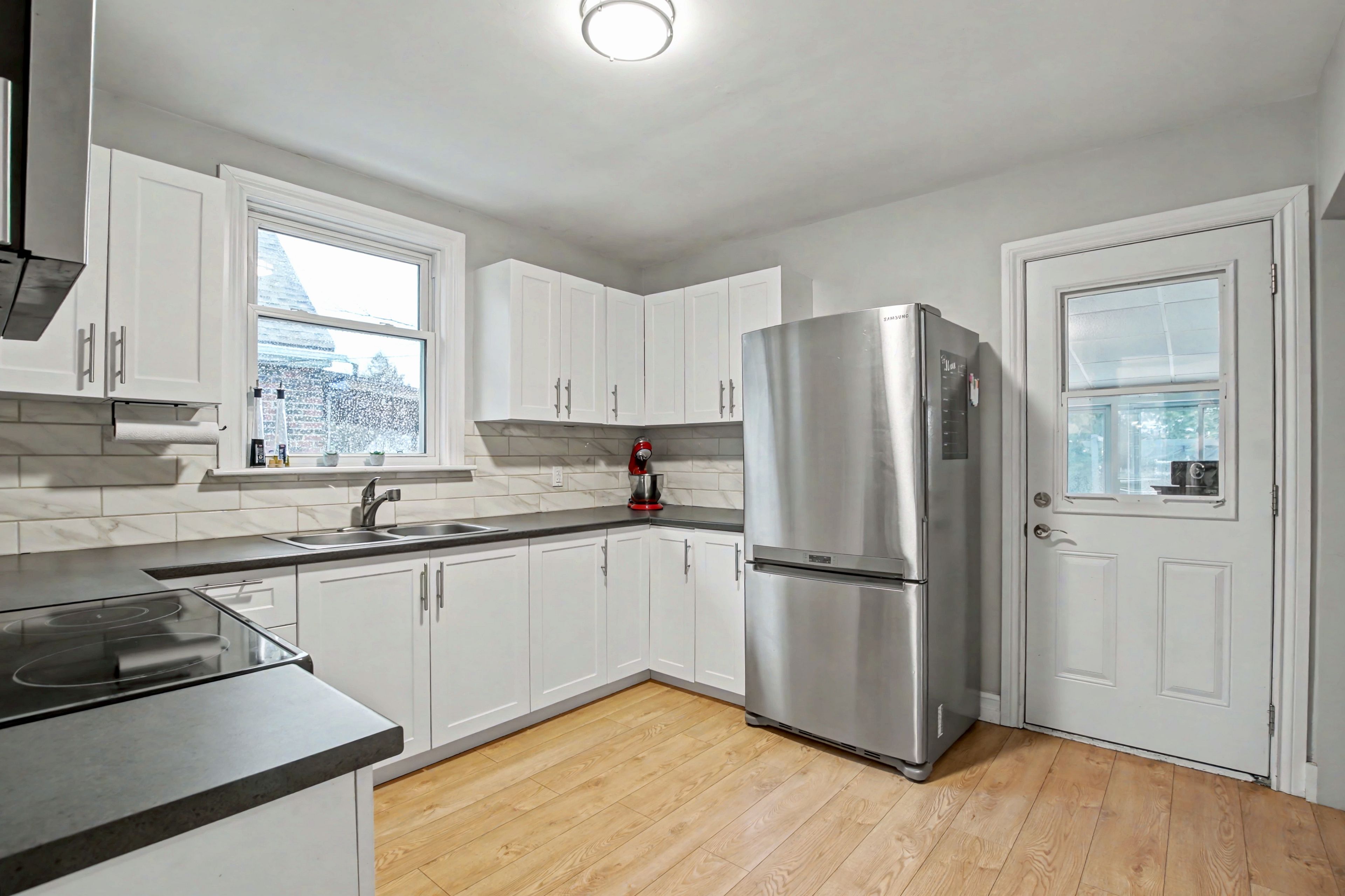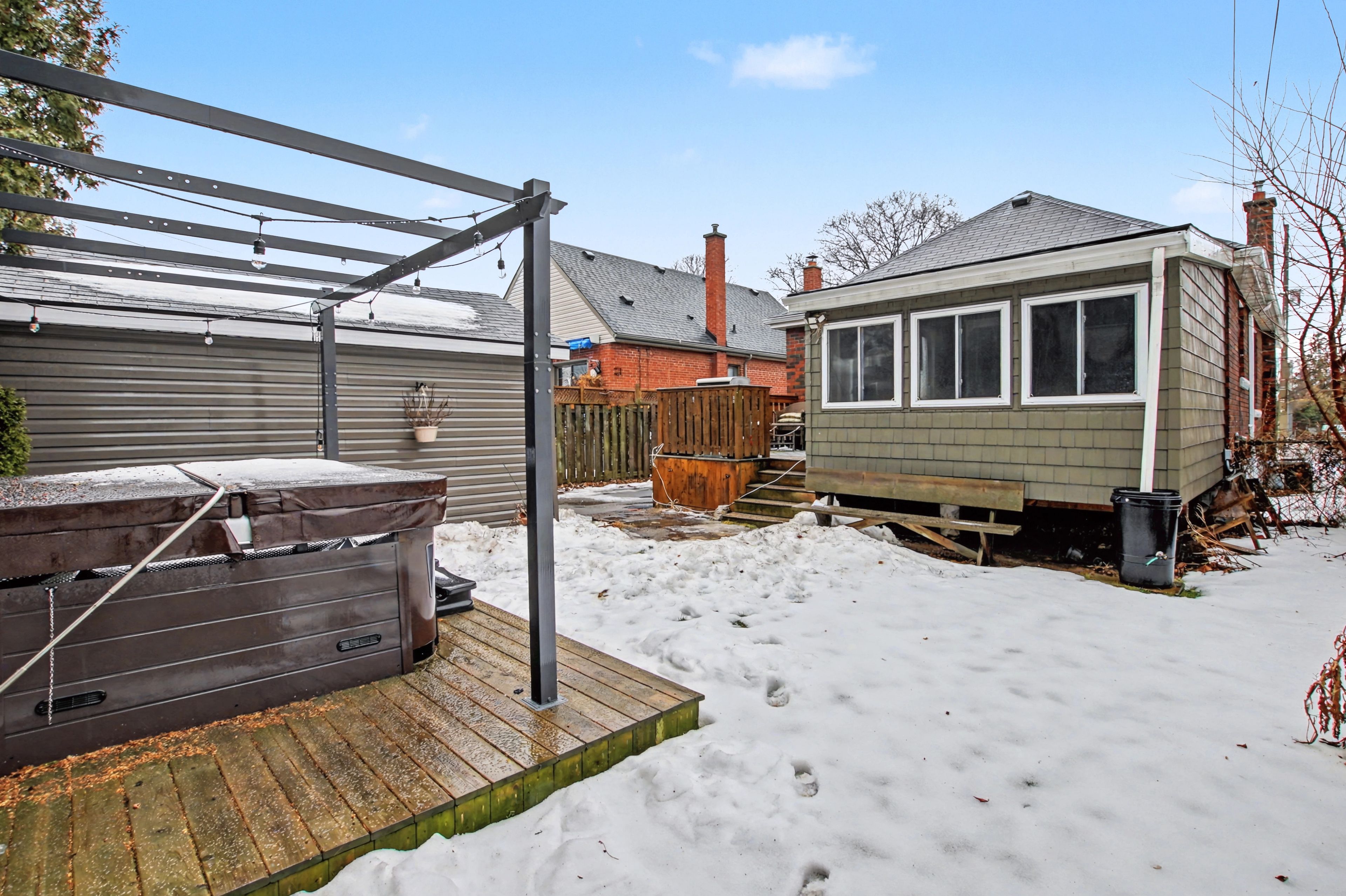 Welcome to this bright and spacious updated detached home! Updated laminate flooring throughout (no carpet)! This home offers a clean, modern aesthetic and low-maintenance living. The newly redesigned kitchen showcases contemporary finishes and thoughtful functionality. The bright, open-concept living and dining area offers generous space for everyday living. The finished lower level includes an updated recreation room with pot lights and a bathroom, ideal for additional living space, guests, or potential income opportunities. Enjoy the cozy sunroom with sliding doors leading to a spacious deck and private backyard that includes a hot tub, perfect for relaxing or entertaining! This house includes a separate garage and long private driveway that accommodates up to three vehicles. Everything owned, no rentals! Ideally located close to public transit, schools, shopping, hospital, and major highway access - perfect for commuters.