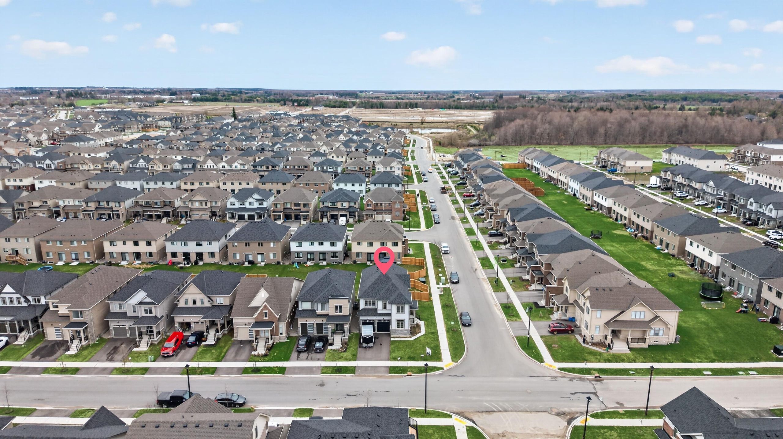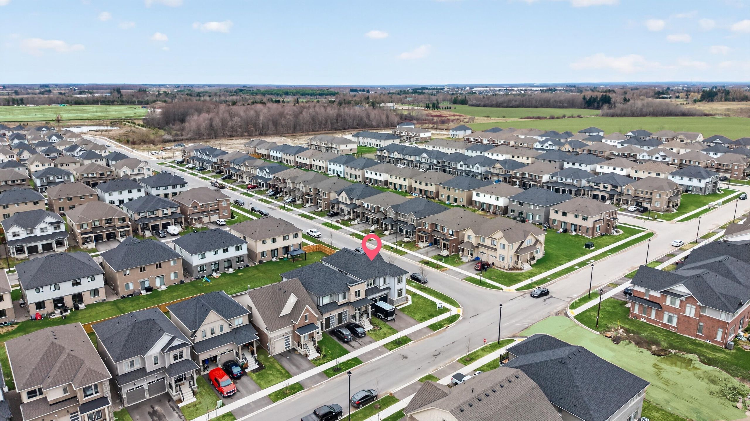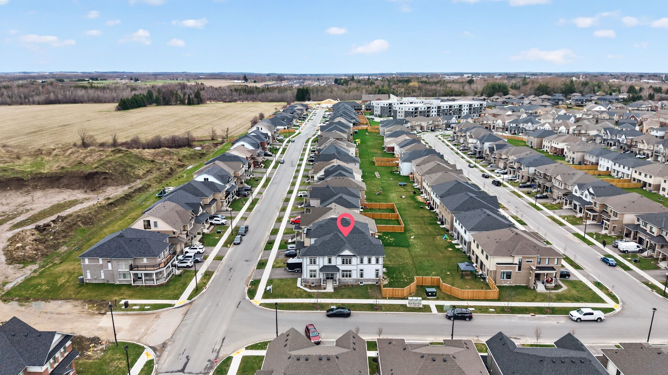 Beautiful 5-bedroom, 4-bathroom home in the heart of fergus, offering approximately 2,700 sq ft of living space on a premium corner lot. Features a double door entry leading to a bright foyer and main floor den/office. Functional layout with formal dining room, spacious great room, and modern kitchen designed for seamless living and entertaining. Second floor includes 5 generously sized bedrooms and 3 full bathrooms. Primary bedroom features a walk-in closet with double racks and a 5-piece ensuite with double sinks, glass shower, and separate soaker tub. One bedroom includes a private ensuite, while others share a jack & jill bathroom. Unfinished basement with builder-provided separate side entrance offers excellent potential for future development or in-law suite. Located across from a future park, providing added privacy and long-term value. Ideal for families seeking space and functionality.