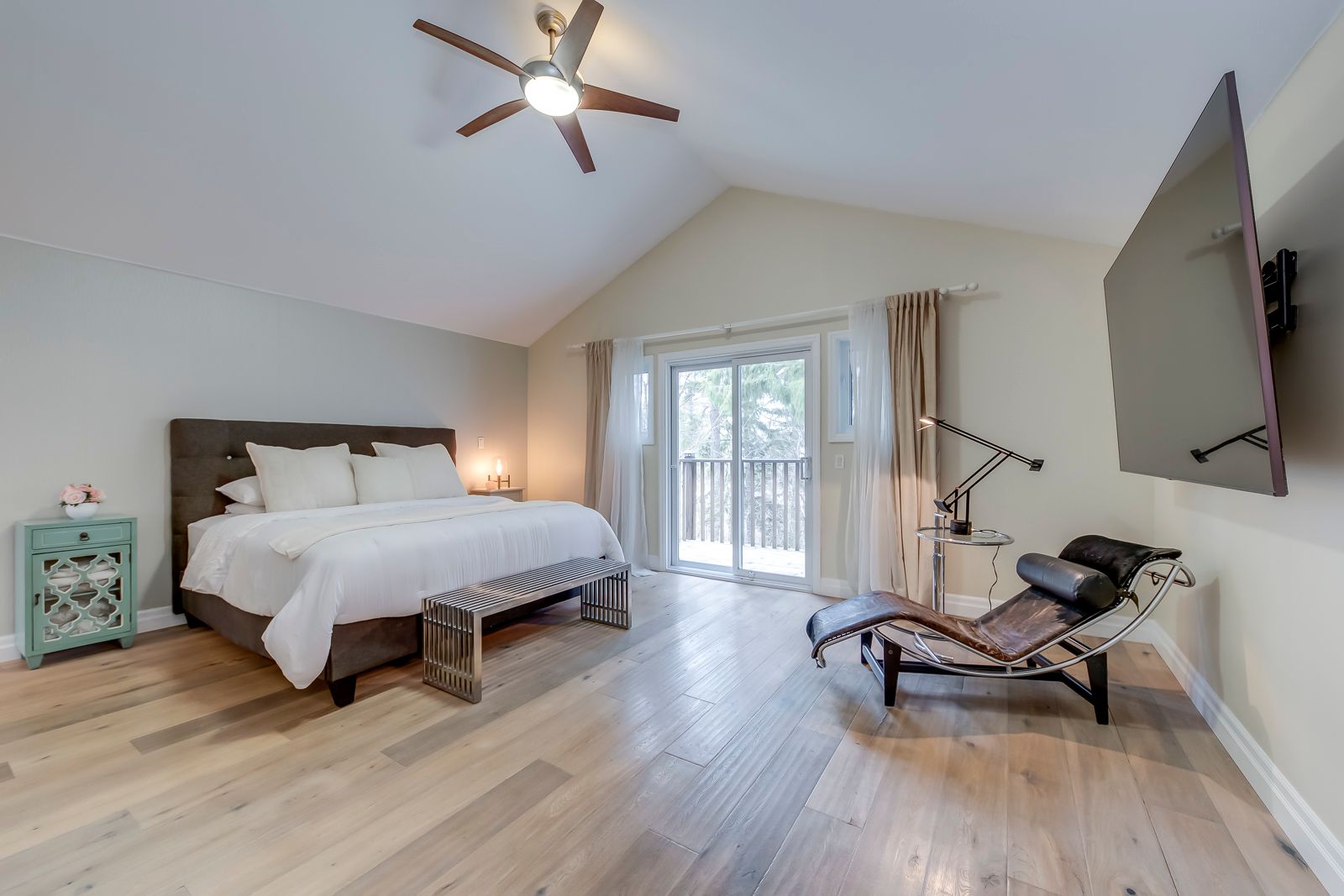 • Finished basement with rec room, wet bar, and guest bedroom.