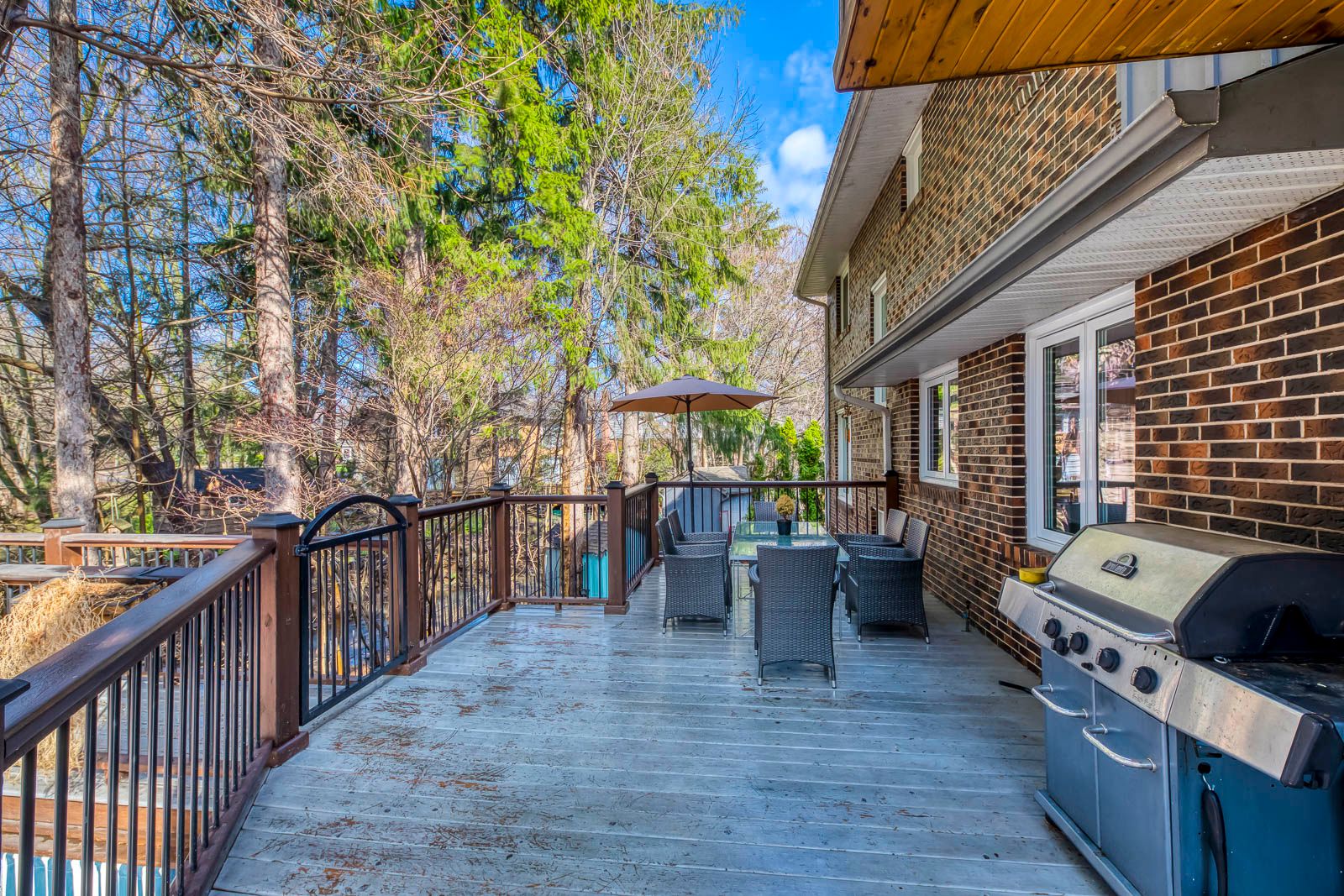 5 elite picks! Here are 5 reasons to make this home your own: 1. Simply breathtaking private & tranquil backyard/pool oasis backing onto forested ravine/stream/westgate park - an entertainer's delight with expansive upper & lower decking, salt water pool & beautifully landscaped gardens!! 2. Gourmet kitchen boasting large centre island, quartz countertops, modern tile backsplash & stainless steel appliances, open to breakfast area with additional cabinetry & large window overlooking the gorgeous front gardens! 3. Impressive family room with modern f/p wall with open display shelves & extra wide patio door w/o to upper deck overlooking the ravine... Plus french door entry to spacious formal dining/living room with gas f/p, elegant wainscotting & large windows! 4. Expansive 2nd level with 4 generous bedrooms, 3 full baths & laundry room, with spectacular pbr suite boasting vaulted ceiling, private office/studio (or nursery), huge w/i closet & 5pc ensuite with double vanity, soaker/jet tub & separate shower... Plus patio door w/o to private balcony overlooking the backyard & ravine! 5. Fantastic additional living space in the finished w/o bsmt featuring spacious rec room with gas f/p, wet bar, large windows & w/o to lower deck, plus 5th/guest bedroom with w/o to patio, luxurious 5pc bath (with heated floors) & ample storage. All this & more! Stunning curb appeal with beautiful front gardens & large covered porch. Wide plank eng. White oak hdwd floors thru all 3 levels. 2nd bedroom boasts private 3pc ensuite. Fabulous location at the end of quiet cul de sac just minutes from the lake, parks & trails, top-ranked schools, shopping & amenities! New front door '22, tankless wh '20, pool heater '20, salt cell '18, furnace '18, garage door '18.