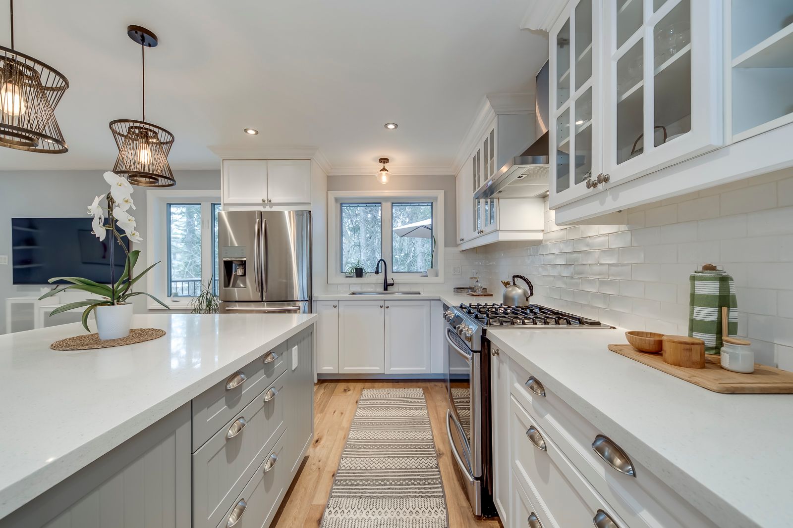 • Gourmet kitchen featuring quartz countertops and a large center island.