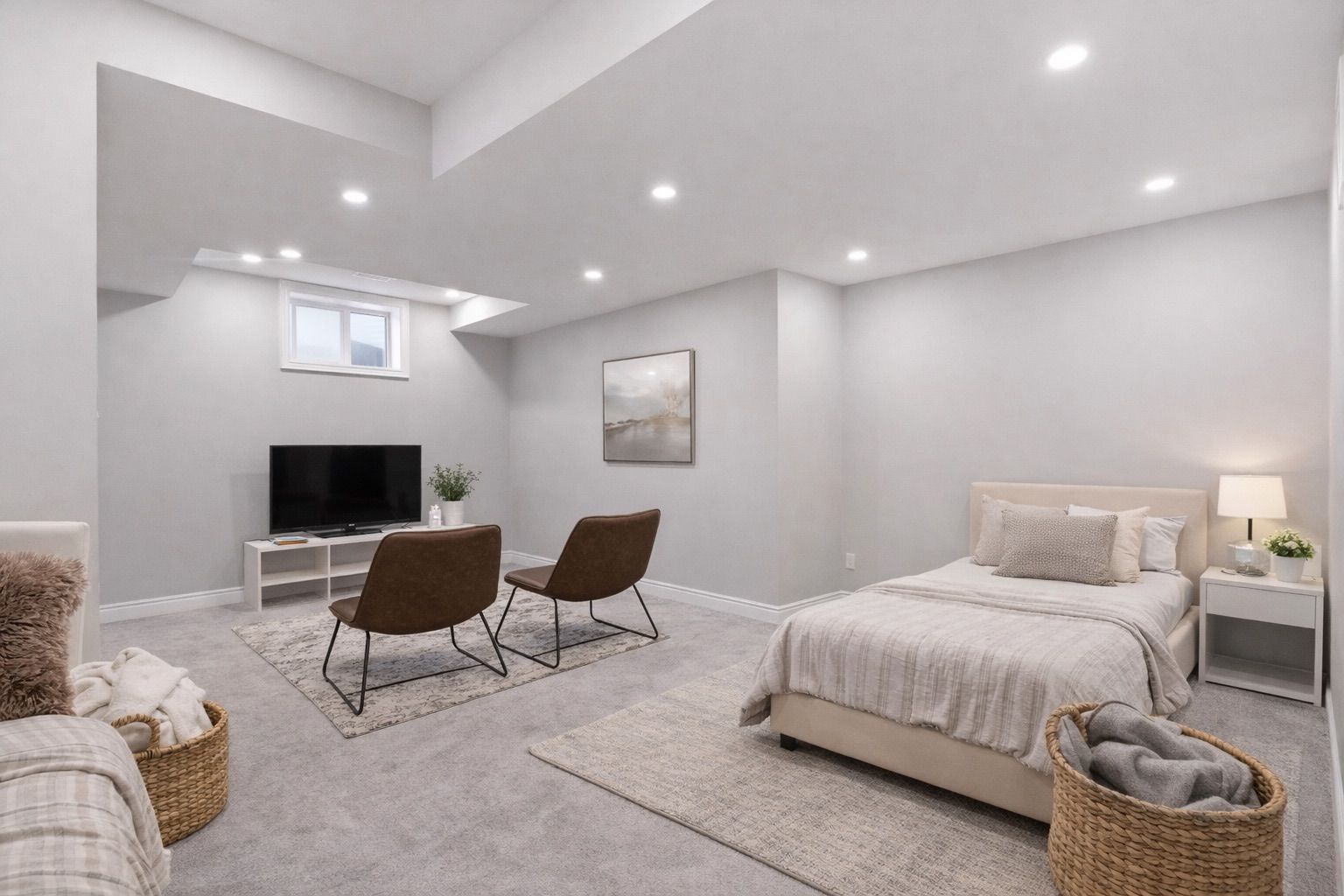 • Three bedrooms and four washrooms provide ample space for everyone.