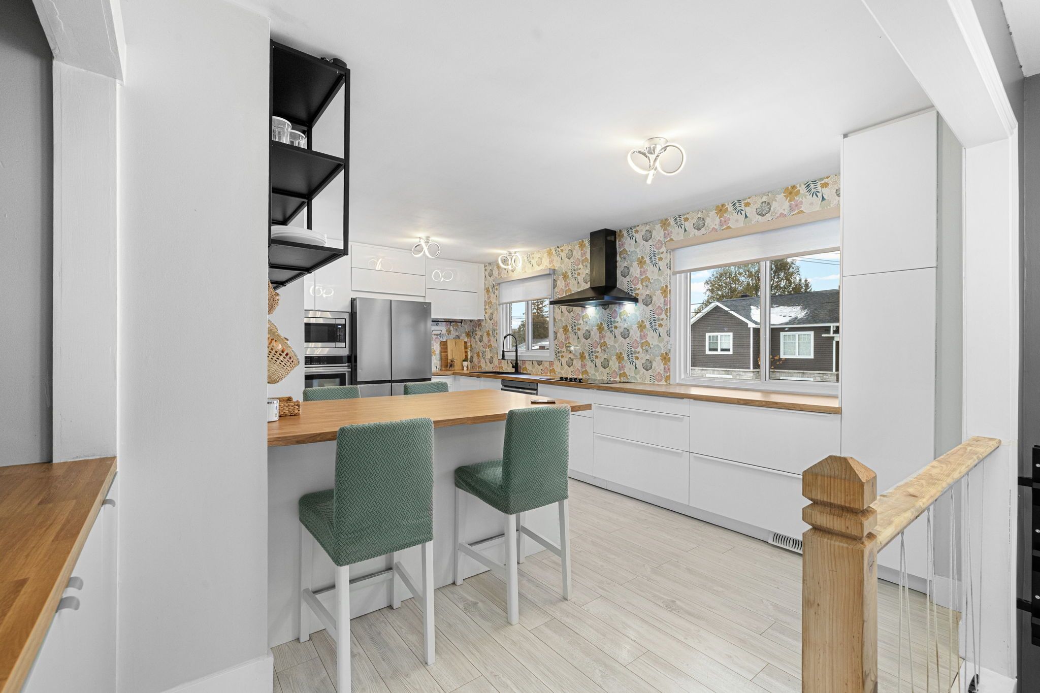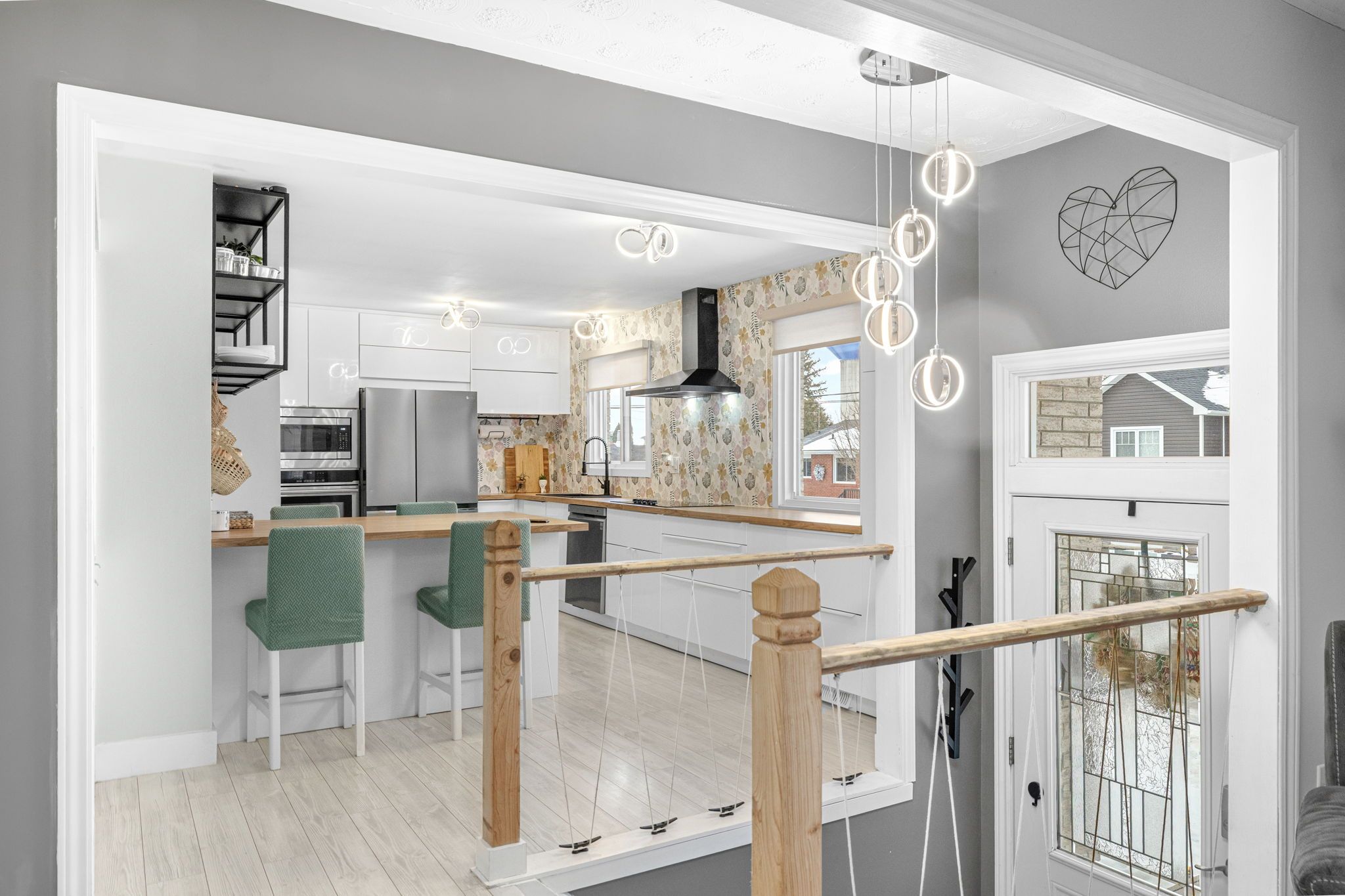 • Open-concept living space with a fully renovated kitchen and new appliances.
