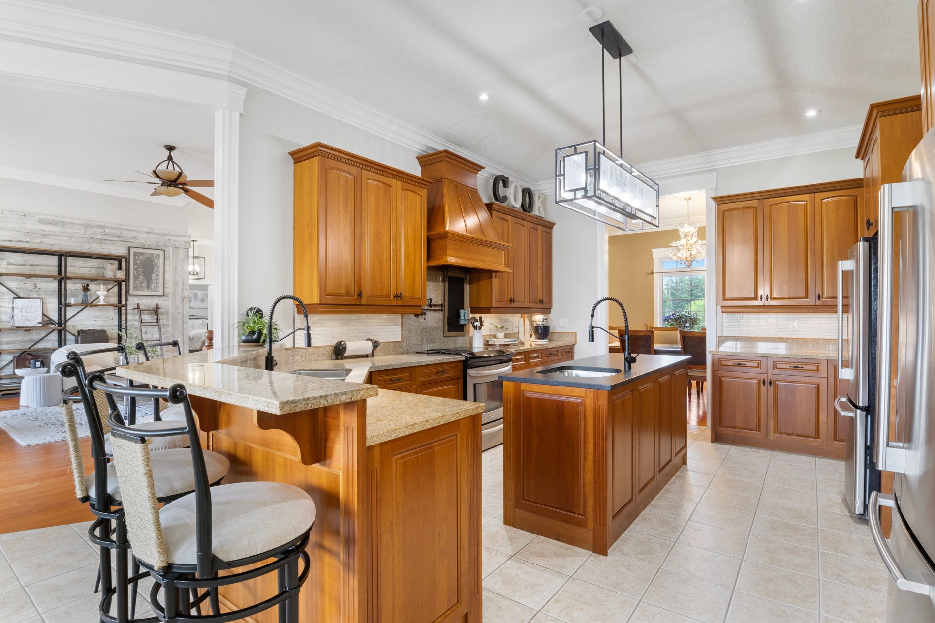 Offering nearly 7,000 sq. Ft. Of finished living space - 3,974 sq. Ft. Above grade and 2,938 sq. Ft. Below, this custom-built, solid brick bungalow loft combines modern sophistication with country elegance. Perfectly set on a serene 1. 52-acre estate in cambridge's prestigious north dumfries township, it's designed for both grand entertaining and private, everyday living. A rare floor plan for a bungalow, it features oversized rooms, a thoughtful layout, and two distinct wings. The main level showcases a chef's kitchen with an oversized island, generous dining area, walk-in pantry, and a formal dining room ideal for gatherings. A separate library or office with coffered ceilings adds charm and flexibility, while the secluded primary suite boasts a double-sided gas fireplace shared with its spa-like ensuite. Additional bedrooms are tucked into their own wing for maximum privacy. The fully finished lower level expands your living space with two bedroom suites, a vast entertainment zone, a glass enclosed home gym, and abundant storage. A finished loft with balcony accessible via interior stairs and an exterior walk-up adds even more versatility. Nearly 1,000 sq. Ft. Of covered front and rear porches connect you seamlessly to the outdoors. The extra-deep attached garage accommodates up to five vehicles and includes a fourth rear garage door to the backyard. A 30 x 52 shop offers exceptional space for hobbies, projects, or additional storage. Built with premium materials and exceptional craftsmanship, this residence offers unmatched comfort, privacy, and enduring quality - an ideal blend of rural tranquility and proximity to city conveniences.
