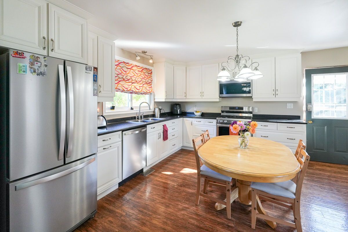 • Bright eat-in kitchen connects to a large raised deck with scenic views.