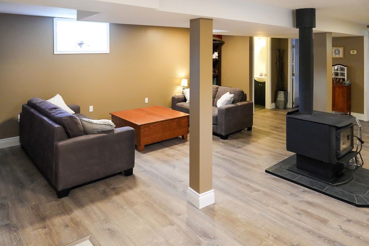 • Finished basement offers extra space with family room and roughed-in bedroom.