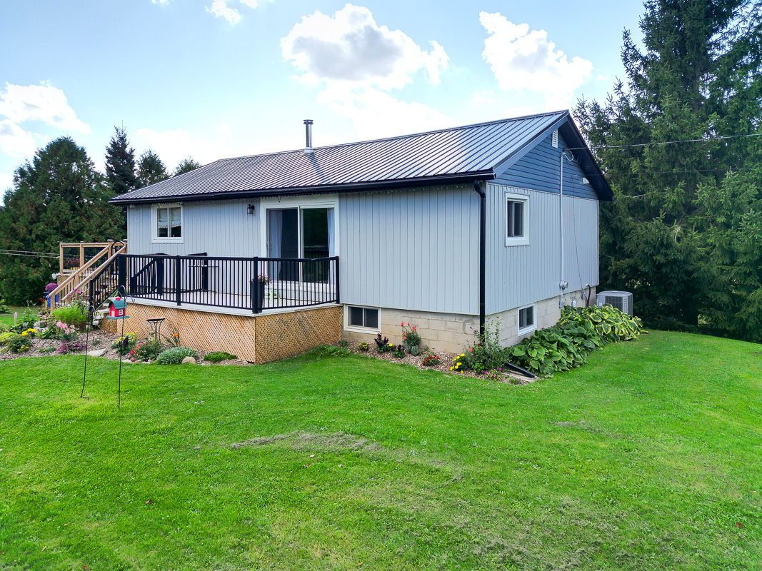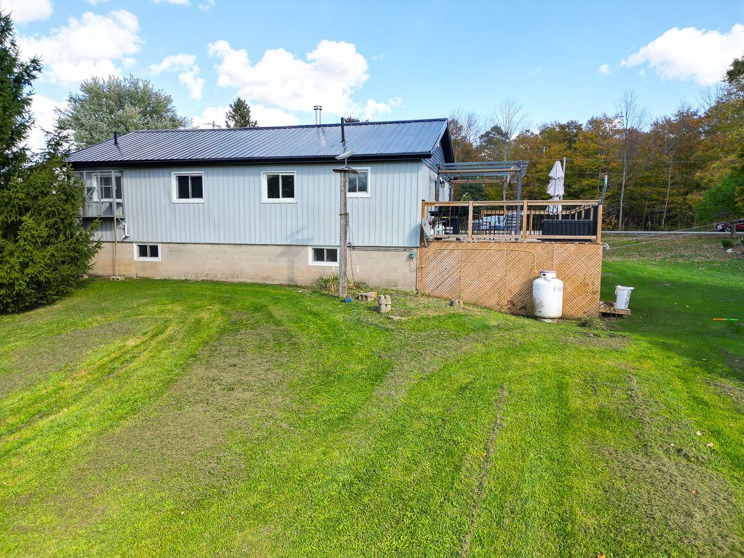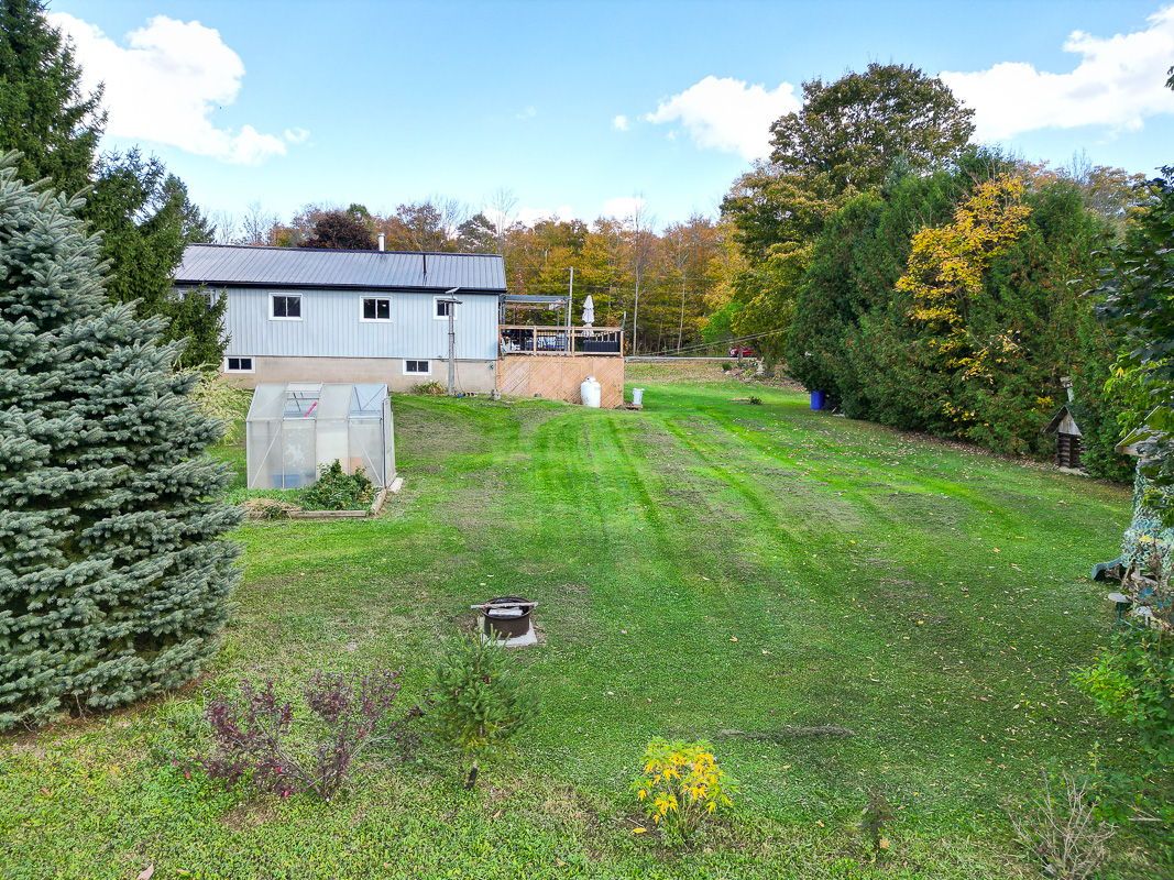 Set on 65 acres, this property delivers space, privacy, and variety, with approximately 20 acres of workable land and established trails winding through maple, birch, cedar, and elm forest. The well-maintained 3-bedroom, 2-bath bungalow offers a comfortable, functional layout with room to live and grow. The living room opens through patio doors to a front porch that looks out over the sweeping lawn, while the bright eat-in kitchen connects directly to a large raised deck with long views across open fields and surrounding woods - ideal for outdoor meals, quiet mornings, or evening downtime. The finished basement expands the living space with a generous family room warmed by a wood stove, along with a two-piece bath, laundry area, and a roughed-in fourth bedroom that will be completed prior to close. Propane costs include fuel and tank rental: $884. 34 for 2024 and $951. 70 to october 8, 2025. With plenty of room to explore, play, or expand your vision, this property offers a rare blend of usable land and natural setting. Located just 15 minutes from owen sound or wiarton and close to francis and bass lakes, it's a solid option for anyone looking for space, fresh air, and long-term potential.