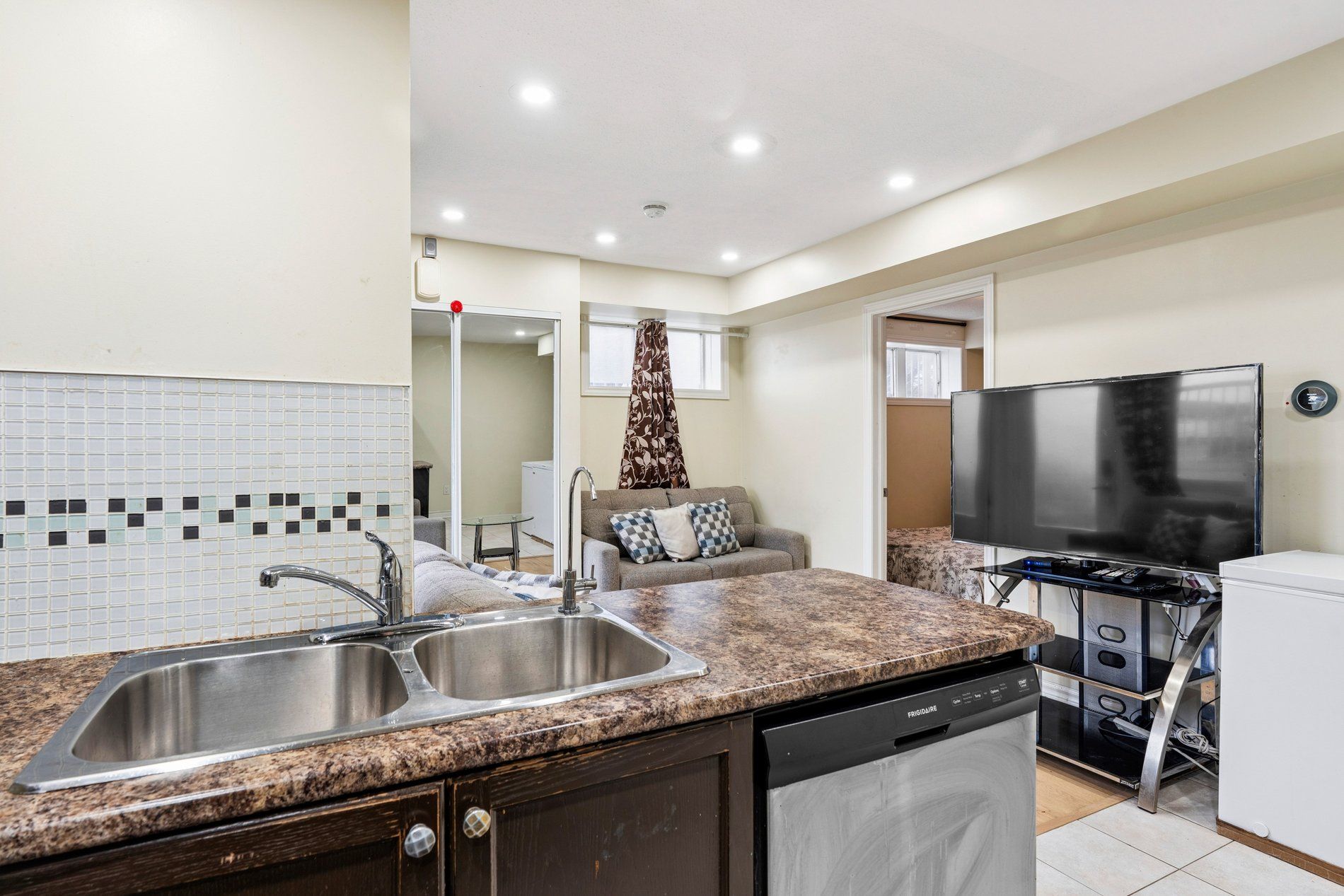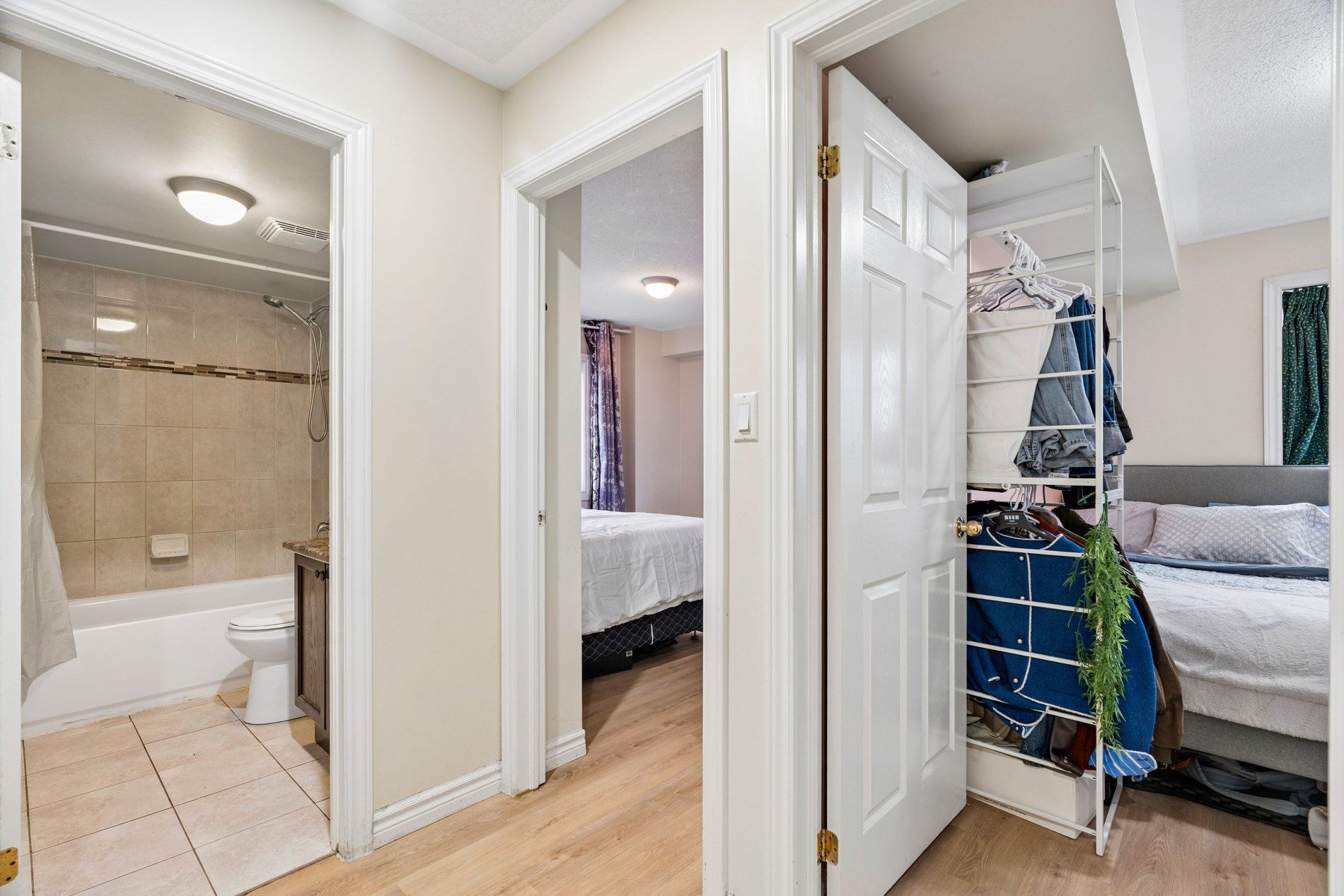 • Corner townhouse with three bedrooms and two full bathrooms.