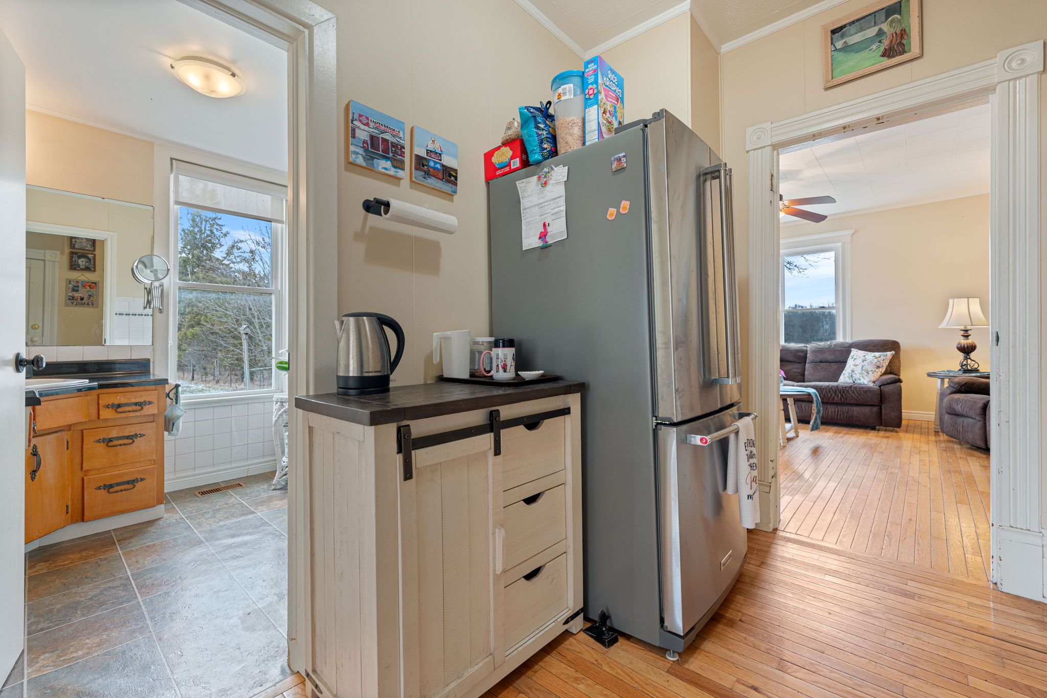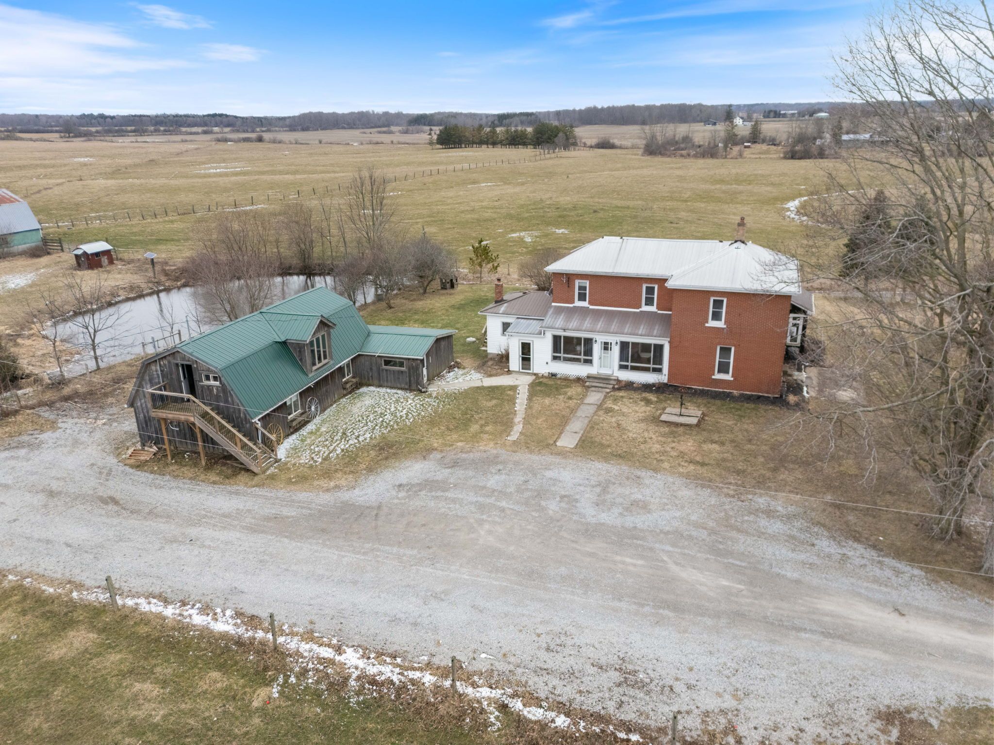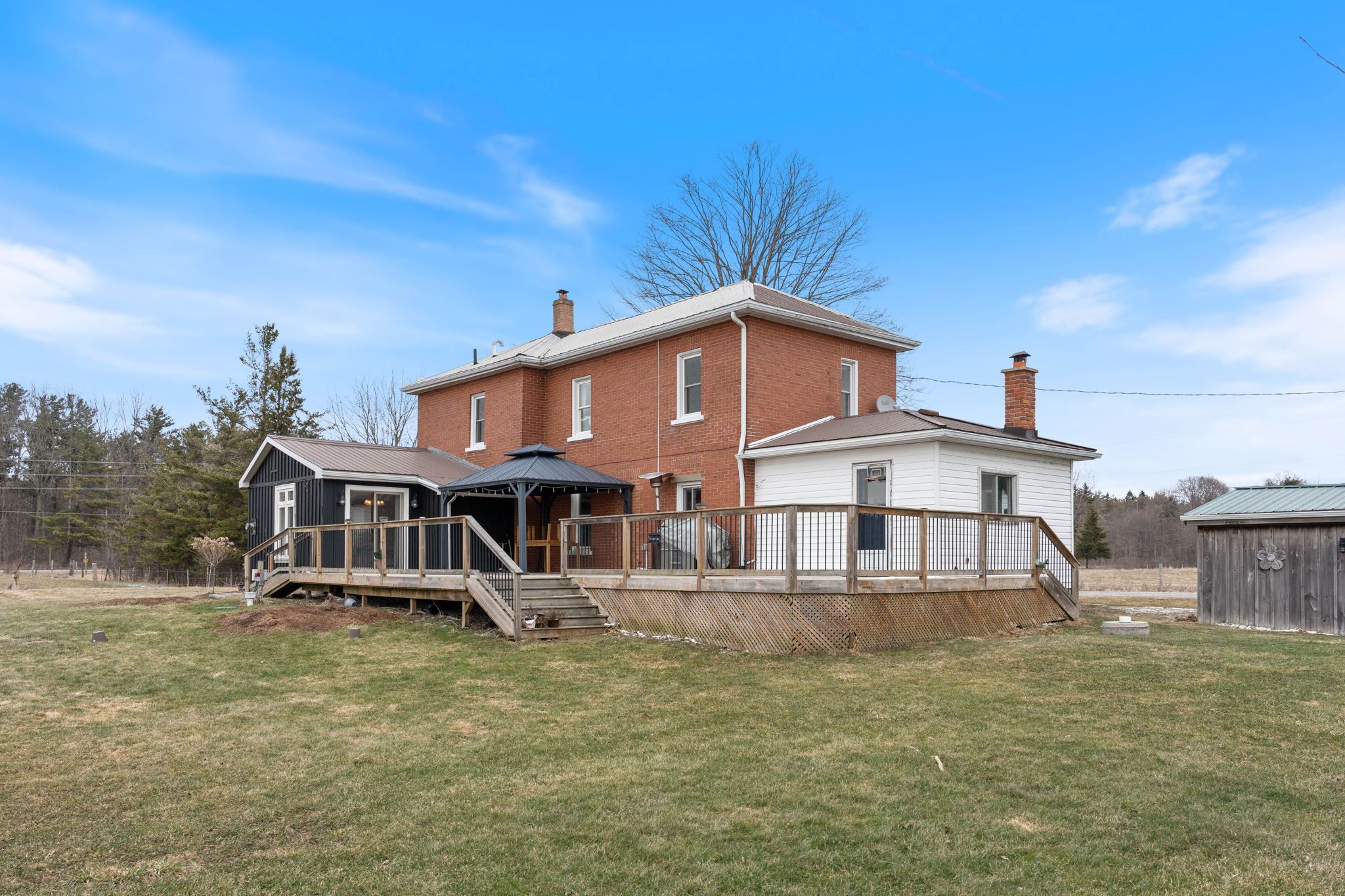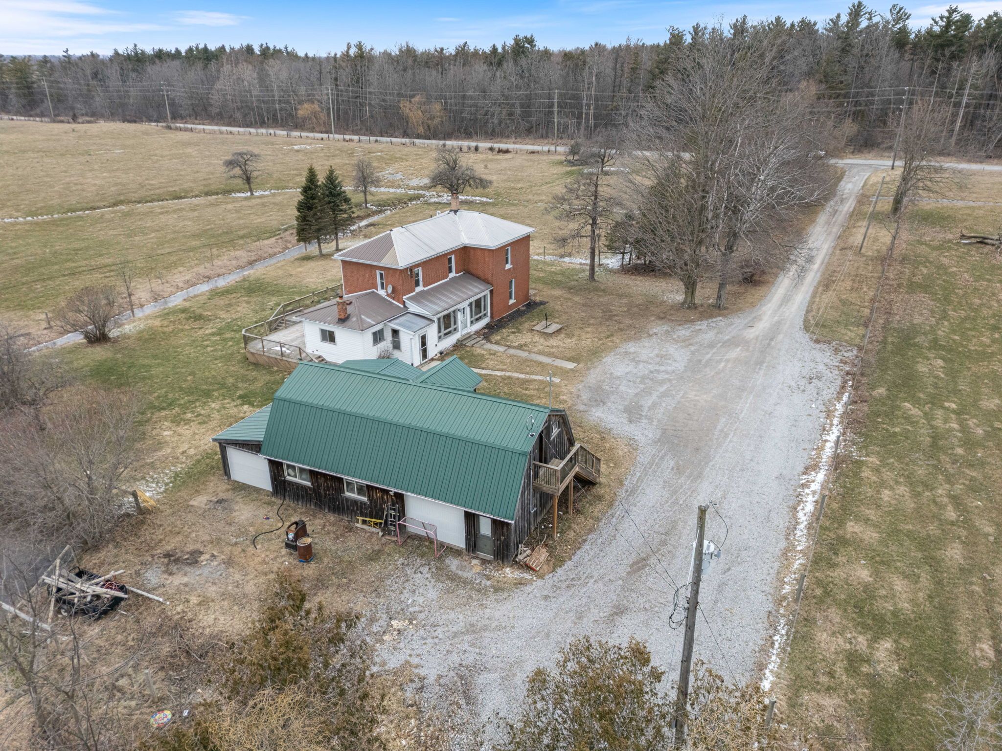 Lovingly maintained circa 1907, this charming 3-bedroom, 2-bathroom home is perfectly nestled among towering trees and set well back from the road on a picturesque 1. 1-acre lot, offering exceptional privacy and timeless appeal. The property showcases impressive curb appeal with a brick and complementary siding exterior, tasteful landscaping, and a custom deck overlooking tranquil country views. A heated detached garage, currently used as a workshop, features a versatile upper loft space with endless potential. Inside, the beautifully updated layout begins with a welcoming foyer and flows into a warm, inviting kitchen with pine cabinetry, a spacious living room highlighted by hardwood floors, and a separate dining area ideal for entertaining. The refreshed main bathroom and sought-after main floor bedroom with a cozy gas fireplace offer flexibility, including potential for an in-law suite. Upstairs, you'll find two generously sized bedrooms, including a primary retreat with walk-in closet and dressing area, a4-piece bathroom, and the convenience of bedroom-level laundry. The utility-style basement provides ample storage and houses the home's mechanicals. Notable updates include a steel roof on both the home and garage, septic (2012), cistern (2013), foundation wrap (2013), and spray foam insulation in the basement (2013), along with modern décor, fixtures, and lighting throughout. Ideally located just minutes to amenities in port dover, jarvis, and simcoe, with easy access to highway 403, this property is perfect for a variety of lifestyles-offering the peace, privacy, and beauty of country living without sacrificing convenience.