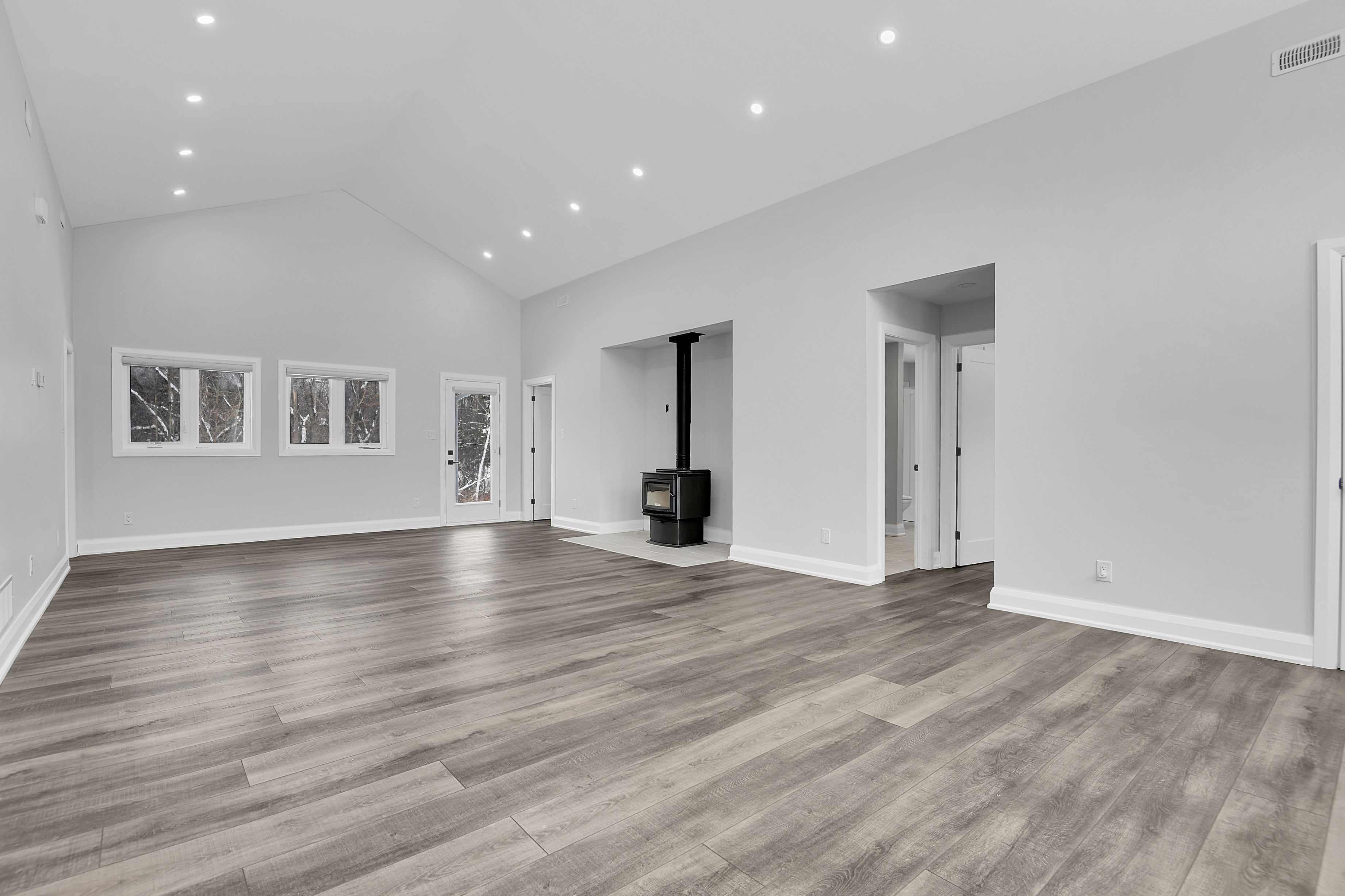 Bright, custom-built bungalow in a peaceful country setting. Enjoy the best of country living just minutes from all the amenities of kanata and carp village. This beautifully crafted, one-level bungalow is filled with natural light and surrounded by nature offering both privacy and convenience. Step into a spacious great room with hardwood flooring, radiant heat, a cozy wood stove, and walk-out access to a large west-facing deck perfect for relaxing and enjoying spectacular sunsets. The kitchen features granite countertops, included ss appliances with conveniently located laundry. Inside access to oversized double garage makes unloading groceries effortless. The thoughtful layout includes a private primary bedroom with a 3-piece ensuite, while two additional bedrooms share a full 4-piece bath (double sinks) ideal for family or guests. A large utility room, off the garage, offers easy access to mechanical systems and extra storage for your outdoor gear.