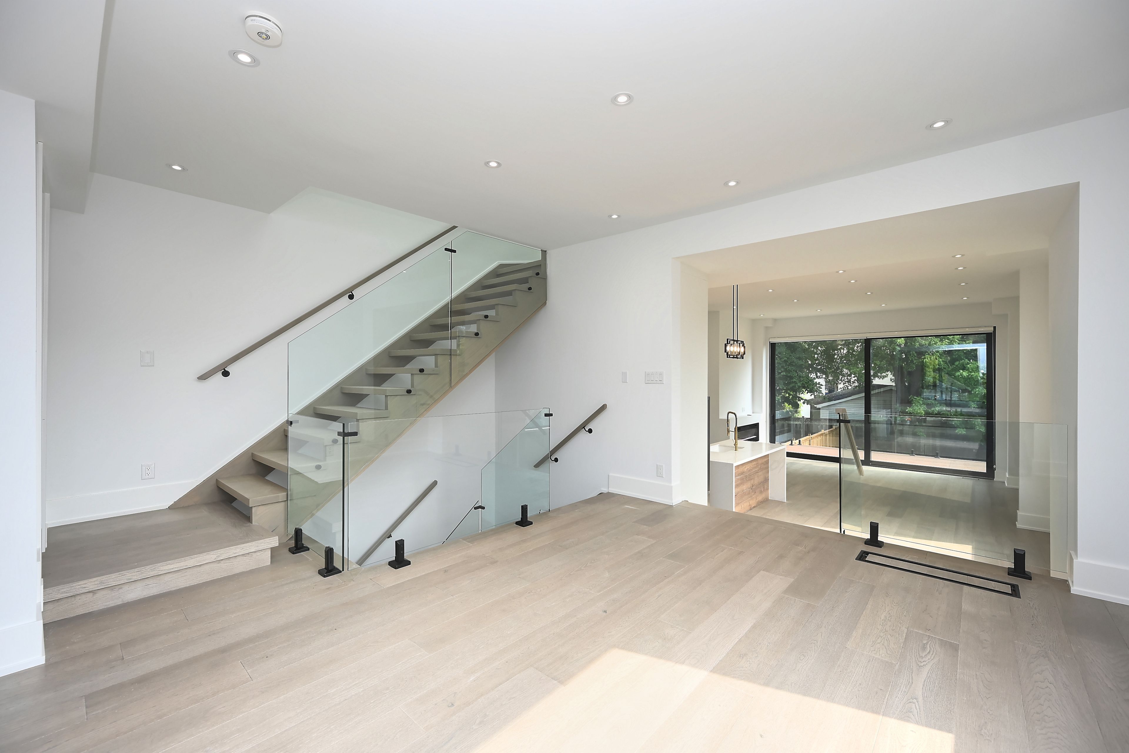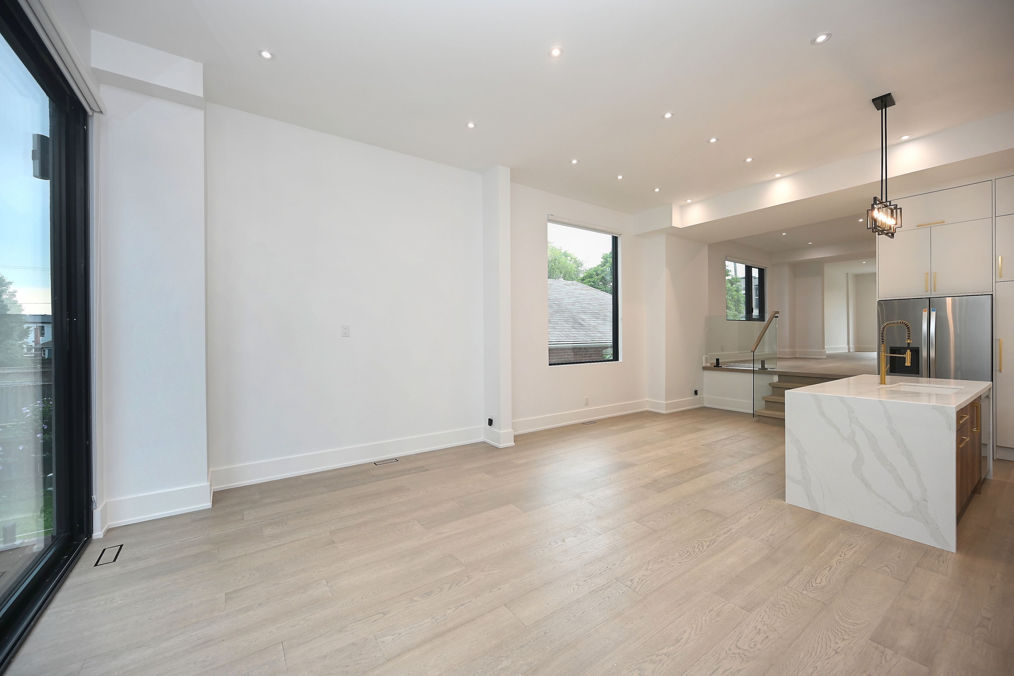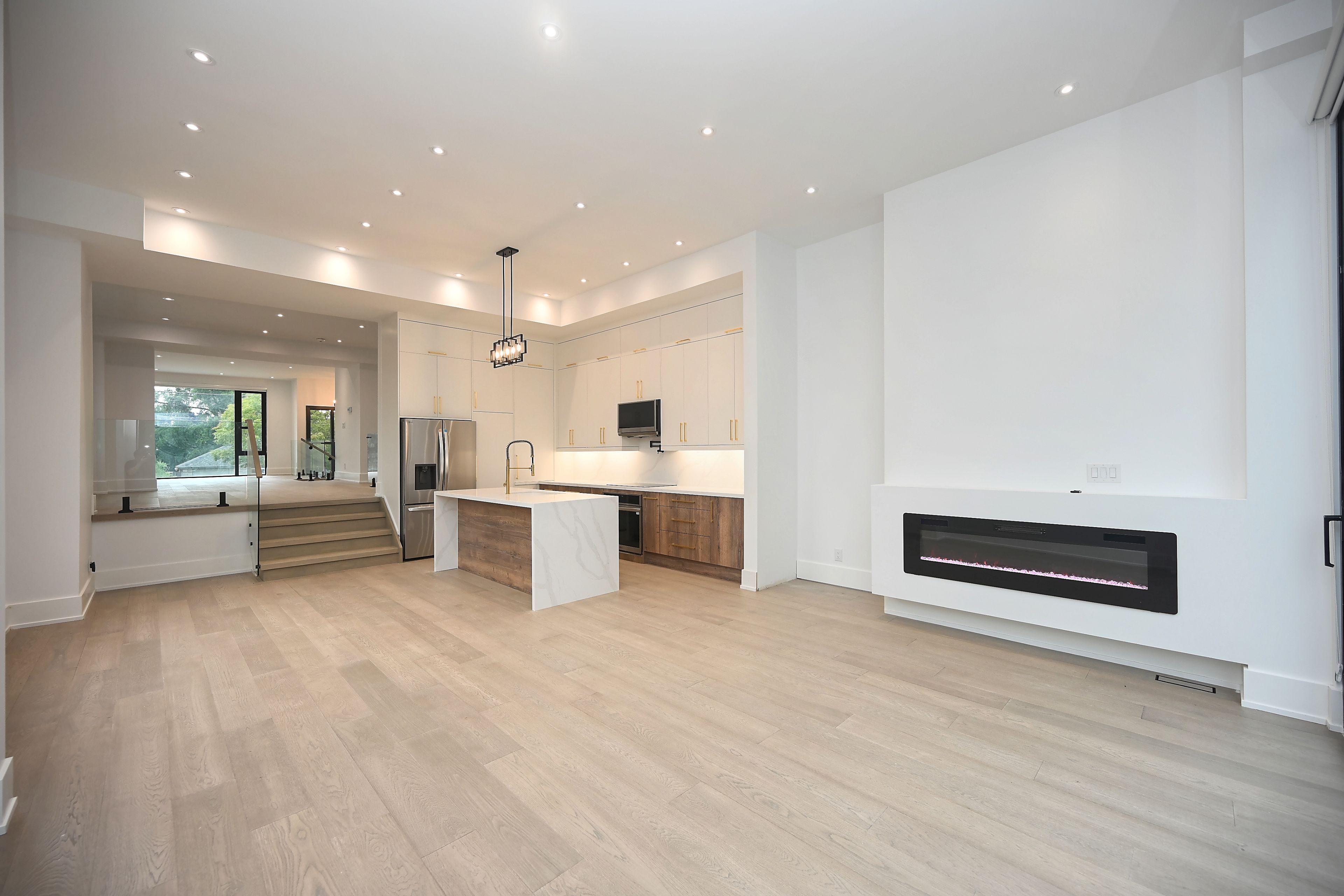 • Luxury finishes throughout including hardwood floors and glass railings.