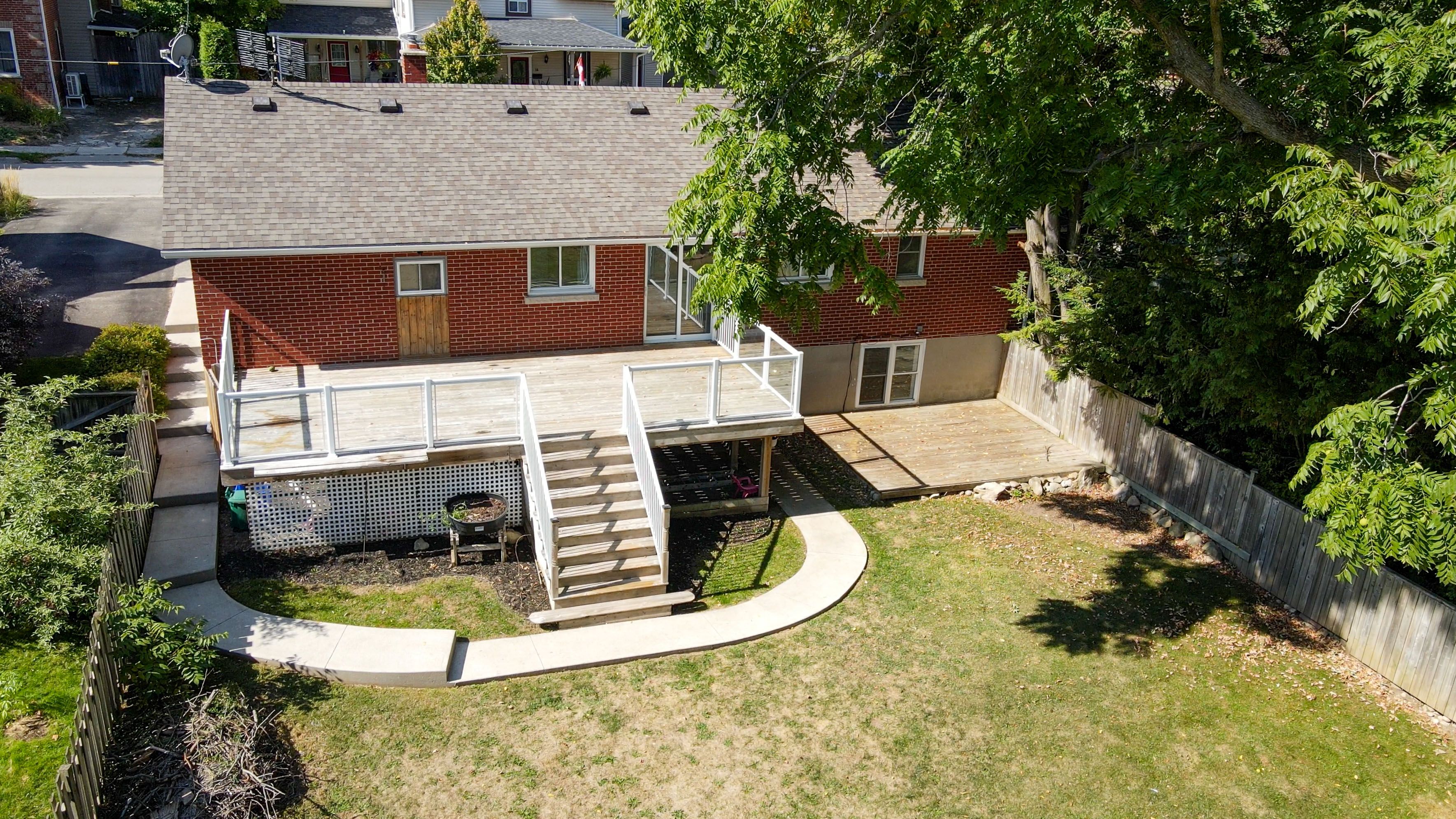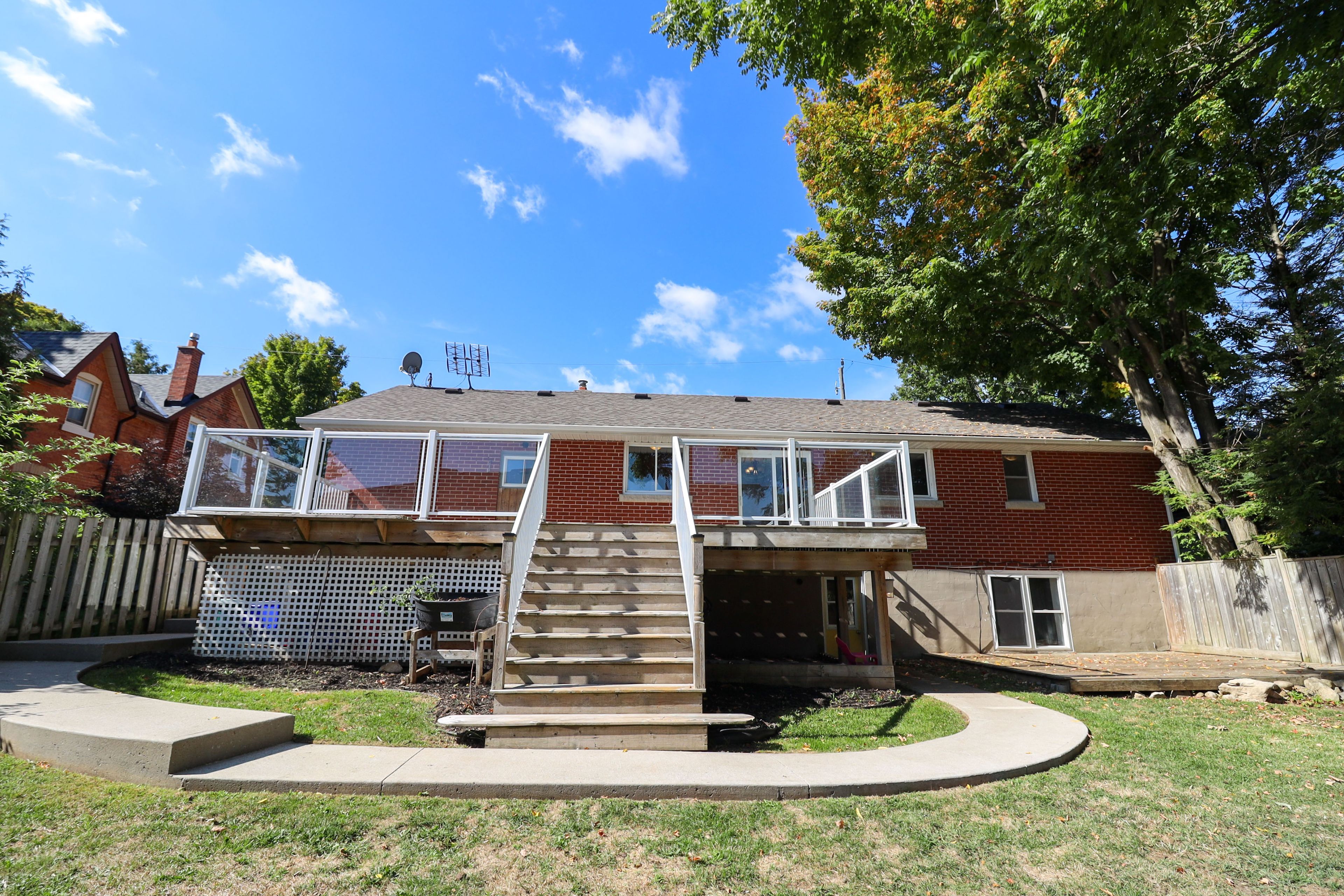 A light-filled in-law suite w a separate walk-up entrance & above grade windows overlooks it's own deck & large fenced backyard. There's a cement walk-way leading from the lower level to the driveway. It's a short walk to downtown shops, restaurants & theatre adding to the convenience & appeal of this lovely 3 + 1 all brick bungalow. Entertaining is a breeze w a generous size glass paneled deck w access from main floor breakfast area offering a peaceful morning coffee or a relaxing glass of wine at day's end. It's freshly painted with a tasteful, newly renovated main floor 4pc bath. There's engineered hardwood & tile flooring on the main level. Open concept w visuals of breakfast area, updated kitchen & dining room. Beautiful large picture window compliments the living room offering an abundance of natural light. There's a spacious primary bedroom w double closet & the garage was converted to provide another bedroom, home office or music room. The shared laundry's downstairs. "home sweet home!"