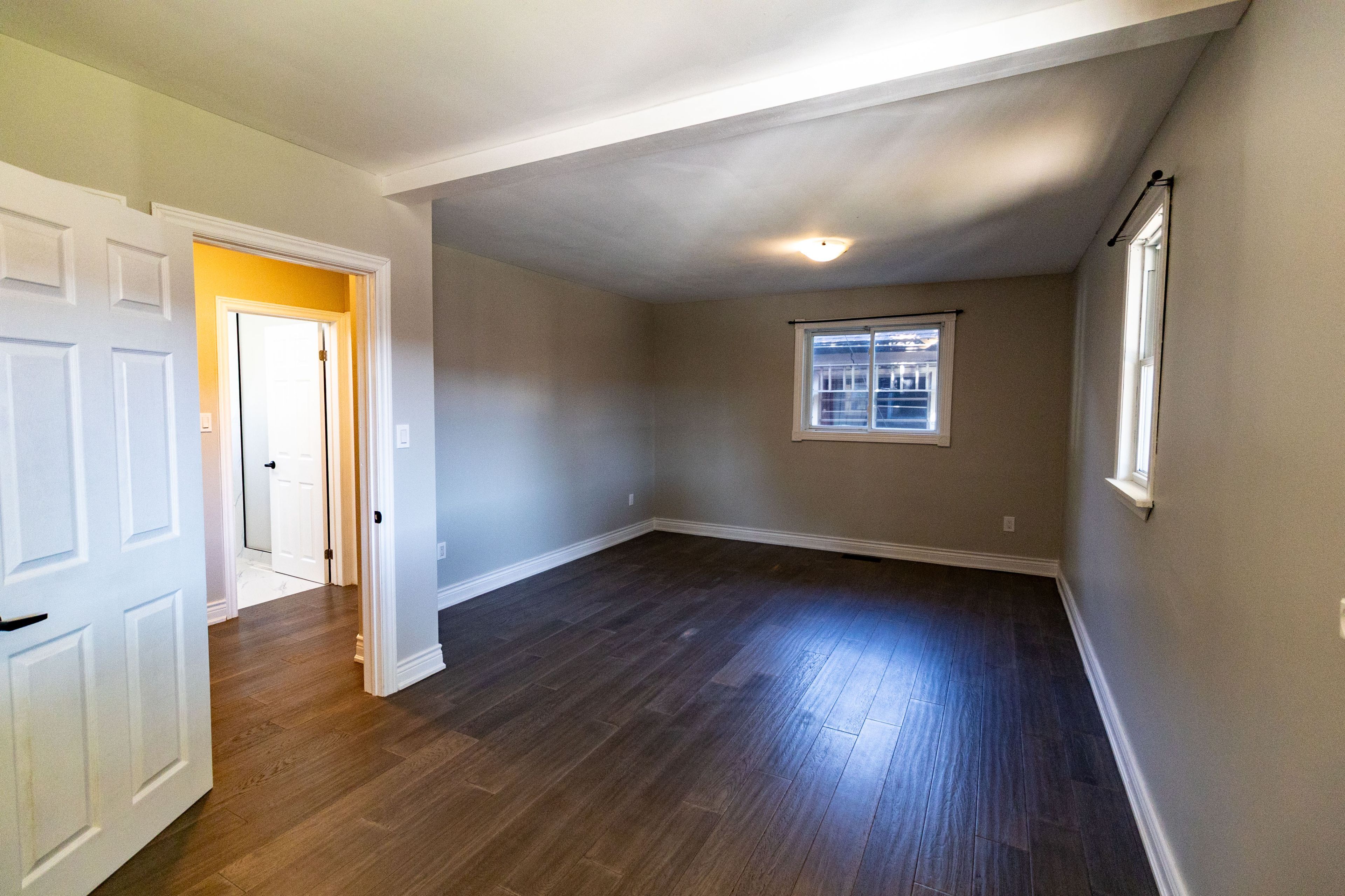 • Spacious primary bedroom with double closet and versatile garage conversion.