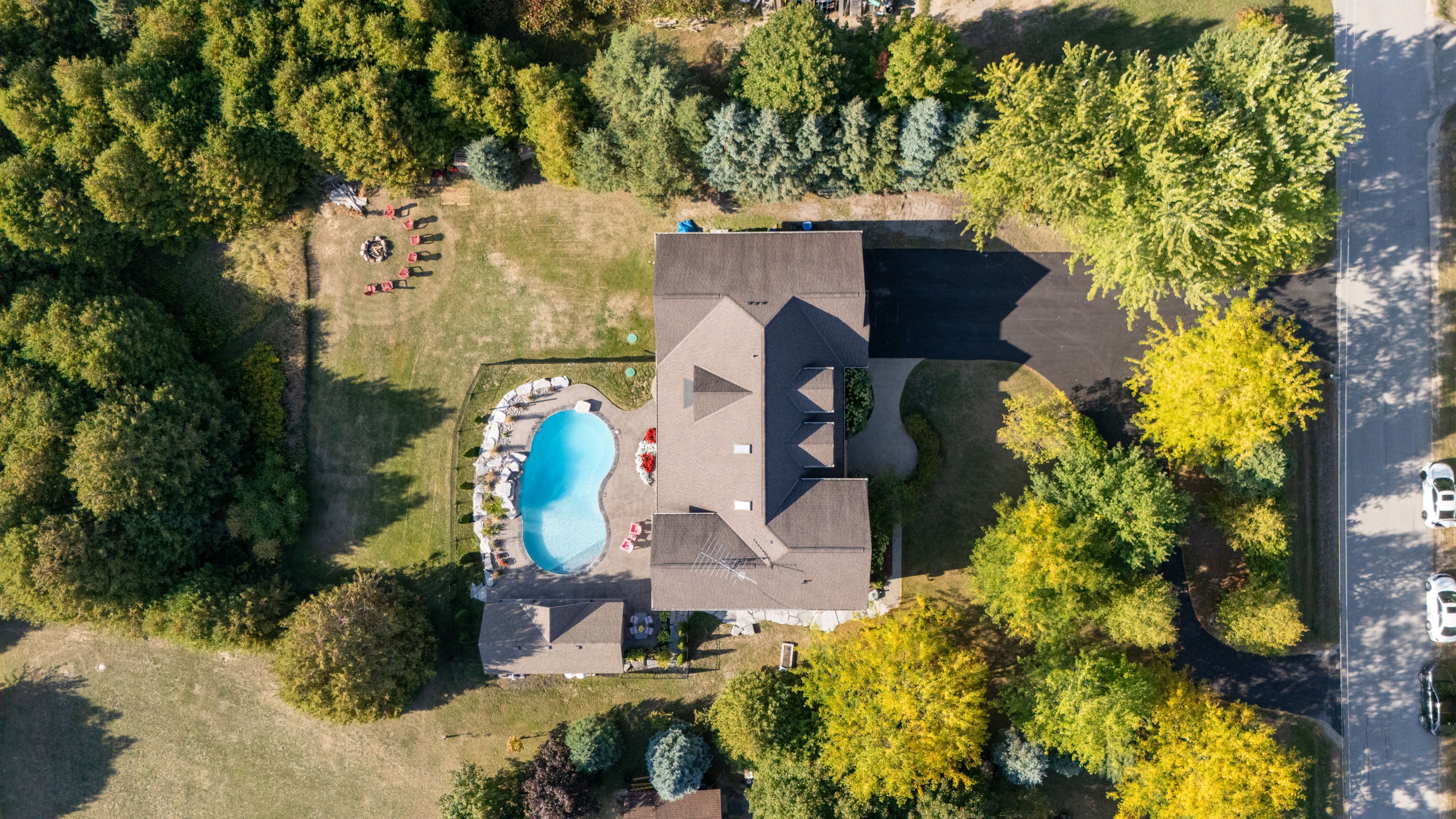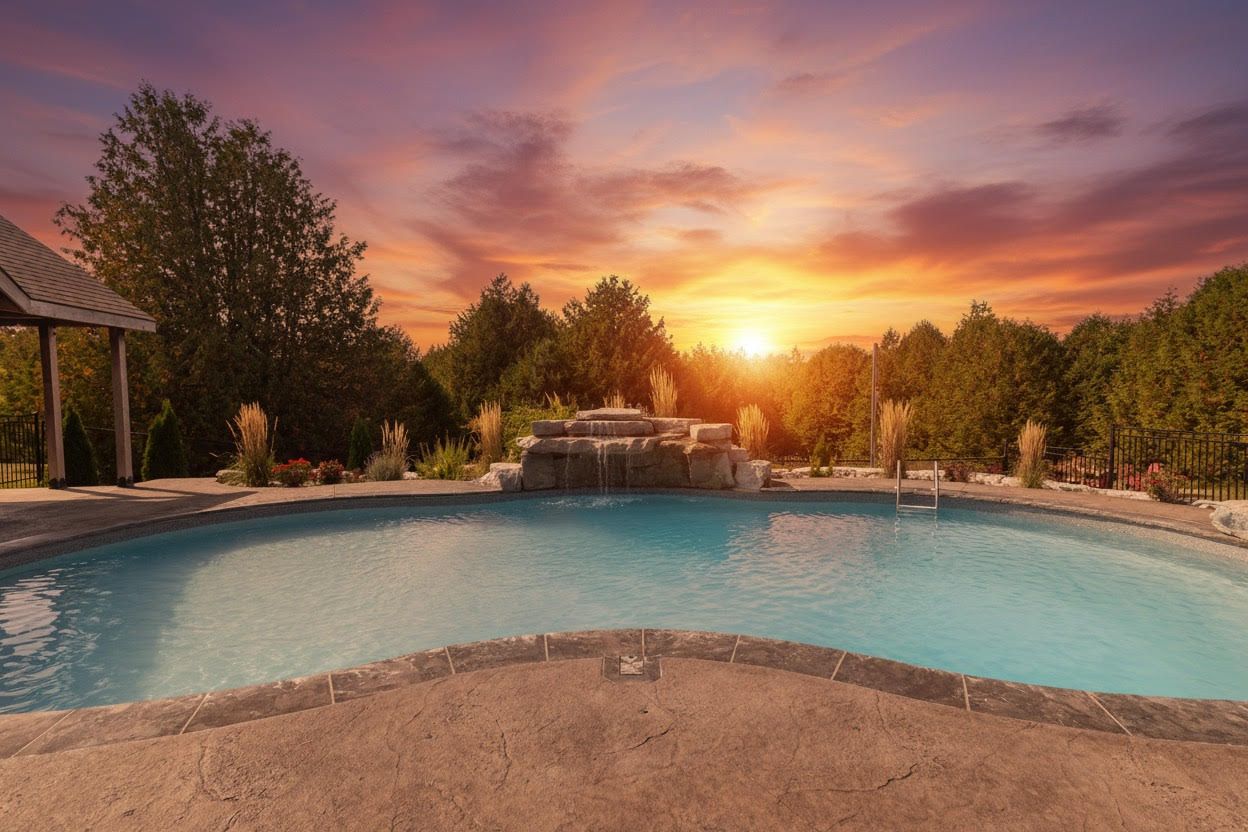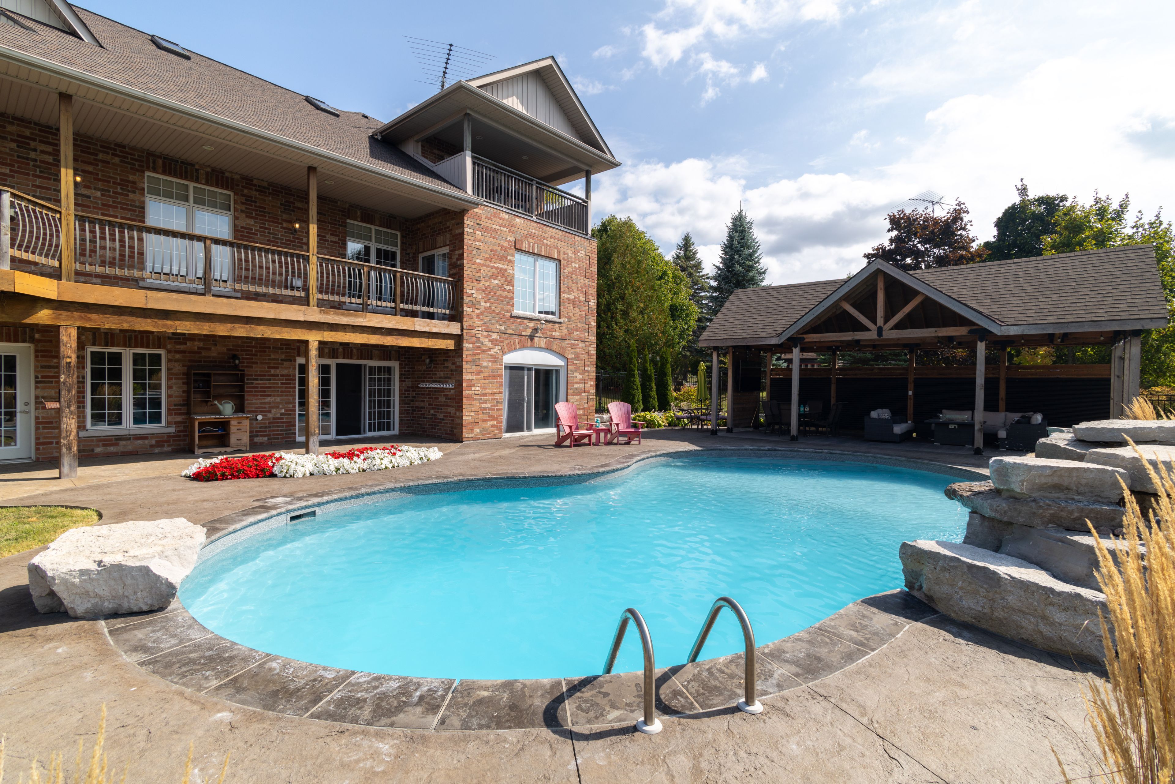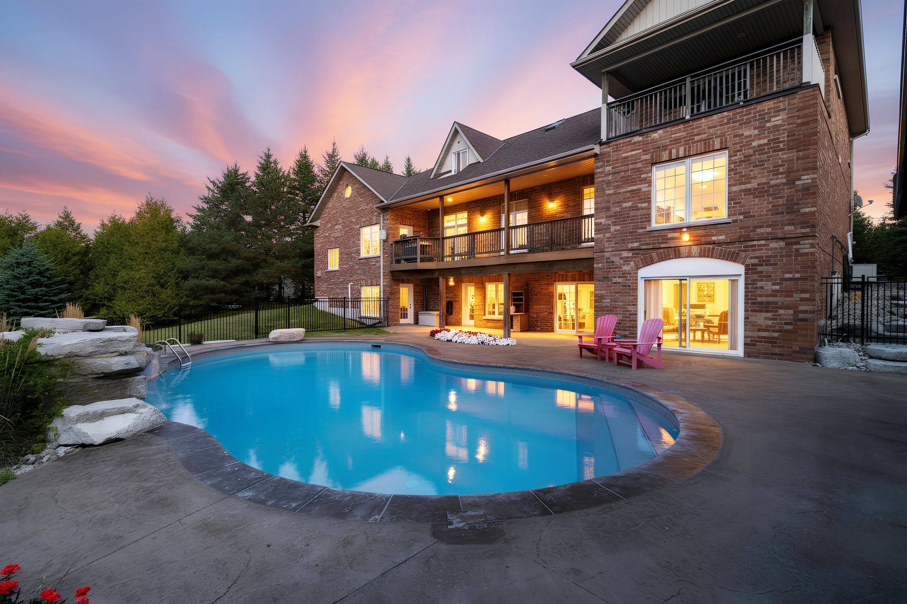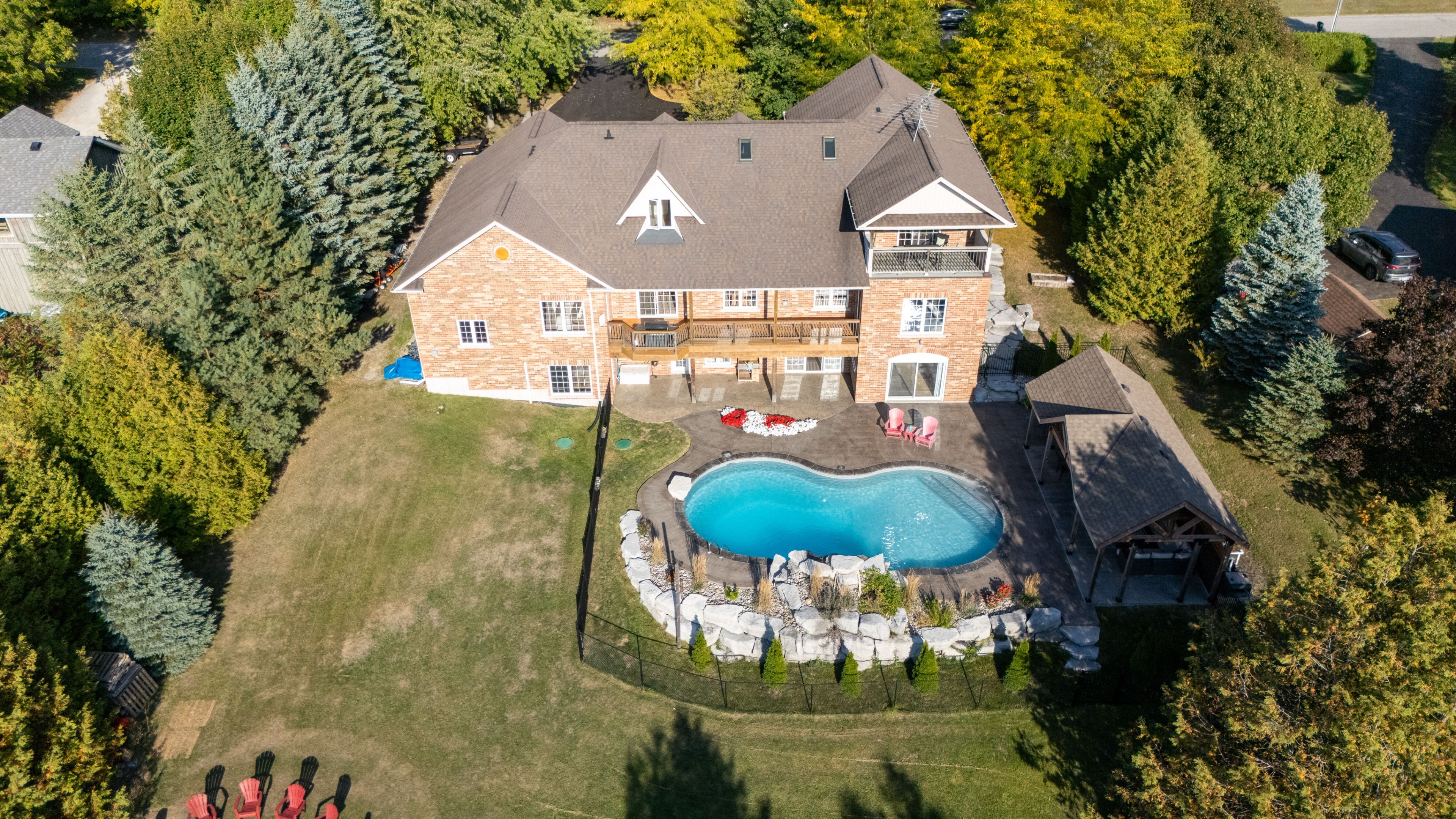 Sunset skies. Saltwater pool. Over 3 acres of privacy just minutes from uxbridge. This exceptional home offers nearly 5,000 sq. Ft. Of finished living space. The main floor showcases a beautifully renovated kitchen with a 9-ft centre island, quartz countertops, stainless steel appliances, custom backsplash, under-mount lighting, and hickory hardwood floors that continue through the dining and living rooms. The floor plan flows seamlessly from the kitchen into the formal dining room overlooking the yard and into the living room with a soaring 22-ft vaulted ceiling and propane fireplace, with multiple walk-outs to the expansive deck. Two bedrooms on the main floor share a convenient jack-and-jill bathroom. Upstairs, the newly renovated primary suite offers a spa-like 5-piece ensuite, walk-in closet, and private balcony, while an additional bedroom features its own ensuite bath. The finished walk-out basement includes a large family room with wet bar, games room, two additional bedrooms, and a full bath, all filled with natural light from multiple walk-outs. Outdoors, the backyard is an entertainers dream, featuring an inground saltwater pool with waterfall and a custom 506 sq ft cedar cabana. The front yard is lined with mature hedges for added privacy, while a three-car tandem garage with epoxy floors and propane fireplace provides space for vehicles and toys. The long driveway, complemented by a semi-circular section, offers ample parking and convenience. With wagners lake just around the corner and town amenities nearby, this home offers peaceful country living paired with modern comforts.