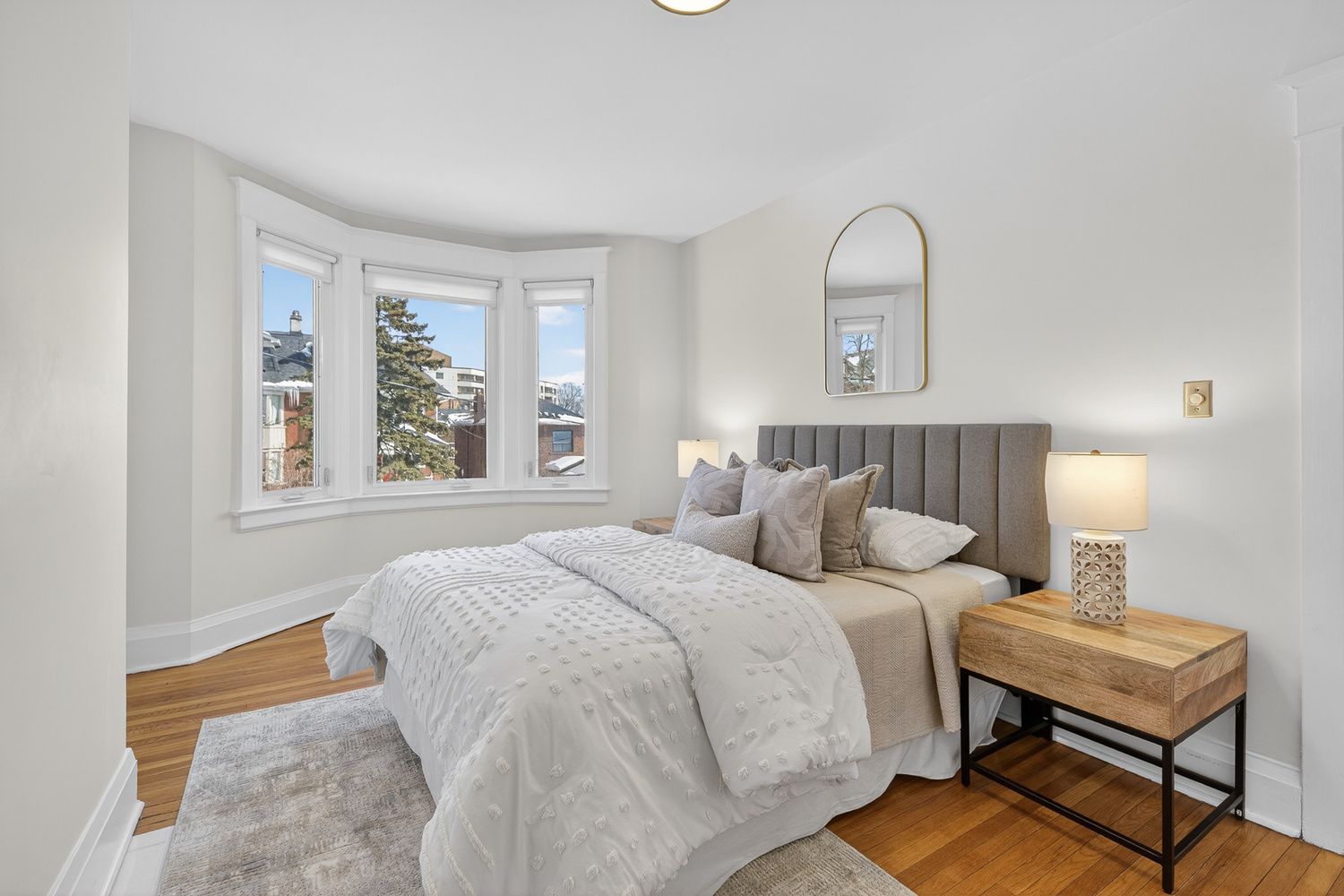 Nestled along coveted alberta avenue in prestigious wychwood, this elegant & beautiful semi-detached home offers an exceptional amount of space and stature in one of the neighbourhood's most sought-after pockets. With approximately 2,200 sq ft above grade and over 2,900 sq ft of total living space, the large scale here is rarely found in the area. This late edwardian era home features original stained glass, five generous bedrooms plus a den/office across the second and third floors, airy and sunlight filled throughout. This showstopper features three full bathrooms, expansive principal rooms that include oversized living and dining areas ideal for family living and entertaining. The kitchen offers a pantry and a walk-out onto the deck and lush thoughtful curated backyard while the finished lower level boasts impressive ceiling height & pot lights - creating flexible space for laundry, recreation, guests, or a home office. Outback, the deep, table-land back garden looks like a private oasis complete with a deck, perennial rose and flower garden, cedar and mature trees that provide shade, serenity and al fresco dining. A garden shed adds convenient storage for tools, bbq, bikes, or strollers. The front garden has a lovely blooming dogwood tree, climbing rose, japanese purple-leaf sand cherry tree plus more. Legal front pad parking for one car, ample street parking on both alberta and tyrrel, and supreme location just steps to mcmurrich junior public school and winona drive senior public school. Enjoy being minutes from public transit, wychwood barns and its popular saturday farmers' market, hillcrest park, geary avenue's vibrant dining scene, ossington, st clair ave west and more - all while living on a prominent peaceful mature tree-lined street with a secluded vibe surrounded by nature. A rare opportunity to own a substantial spacious charming forever family home in the heart of wychwood.