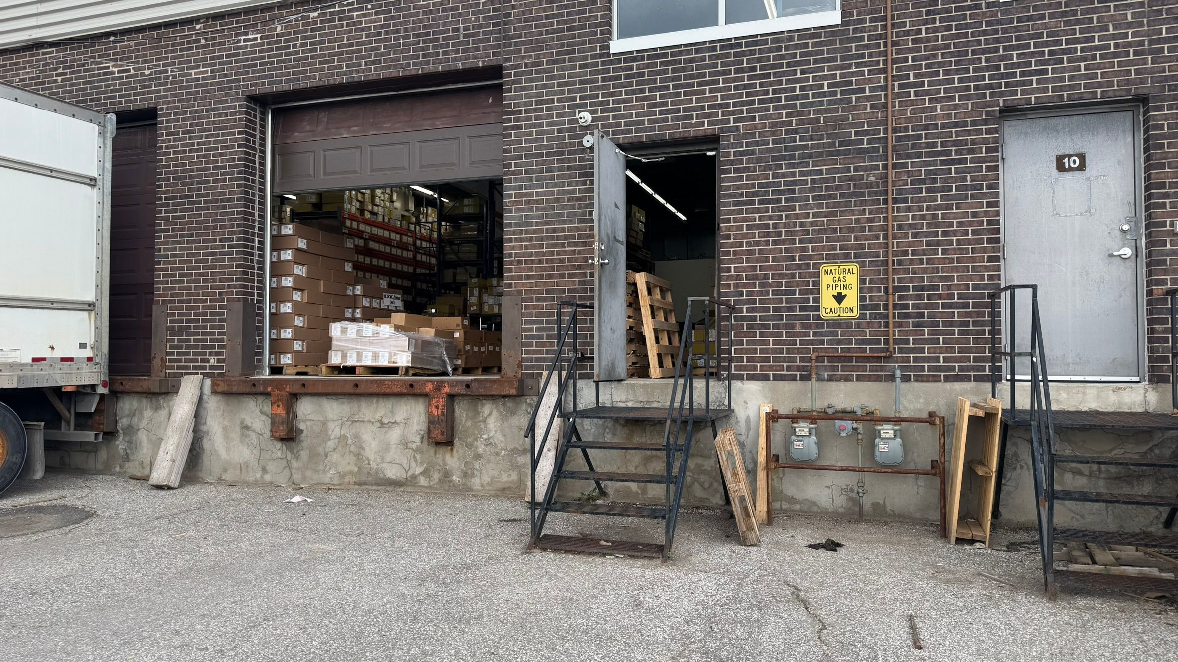 • Unit features multiple entrances and dock-level doors for convenience.