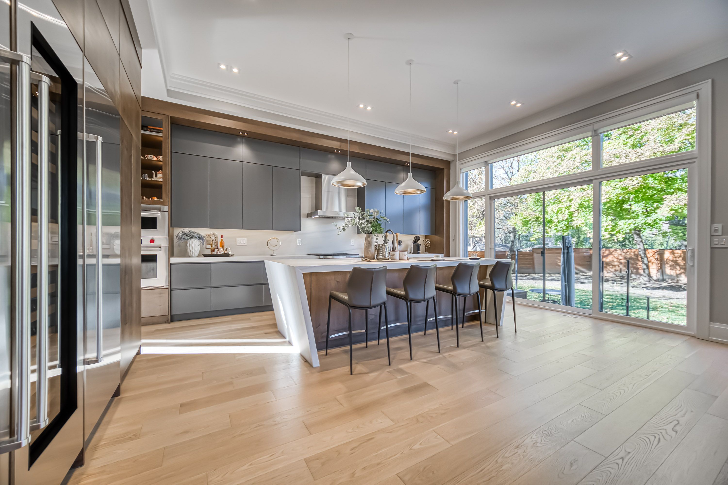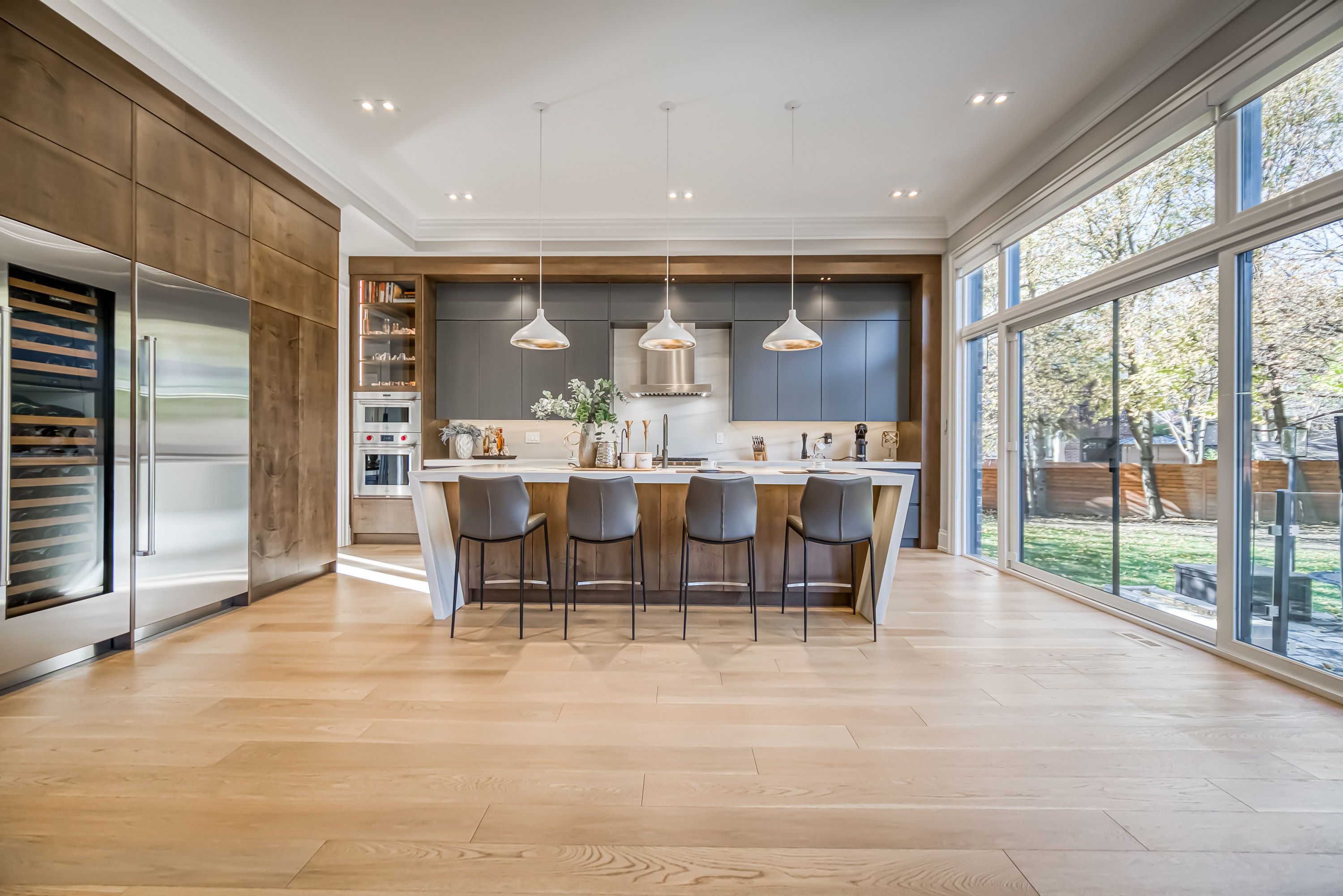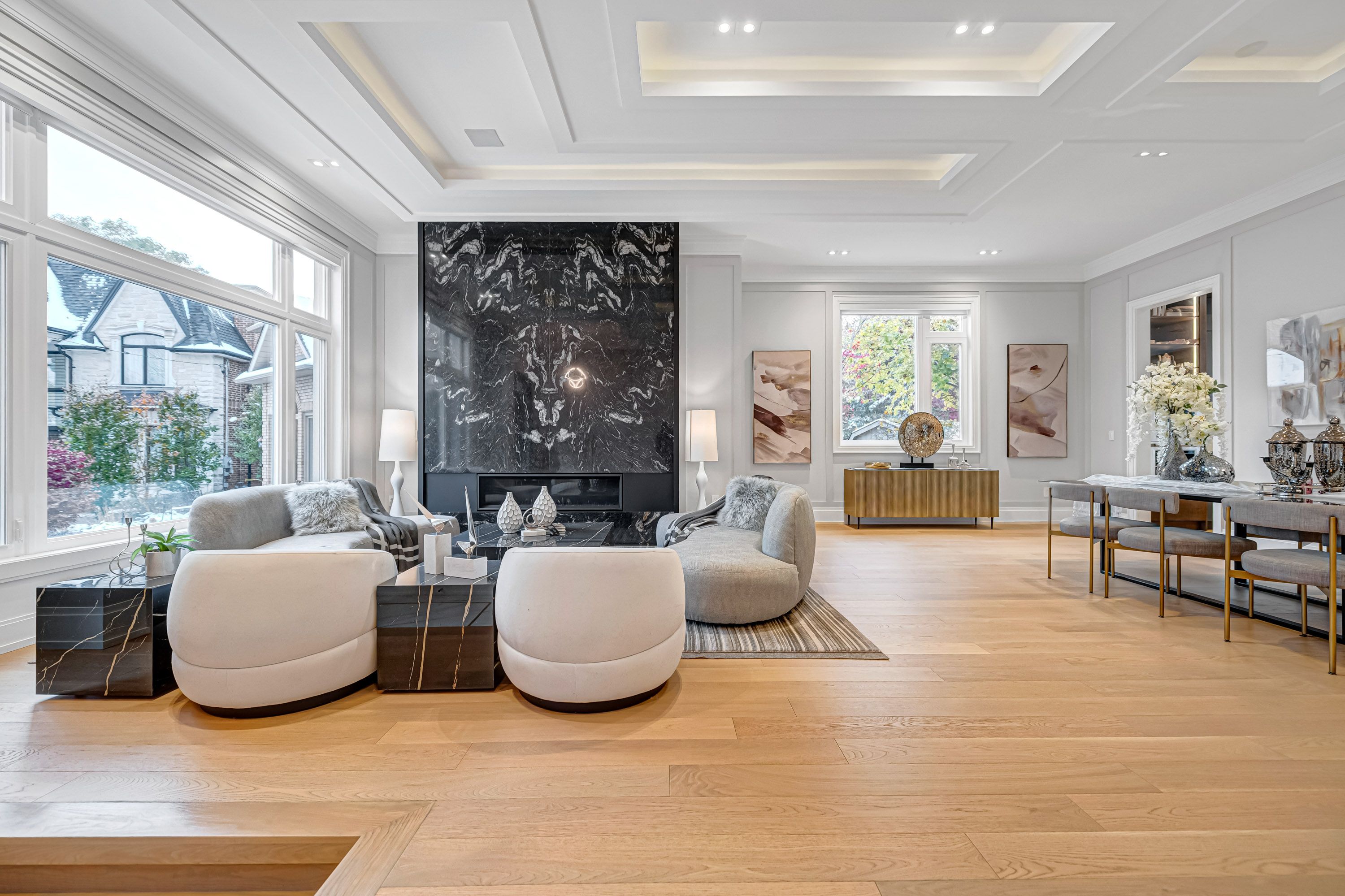 • Bright living spaces with floor-to-ceiling windows and high ceilings.