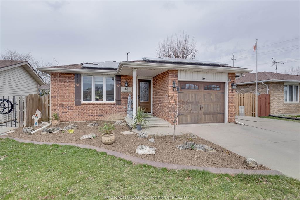 Welcome to 18 azar ave. Beautifully updated, super clean 3 bedroom (2 up 1 down), 2 full bath home. Quiet, safe area, minutes from the 401 & other main arteries. Same owner for over 20 years has done many expensive upgrades incl roof, eavestroughs & most exterior doors, bamboo flooring & engineered hardwoods (no carpet in the home). Character & style throughout. Fully remodeled kitchen 3 years ago with quartz counters, stainless appliances (incl gas stove), copper farmer's sink & tiled backsplash. Enjoy the formal living room with antique french doors & the inviting family room with gas fireplace. Double cement drive leads to the attached garage with bonus pull-down screened closure & rear door to the large composite decking & the swimming pool (just 5 years old). Big 12'x 8' storage shed, privacy fenced rear yard. Nicely landscaped property. Solar panels are paid for, making good money, transferrable to the new owner. Tons of storage, washer & gas dryer stay.