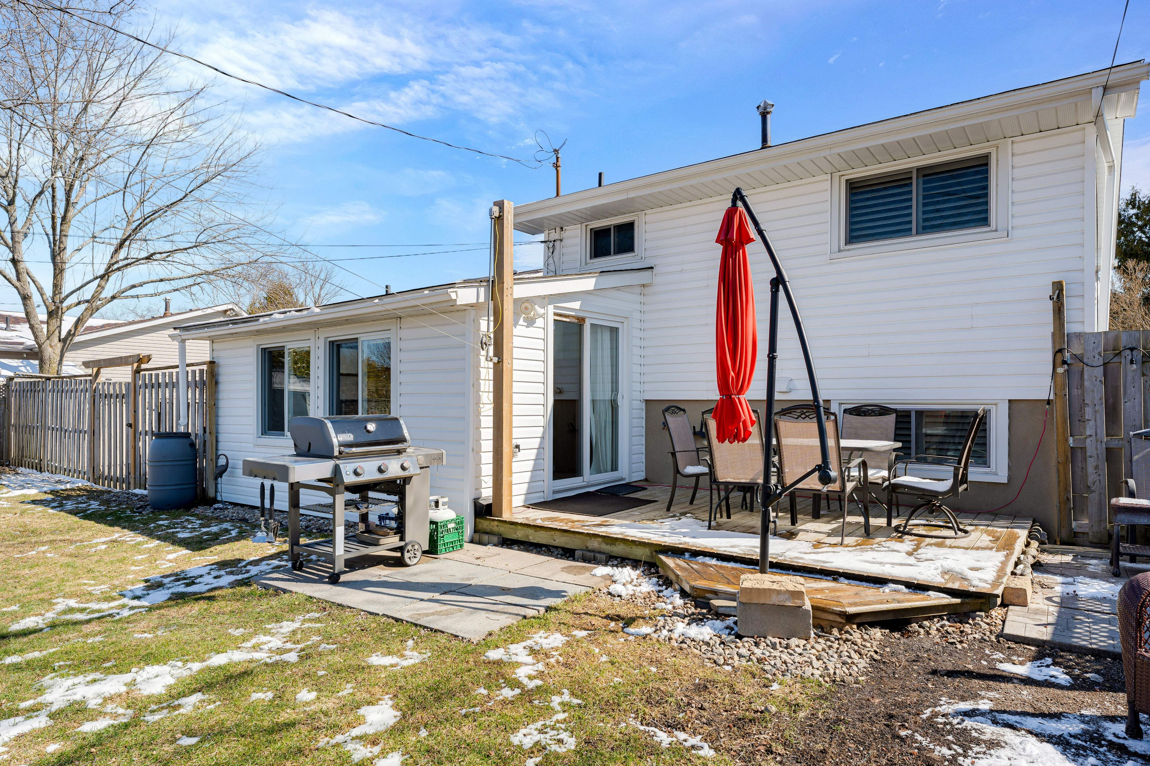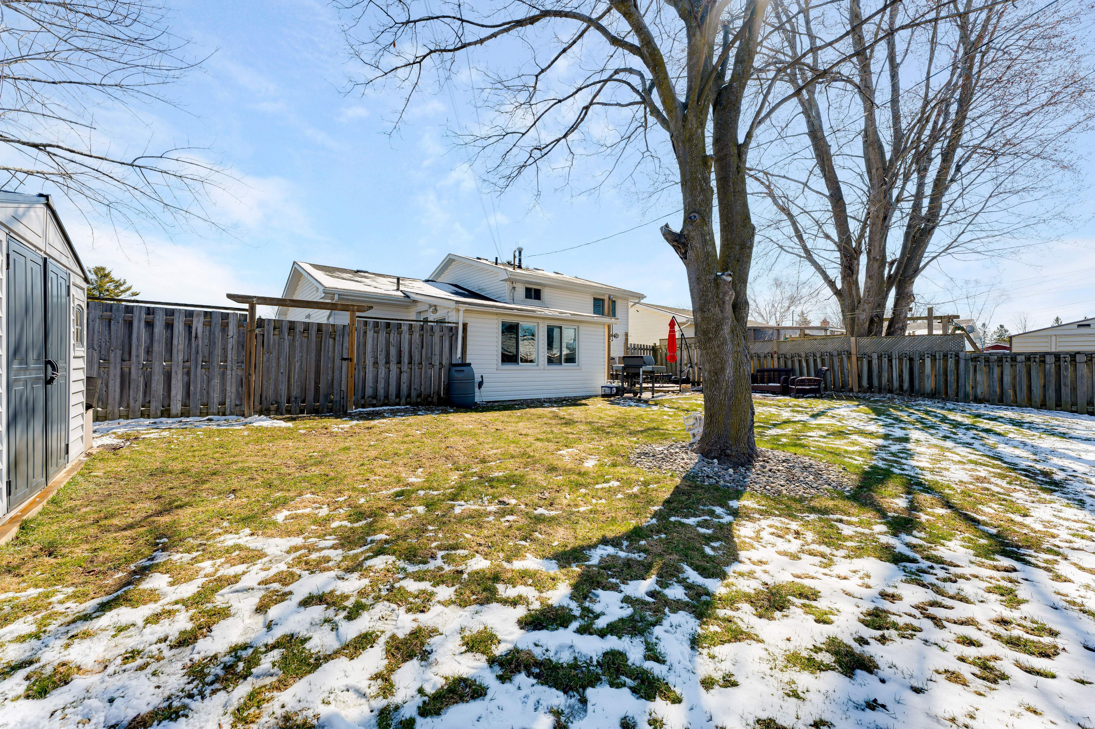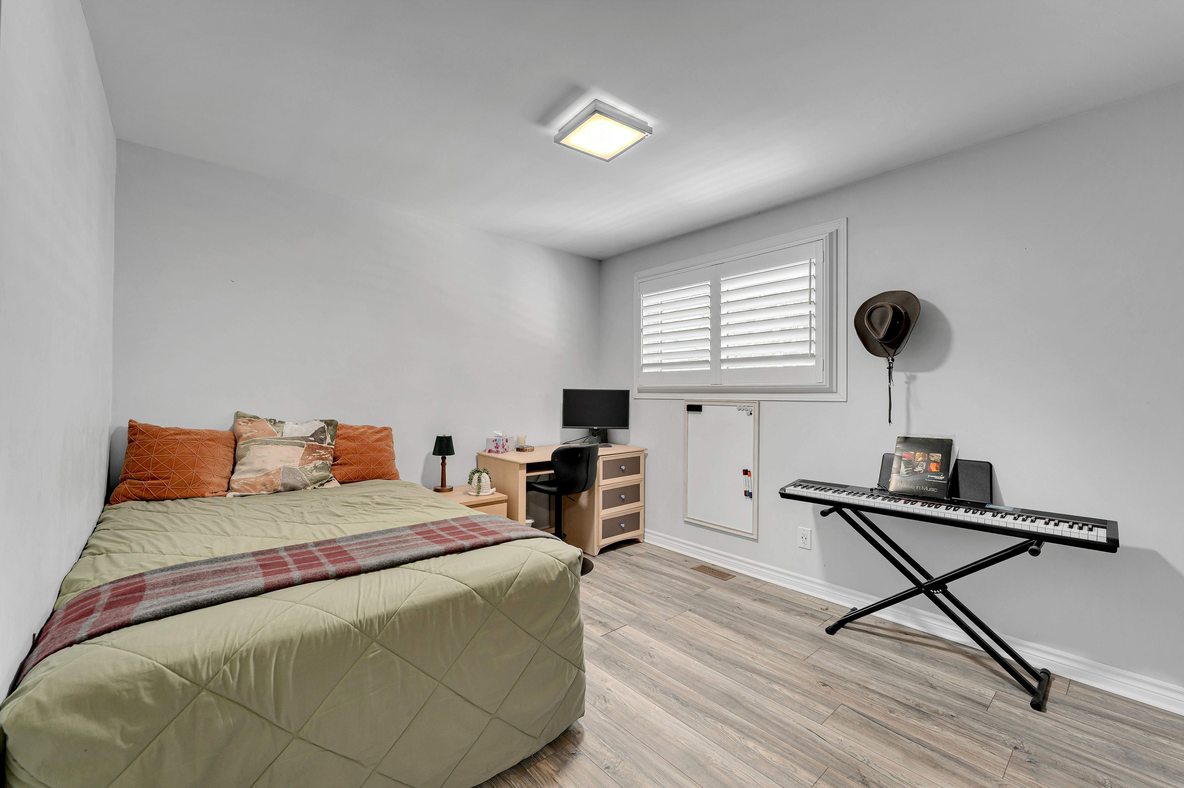 Welcome to this bright, beautifully updated 3+1 bedroom home, set in a quiet, low-traffic, family-friendly neighbourhood and offering the perfect blend of comfort, style, and versatility. Step inside to a modern, open-concept layout featuring a stunning kitchen (just 2 years new), complete with quartz countertops, a large island, built-in oven, gas cooktop, and a wine fridge/beverage centre-ideal for both everyday living and entertaining. The home is completely carpet-free and filled with natural light, creating a clean, airy feel throughout. Enjoy the flexibility of a lower-level primary bedroom retreat, featuring a beautifully appointed luxury ensuite complete with a spacious walk-in shower. This space could also be easily converted back into a rec room to suit your needs. Additional features include a bright 3-season sunroom overlooking the backyard, added insulation in both the attic and crawl space for improved efficiency, and california shutters throughout for a polished finish. Outside, you'll find a large fenced yard perfect for kids, pets, or summer gatherings, along with a double driveway offering plenty of parking. Well cared for and truly move-in ready, this home is a fantastic opportunity in a welcoming community.