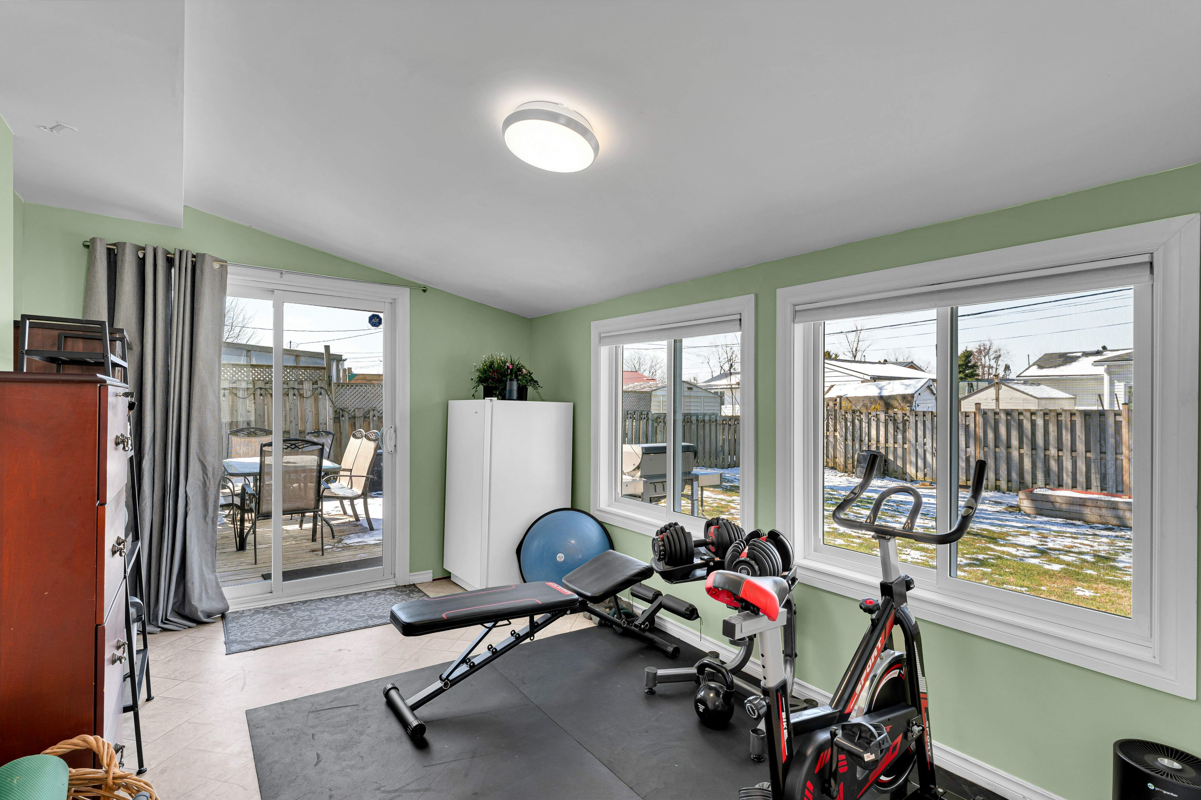 • Bright 3-season sunroom overlooking a spacious backyard.