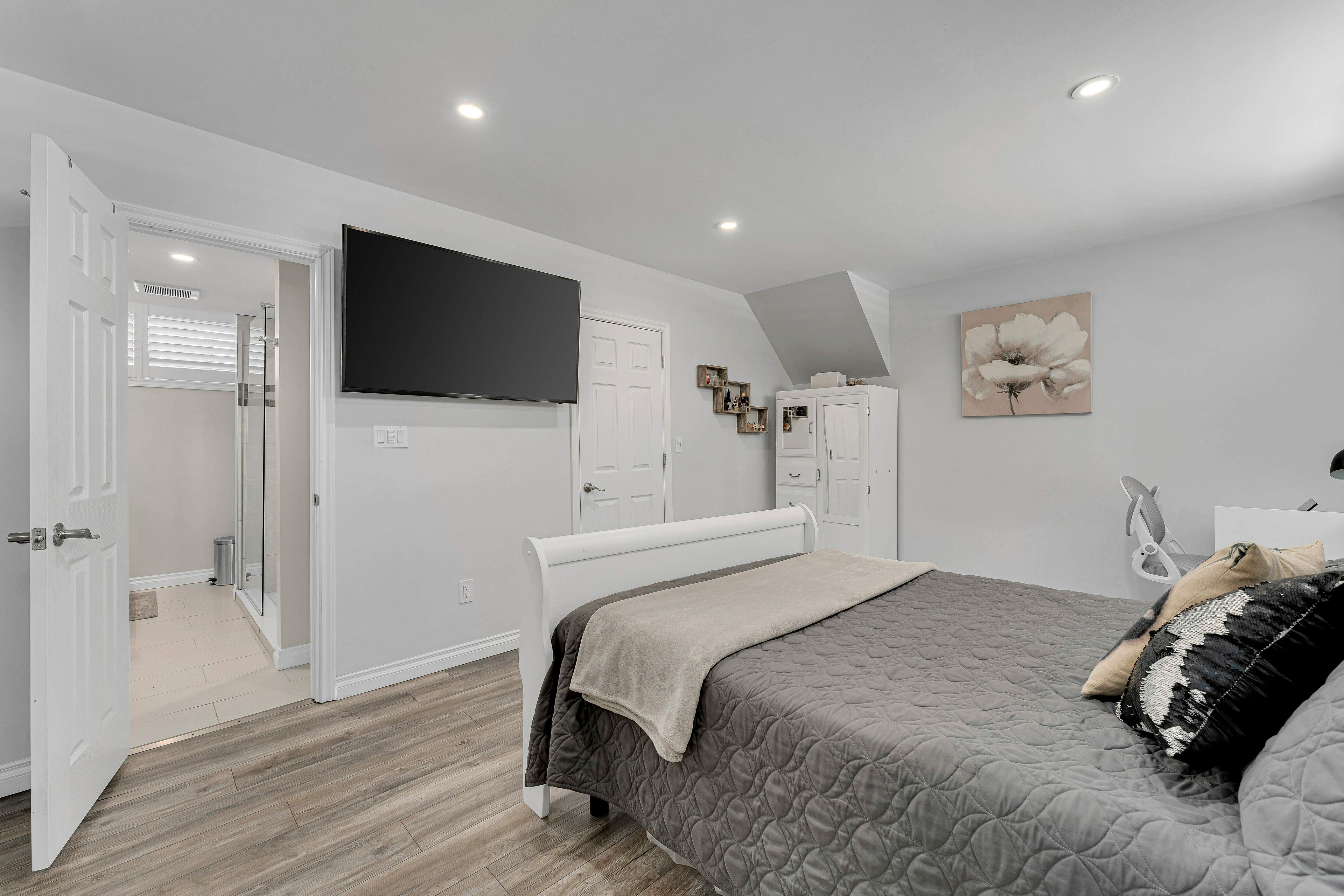 • Lower-level primary bedroom with luxury ensuite and walk-in shower.