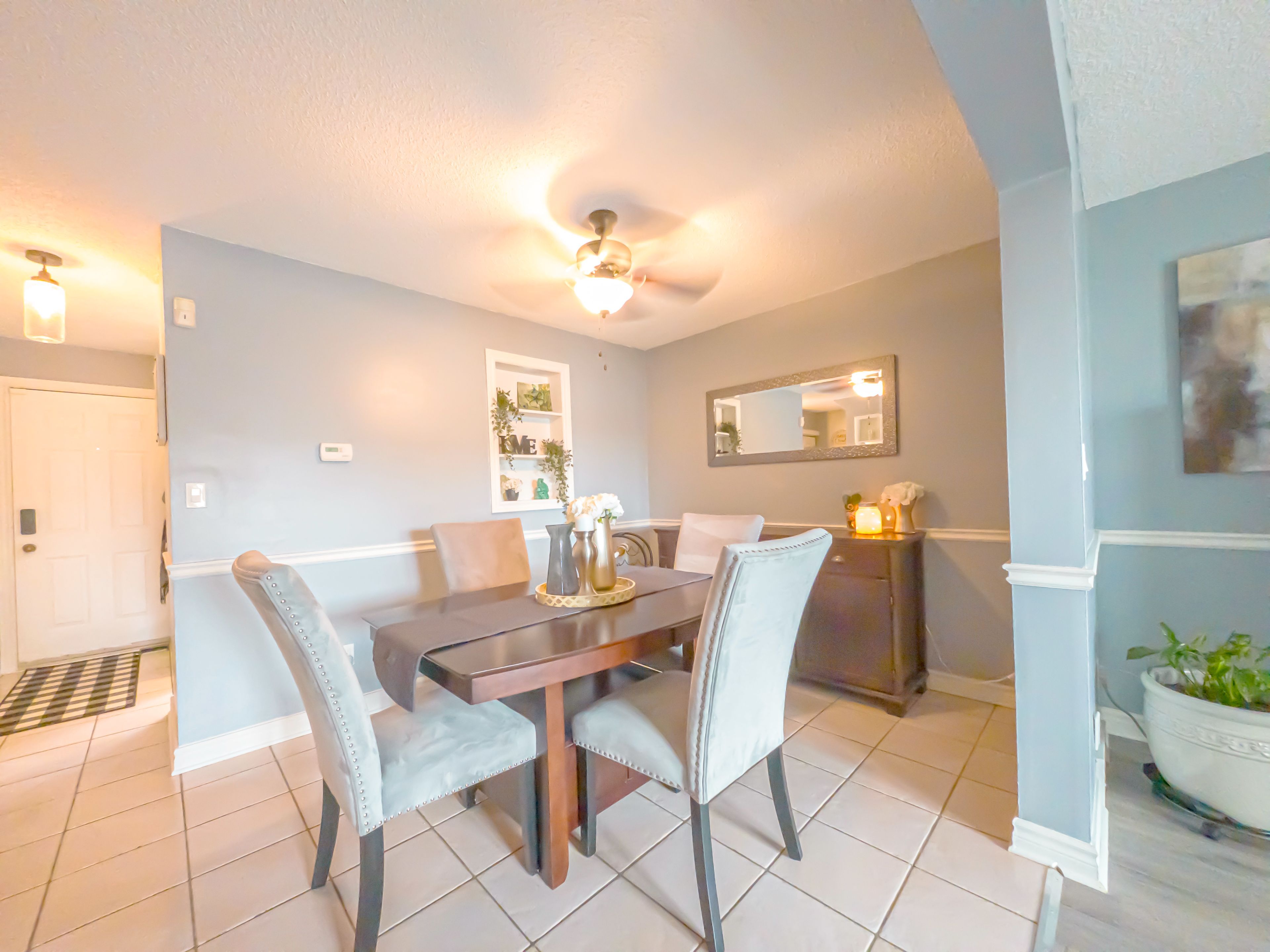 • Bright eat-in kitchen with access to a private, fenced backyard.