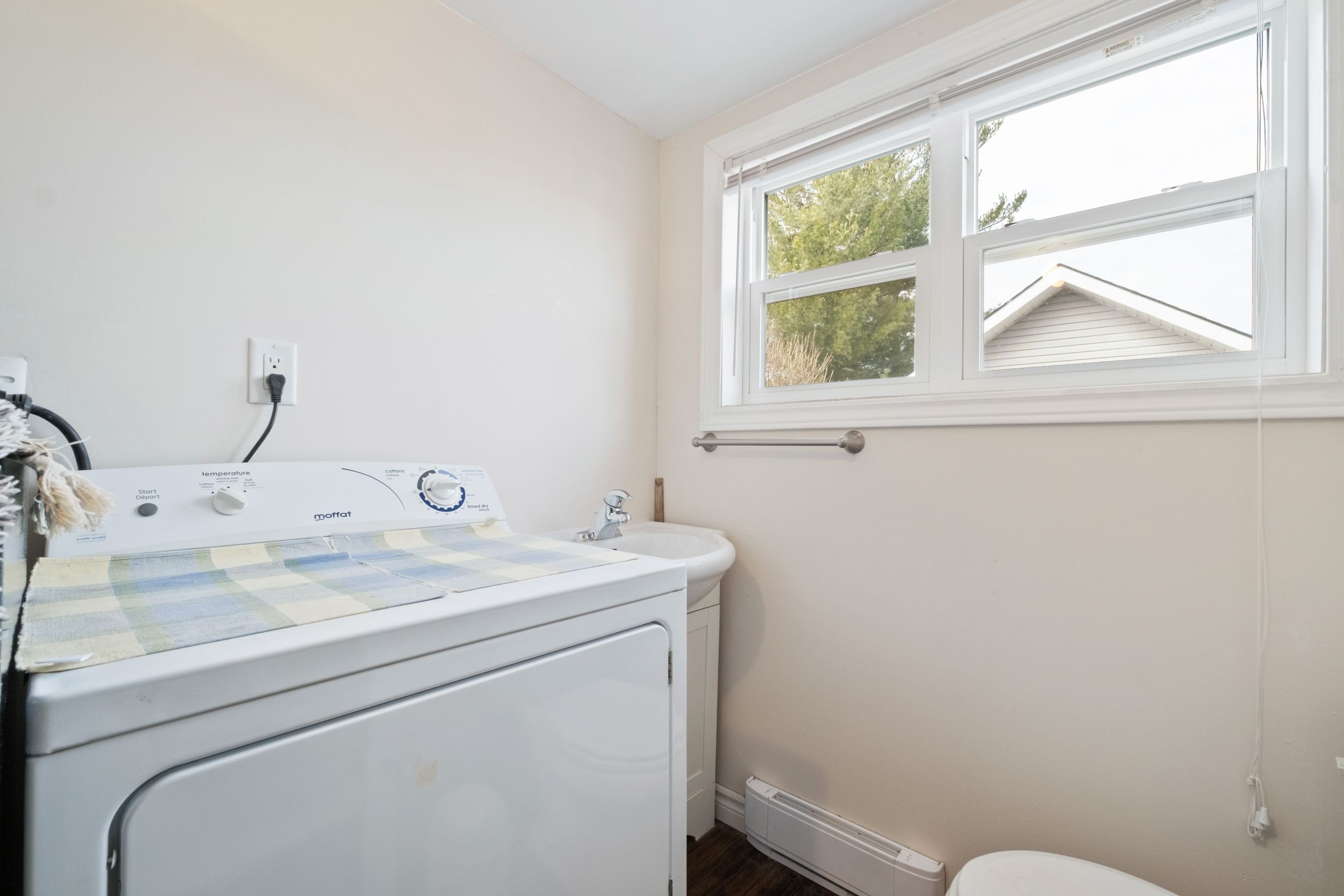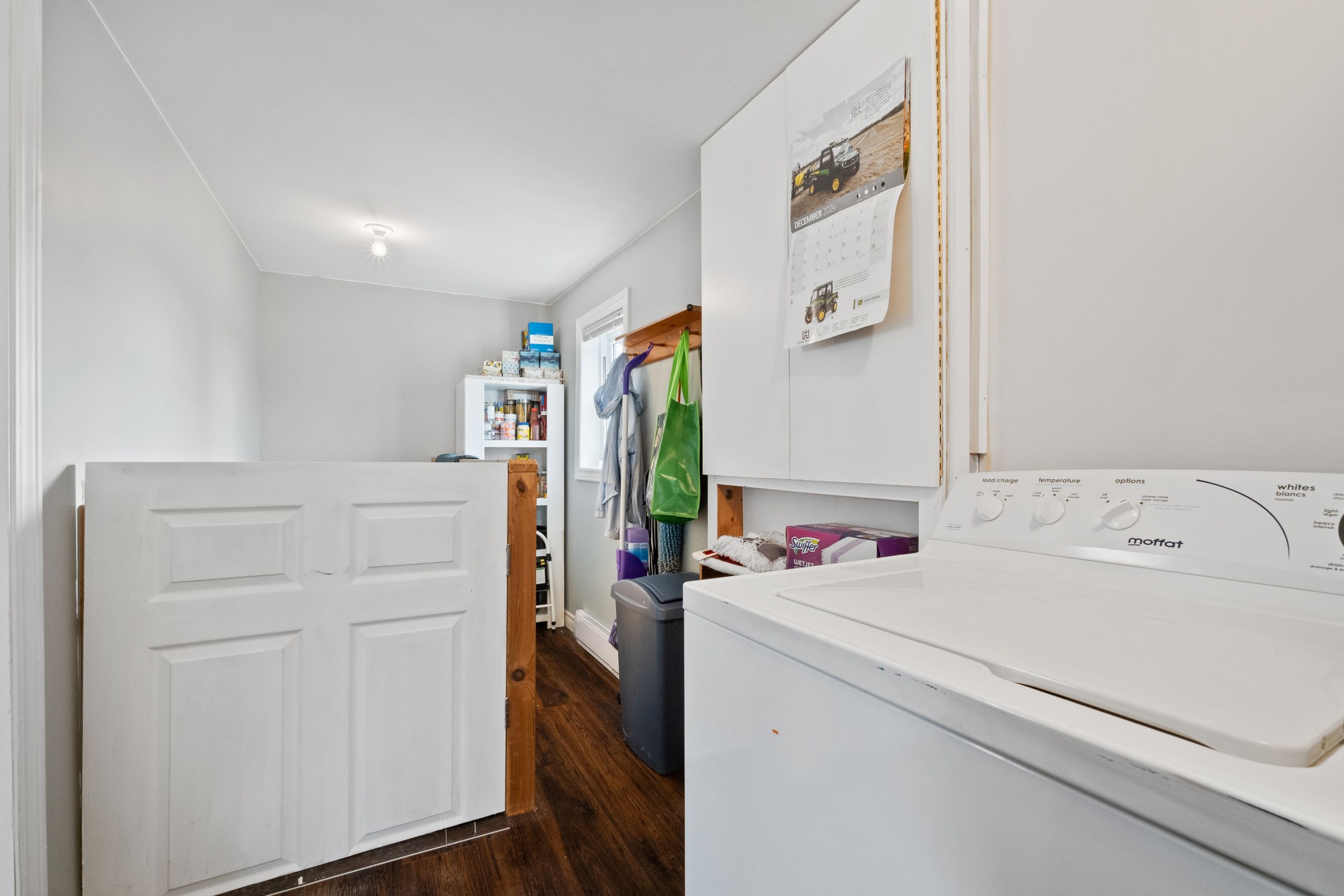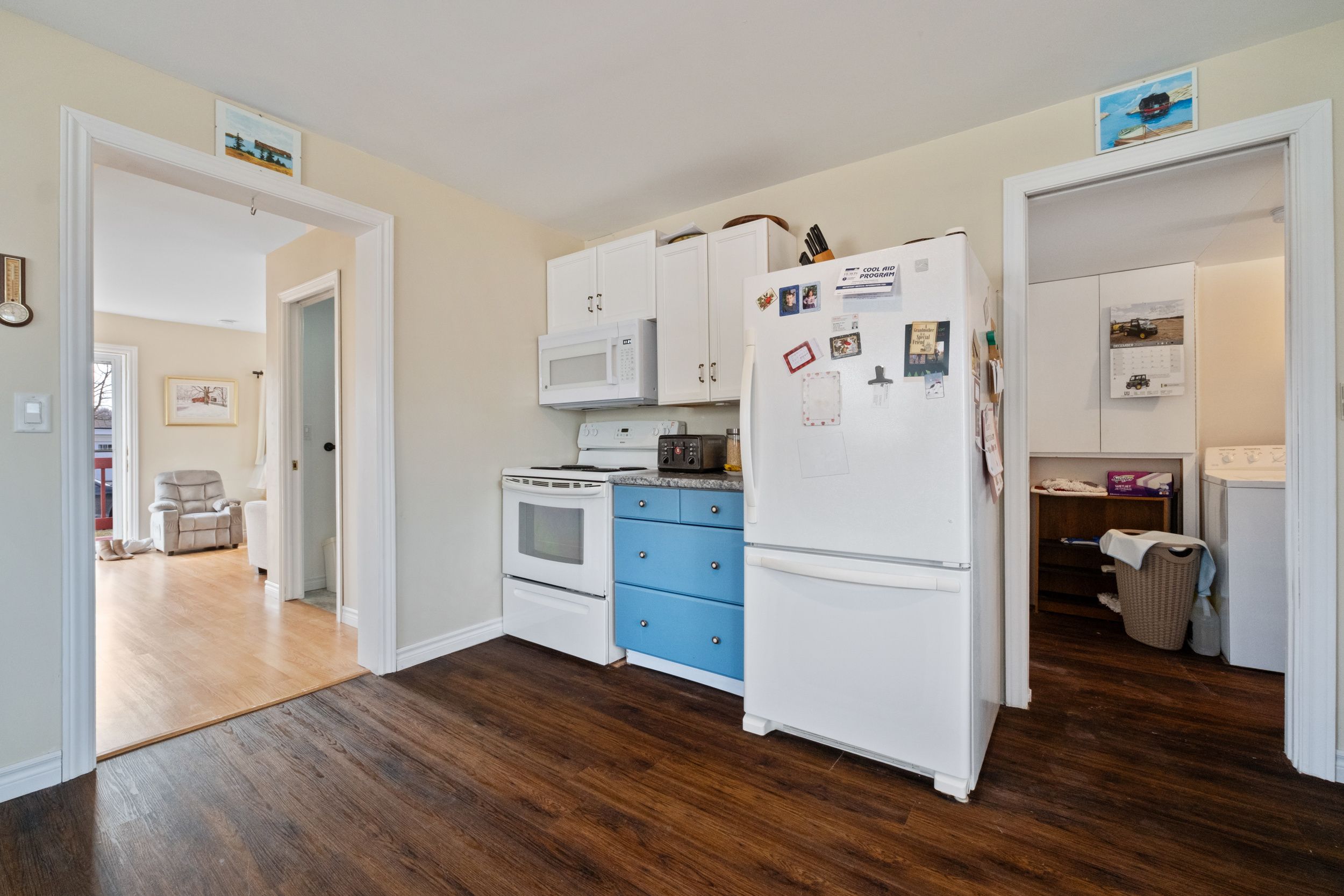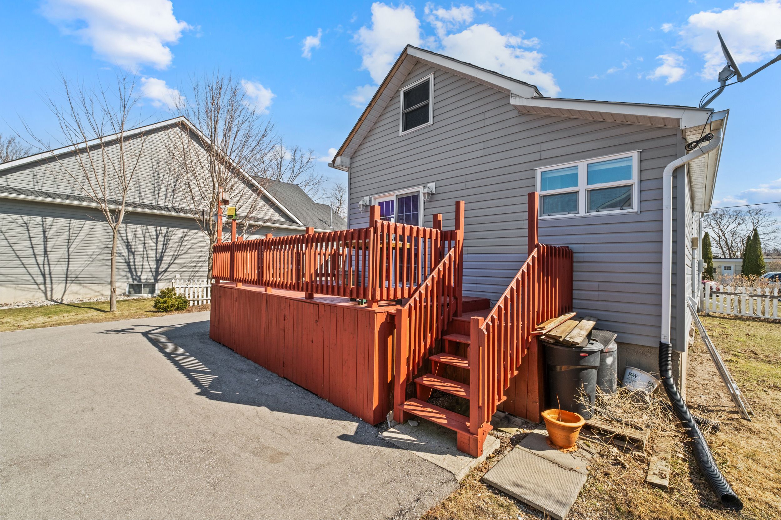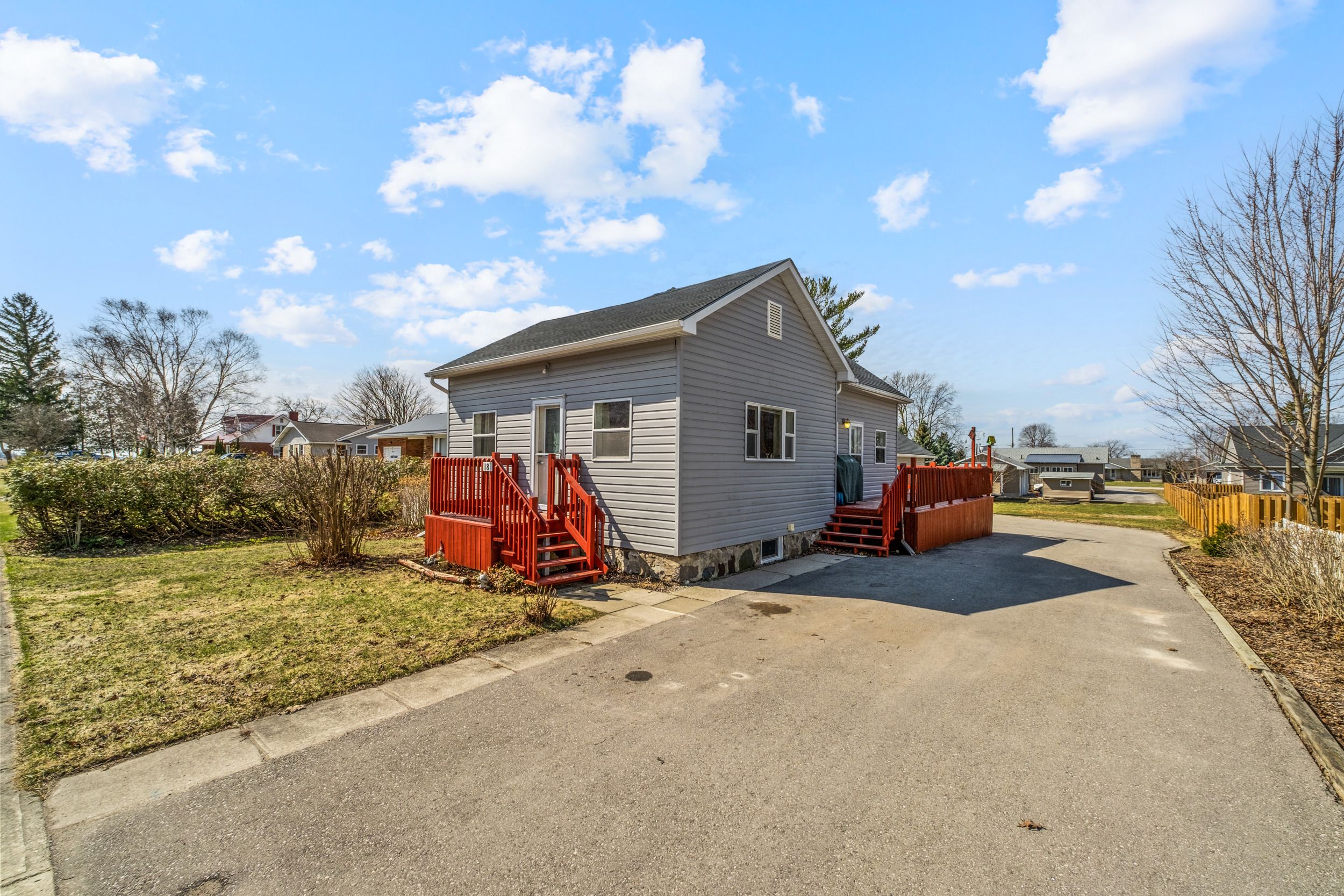 This well-maintained home has been thoughtfully updated and offers a functional layout suited for comfortable everyday living. Approximately 8-10 years ago, the property was fully gutted and rebuilt with 2x6 construction, featuring updated wiring, plumbing, and insulation, all completed to code. Additional improvements include newer windows installed within the past decade. The main floor features a bright eat-in kitchen with patio doors leading to a wraparound deck-ideal for outdoor dining and entertaining. A convenient main floor laundry area is located just off the kitchen and includes a 2-piece bathroom, while a separate 3-piece bathroom adds further functionality. The living room is situated at the front of the home, along with a main floor bedroom. Upstairs, a loft-style second bedroom offers a cozy and flexible living space. Set on a generous lot measuring approximately 66 by 166 feet, the property is partially fenced and provides ample outdoor space. A paved laneway leads to a large detached double car garage/shop, built approximately 7 years ago, featuring a poured concrete floor, hydro, and an upper-level storage area. The home is serviced by a 200 amp breaker panel, with a separate 60 amp panel in the shop. With solid updates, practical features, and a spacious lot, this property presents a great opportunity for a variety of buyers.