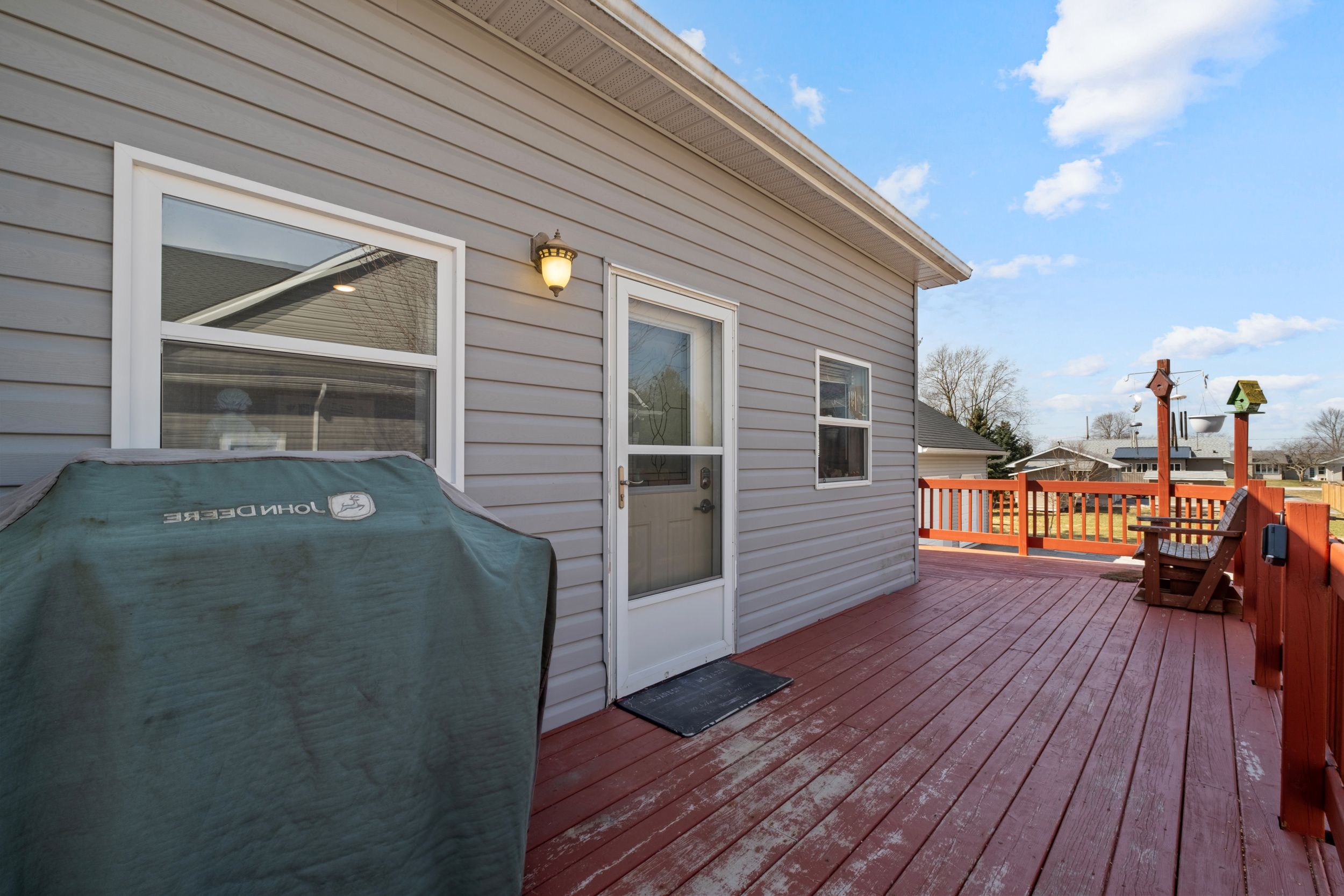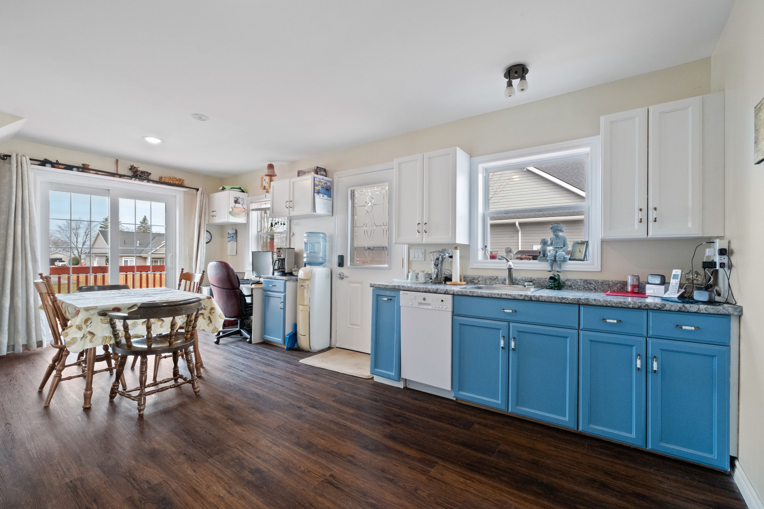 • Bright eat-in kitchen with patio doors leading to a wraparound deck.