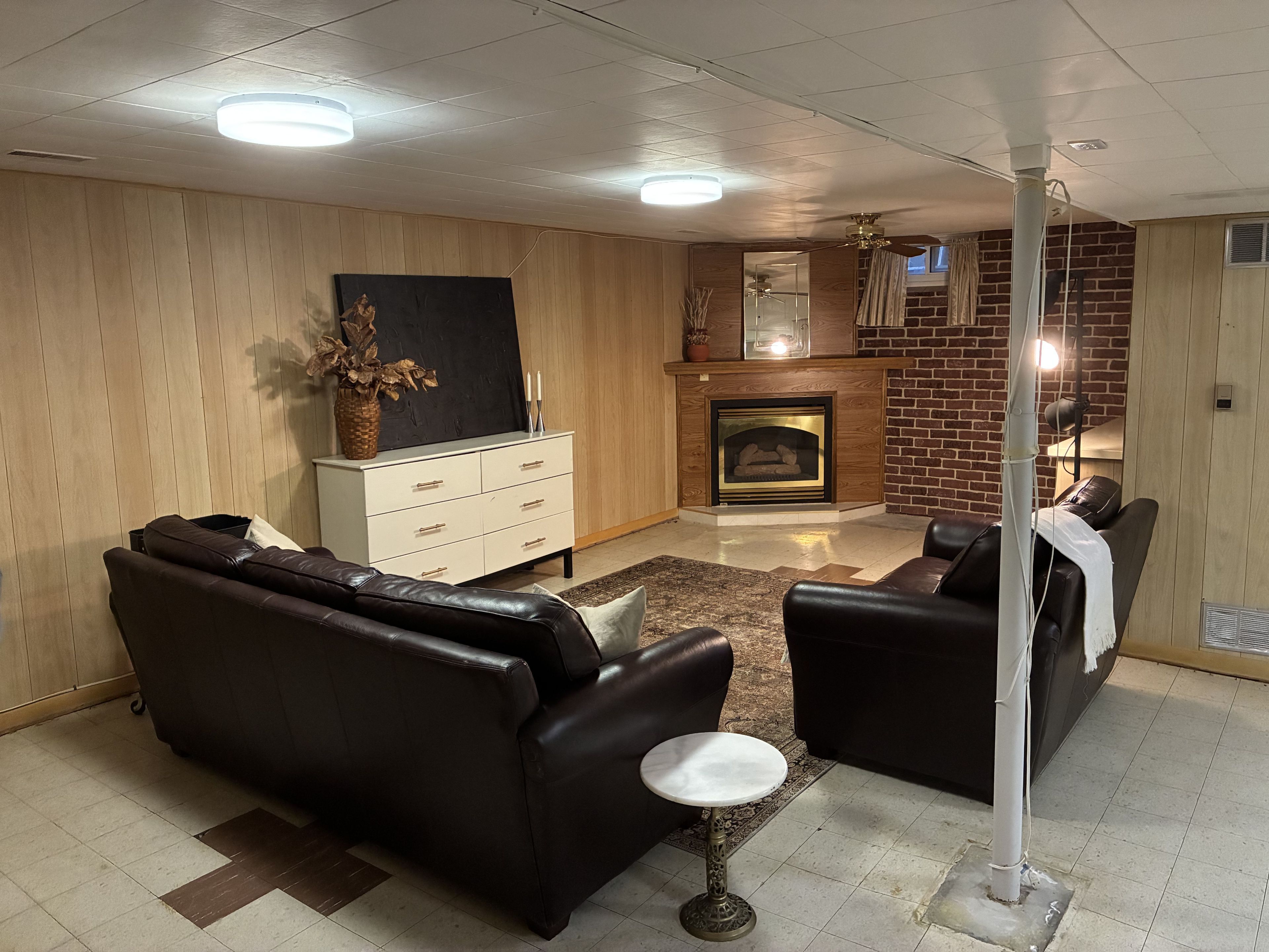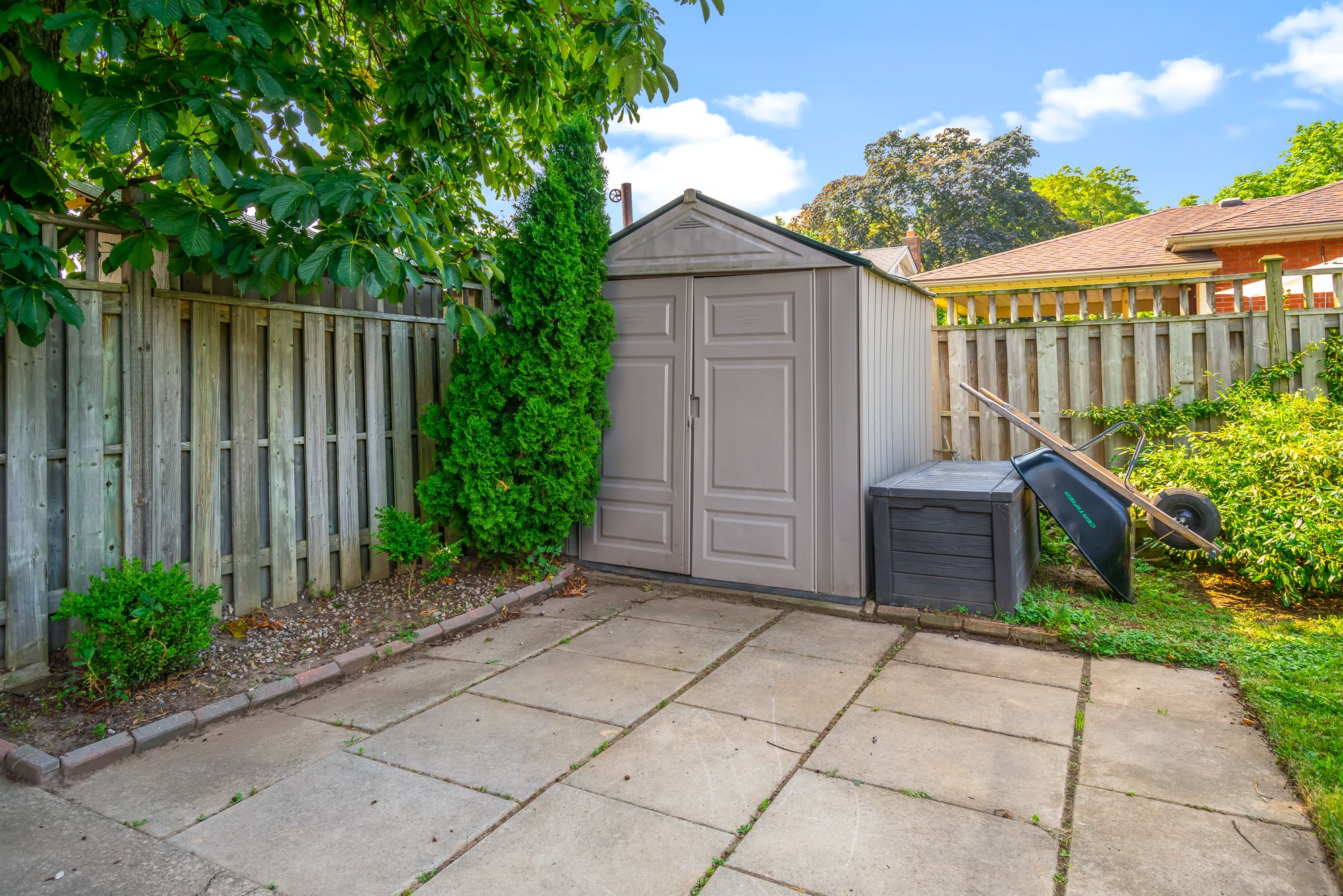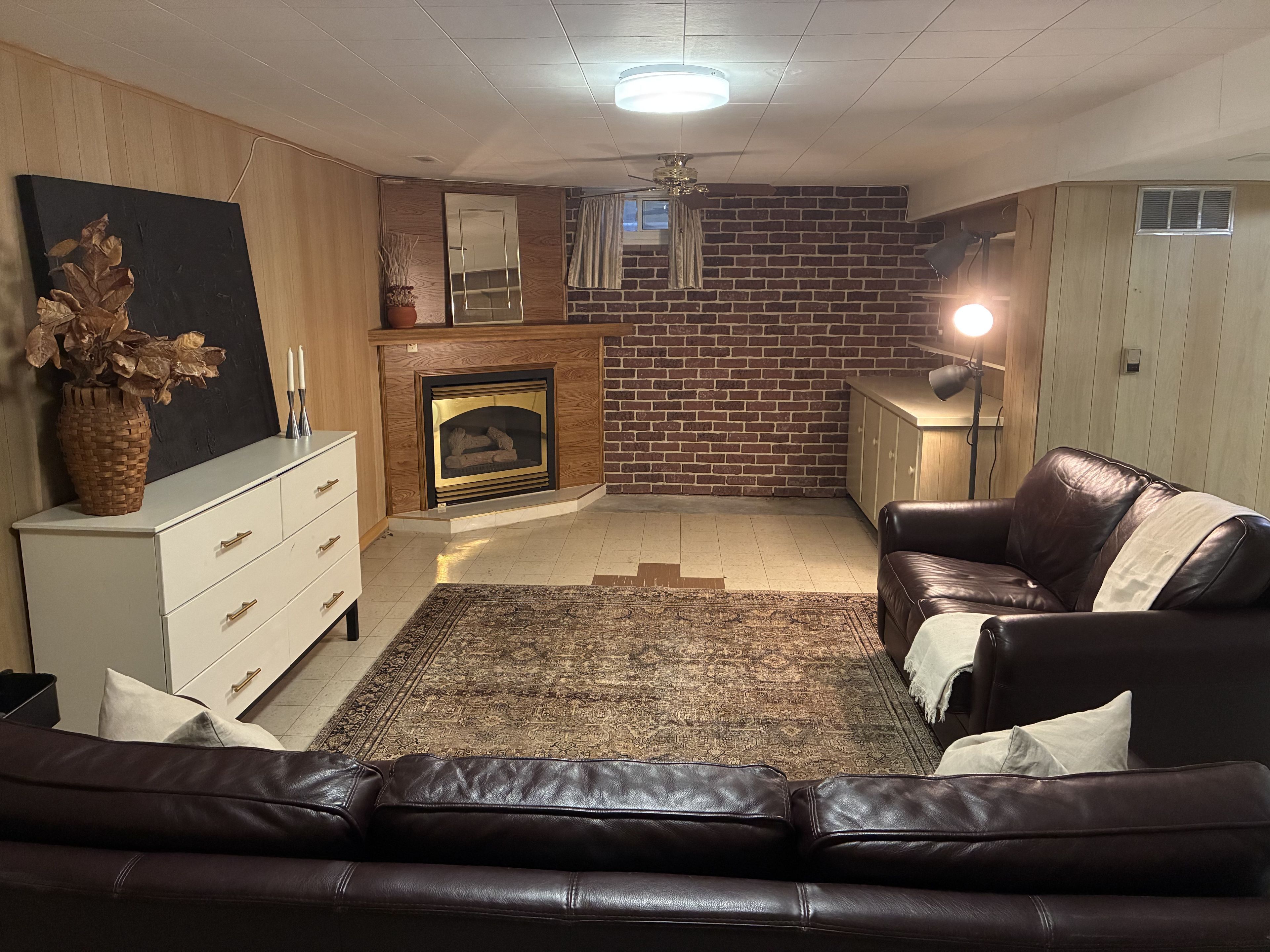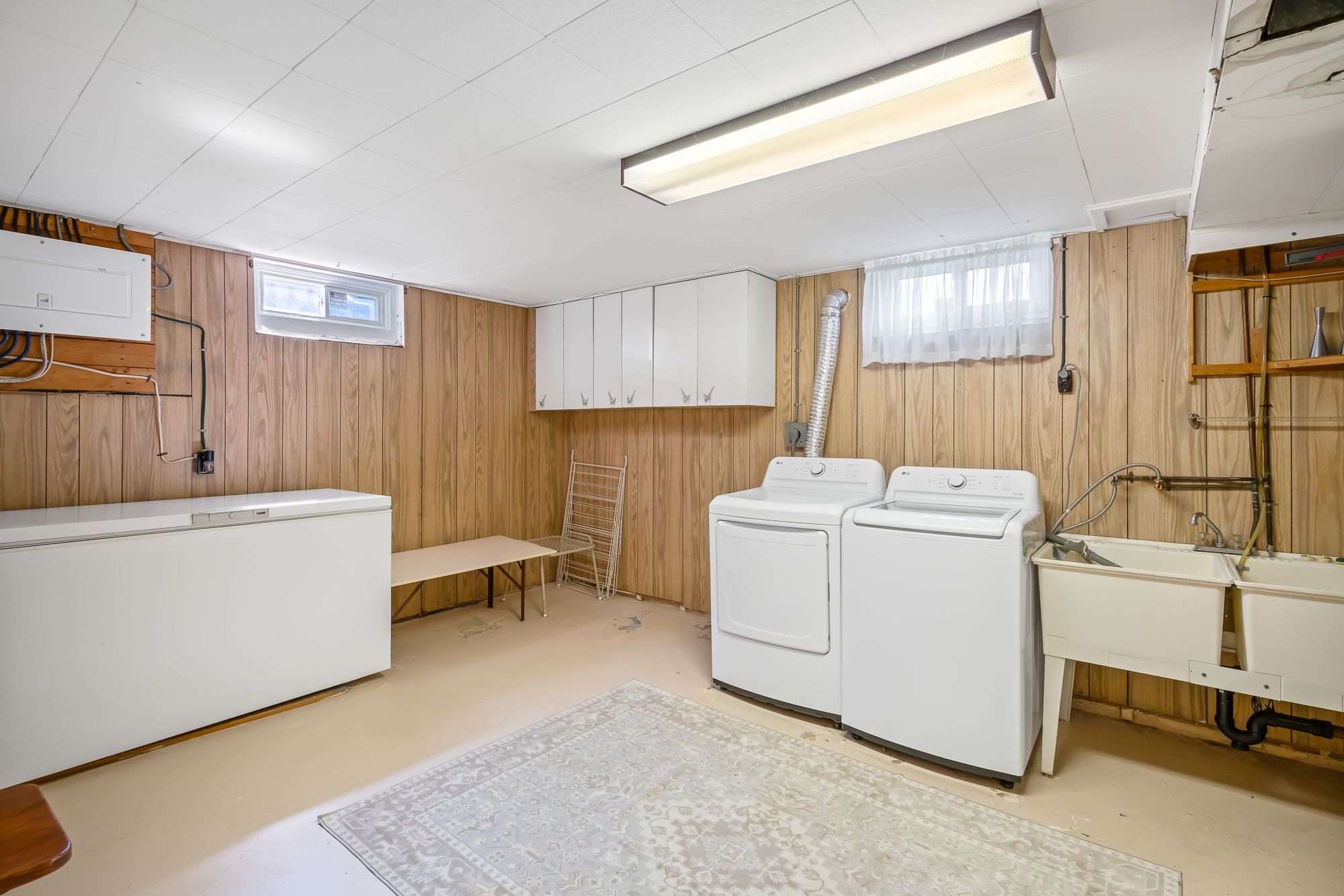 • Finished basement includes workshop, rec room, and bonus bathroom.