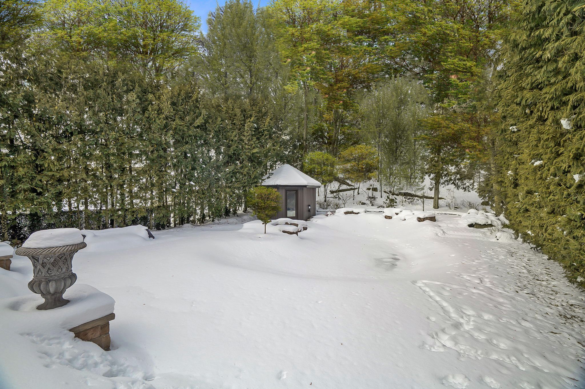 A rare ravine estate in the heart of the highly coveted hoggs hollow. Discreetly set on an extraordinary 56 x 295 ft ravine lot with a rare country in the city ambience. Surrounded by mature trees, natural beauty, and privacy. Offering approximately 7,100 square feet of luxurious living space. Timeless stone exterior with a long snow melt drive. Soaring ceilings, exquisite custom millwork, refined paneling, integrated built-ins, lighting, and curated architectural elements create a sophisticated and opulent interior. A gourmet kitchen equipped with premium appliances, centre island, large breakfast area, and spacious family room with gas fireplace and built-ins all overlooking the serene wooded setting. Charming and private walnut paneled library. The primary suite is a true private retreat, featuring a generous walk-in dressing room and a spa-inspired ensuite. Additionally, four other generously sized bedrooms all with ensuites complete the upper level. The lower level features heated floors, a state-of-the-art sunken home theatre accessed by an antique barn door and an impressive wine display glass wall framing the cards room. There is also a billiards room/lounge, gym, and a private nanny/guest room. The backyard is a true tree-lined sanctuary with a heated swimming pool, hot tub, cabana, expansive stone terrace, and built-in outdoor cooking area. Located minutes from top public and private schools, and just steps to the subway with quick access to the 401 and 404. It's hard to imagine you are in the centre of the city here! This exceptional property offers the ultimate balance of luxury, convenience, and natural serenity. This is truly a rare offering in one of toronto's most prestigious enclaves!
