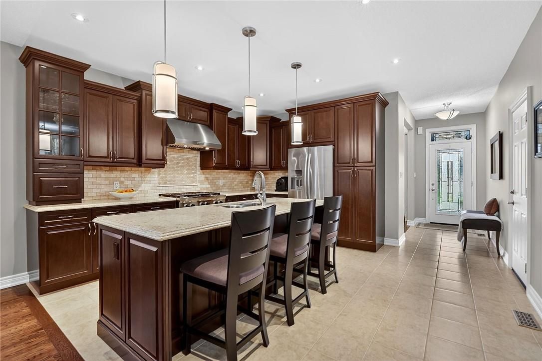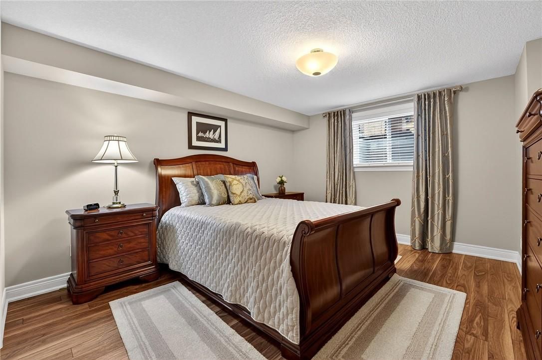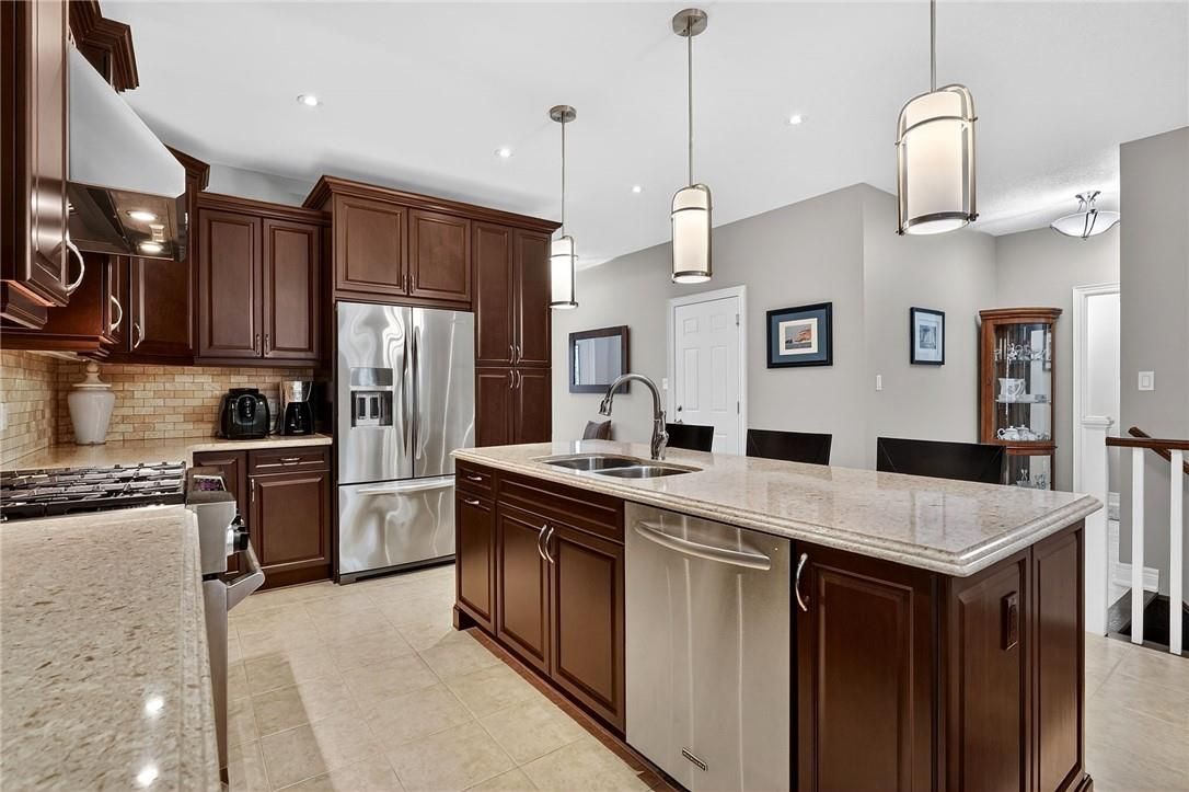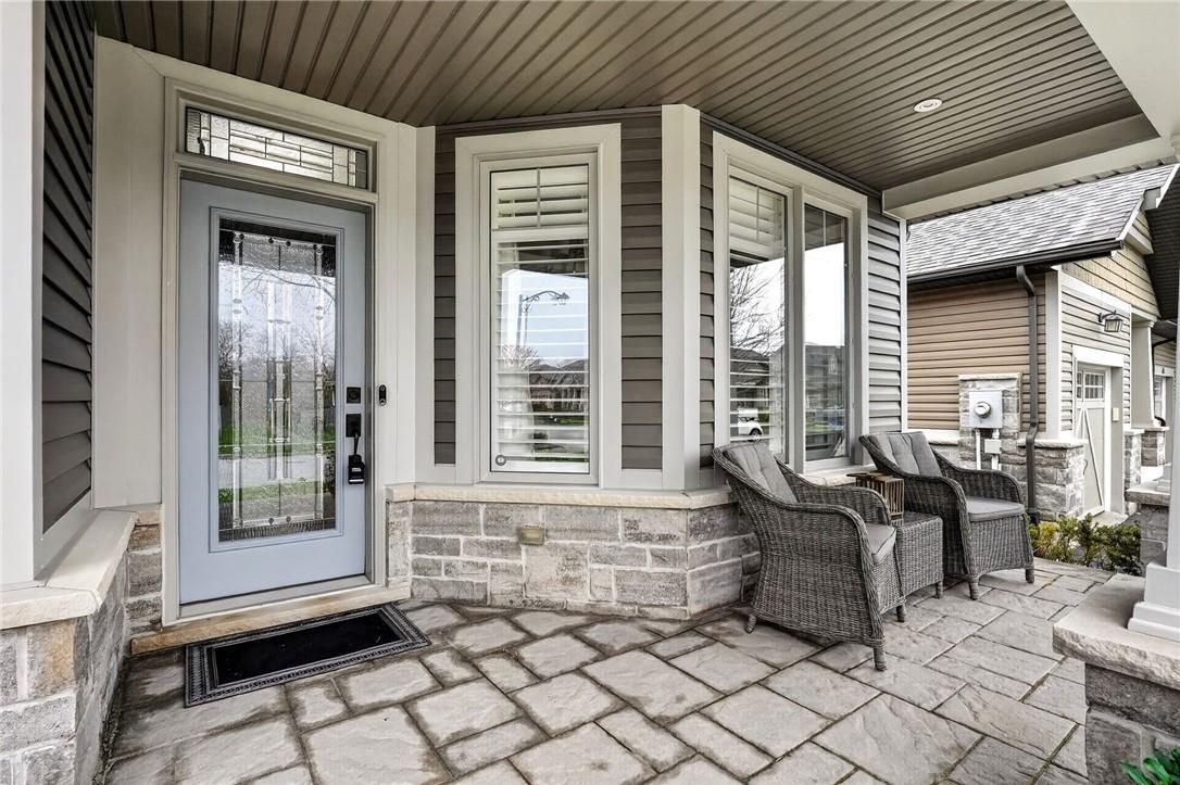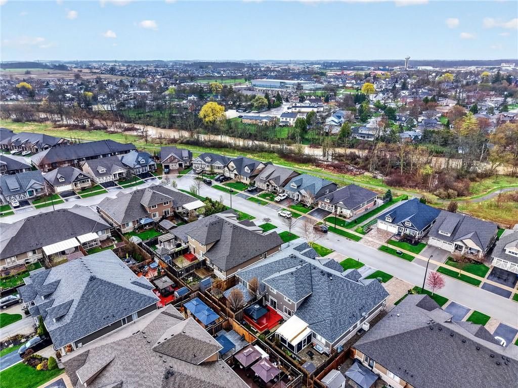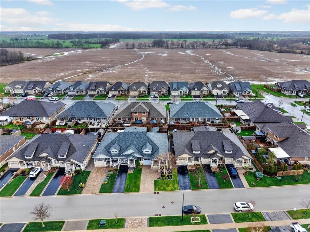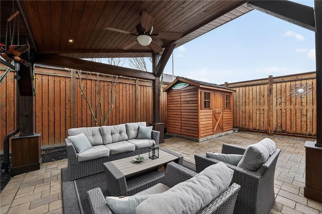 Simply immaculate freehold end-unit townhome in smithville's highly desirable "brookside on the twenty" neighbourhood. A fantastic opportunity for downsizers or retirees to enjoy stylish, low-maintenance living without sacrificing space or comfort. The property is oozing with curb appeal - highlighted by professional landscaping in the front and backyard. Inside the home are stunning finishes throughout - cambria quartz, crown moulding, oak hardwood, kitchenaid appliances, a gas fireplace, california shutters, built-in closet shelving - the list goes on! The elegant open concept kitchen, dining, and living room combination is perfect for entertaining and everyday ease. The spacious primary bedroom offers a walk-in closet with built-in organizers, and a 4-piece ensuite with double sinks and an accessible shower - ideal for those with mobility challenges. A versatile front den provides ideal space for a home office or second bedroom. Downstairs, the fully finished basement with large egress windows adds incredible flexibility with a large rec room, a bedroom with walk-in closet, another full bathroom, laundry area, and generous storage. The private backyard feels like an extension of the house - pergola with potlights, gas line for bbq, interlock patio, storage shed - an entertainer's dream! This beautiful home must be seen to be fully appreciated. This is the epitome of downsizing in style. Note: some photos have been virtually staged.