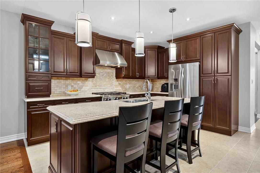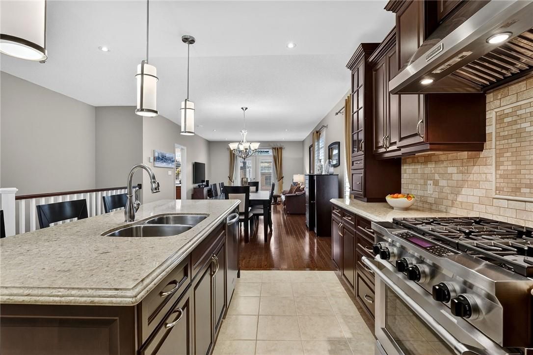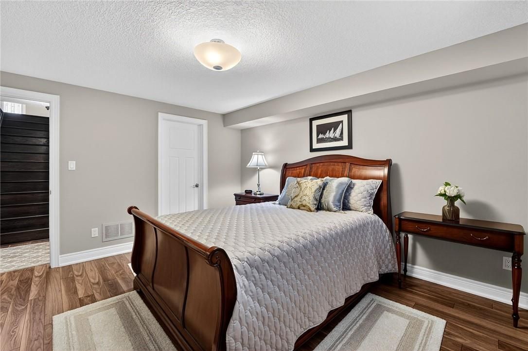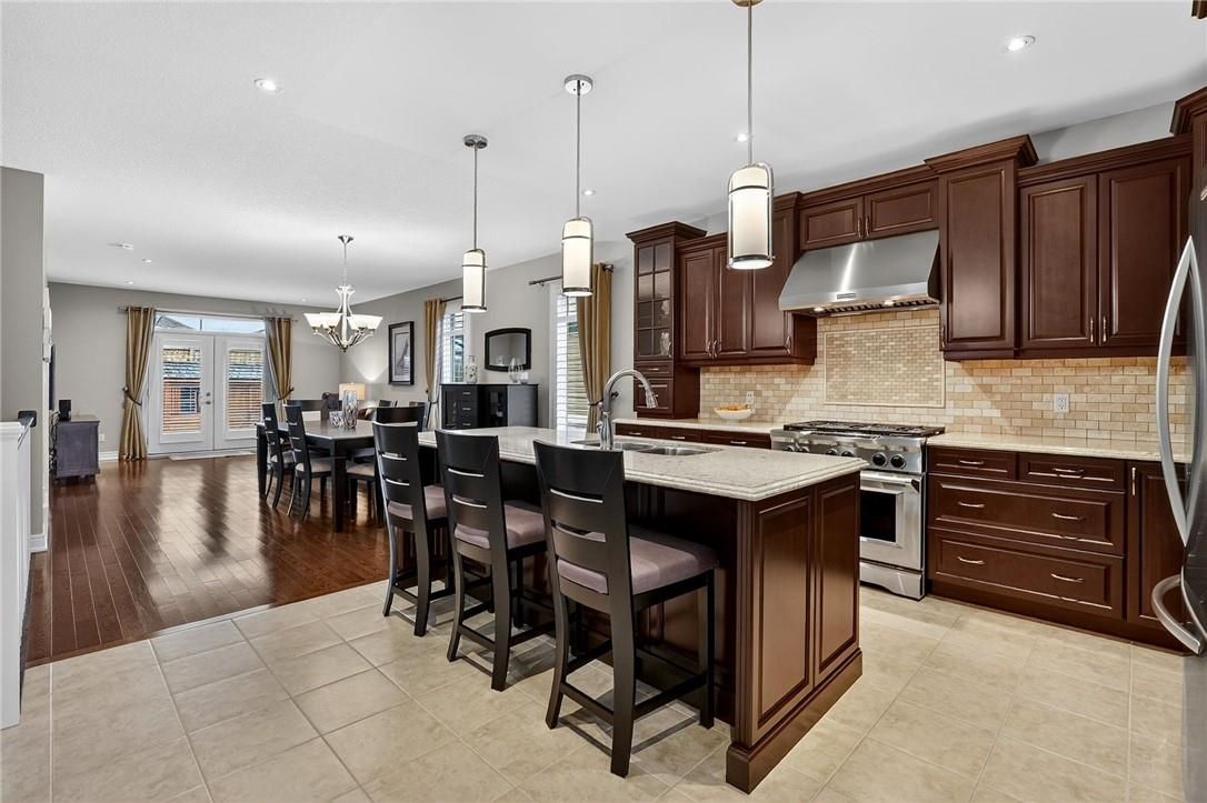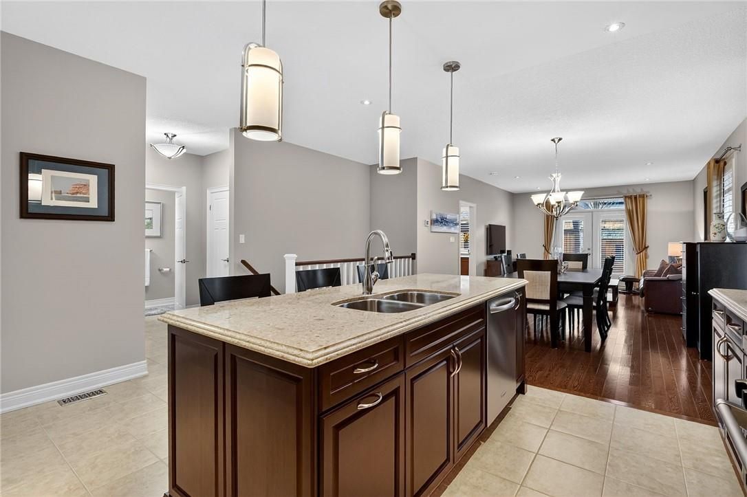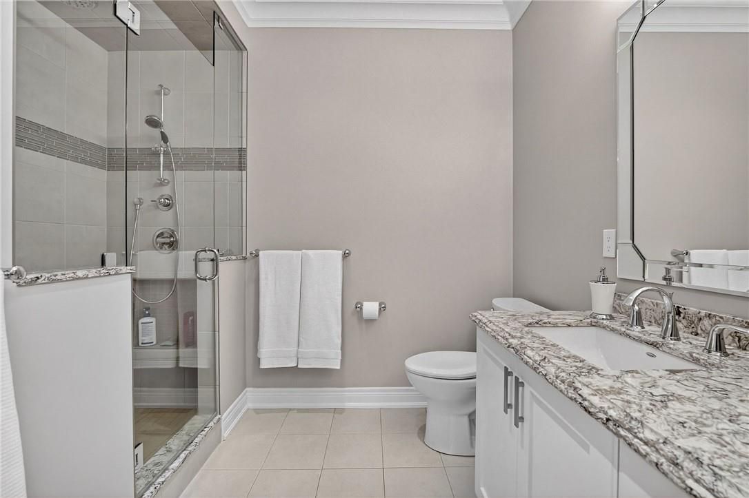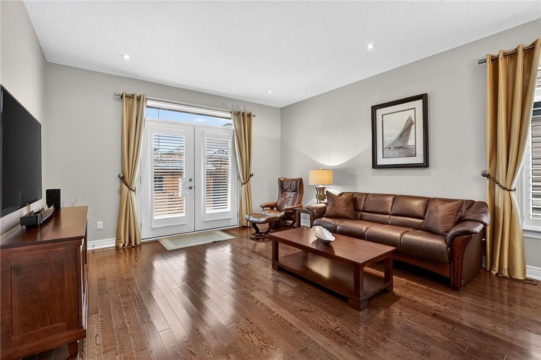 Simply immaculate freehold end-unit townhome in smithville's highly desirable "brookside on the twenty" neighbourhood. A fantastic opportunity for downsizers or retirees to enjoy stylish, low-maintenance living without sacrificing space or comfort. The property is oozing with curb appeal - highlighted by professional landscaping in the front and backyard. Inside the home are stunning finishes throughout - cambria quartz, crown moulding, oak hardwood, kitchenaid appliances, a gas fireplace, california shutters, built-in closet shelving - the list goes on! The elegant open concept kitchen, dining, and living room combination is perfect for entertaining and everyday ease. The spacious primary bedroom offers a walk-in closet with built-in organizers, and a 4-piece ensuite with double sinks and an accessible shower - ideal for those with mobility challenges. A versatile front den provides ideal space for a home office or second bedroom. Downstairs, the fully finished basement with large egress windows adds incredible flexibility with a large rec room, a bedroom with walk-in closet, another full bathroom, laundry area, and generous storage. The private backyard feels like an extension of the house - pergola with potlights, gas line for bbq, interlock patio, storage shed - an entertainer's dream! This beautiful home must be seen to be fully appreciated. This is the epitome of downsizing in style. Note: some photos have been virtually staged.