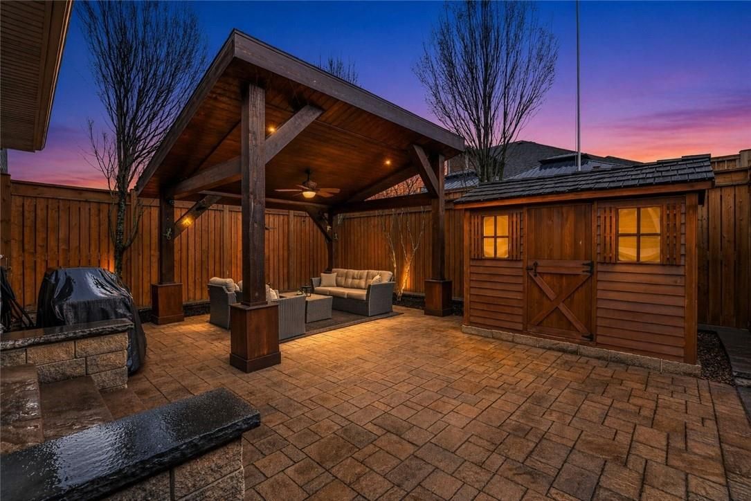 • Private backyard with a pergola, gas BBQ line, and interlock patio.