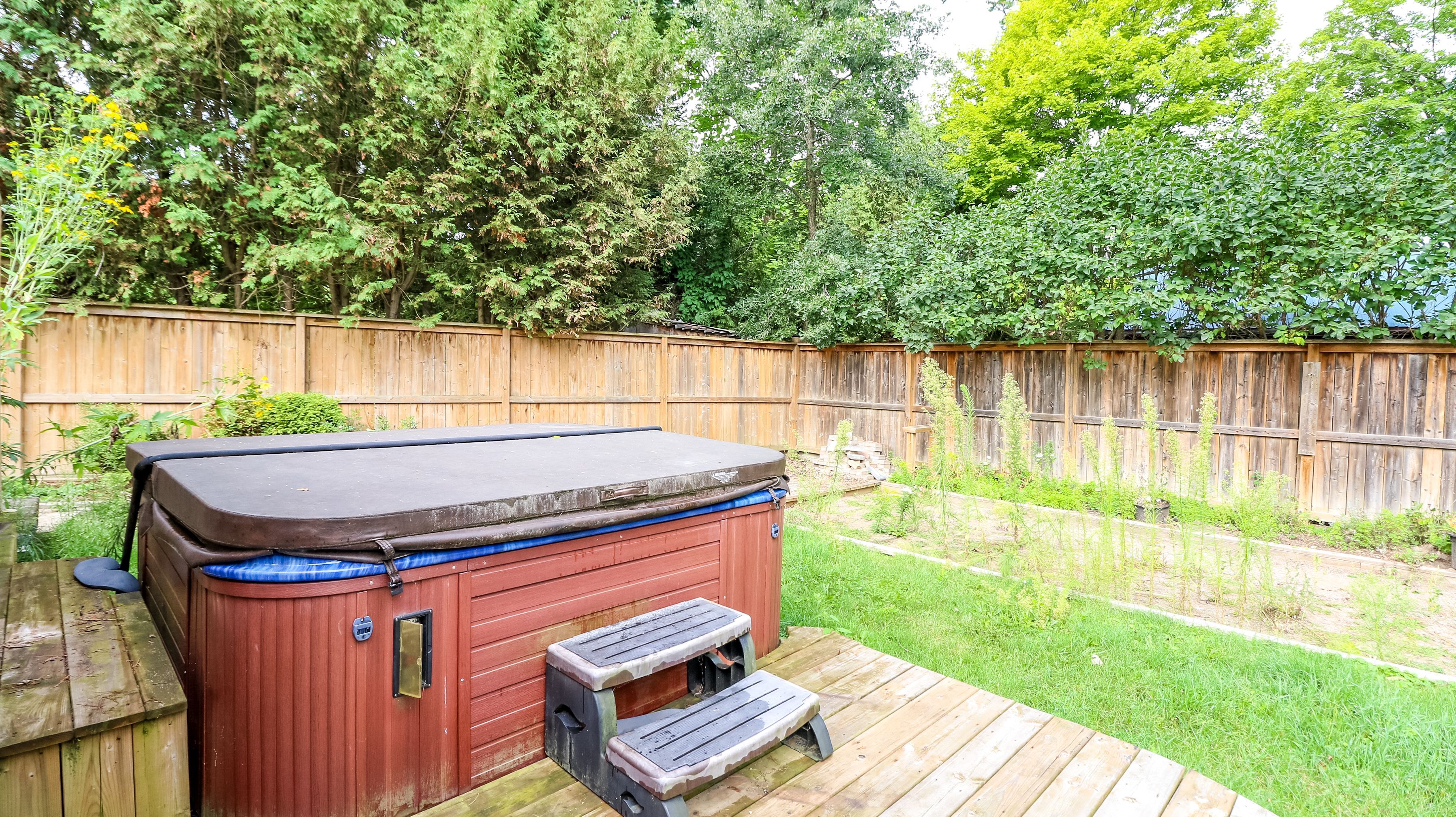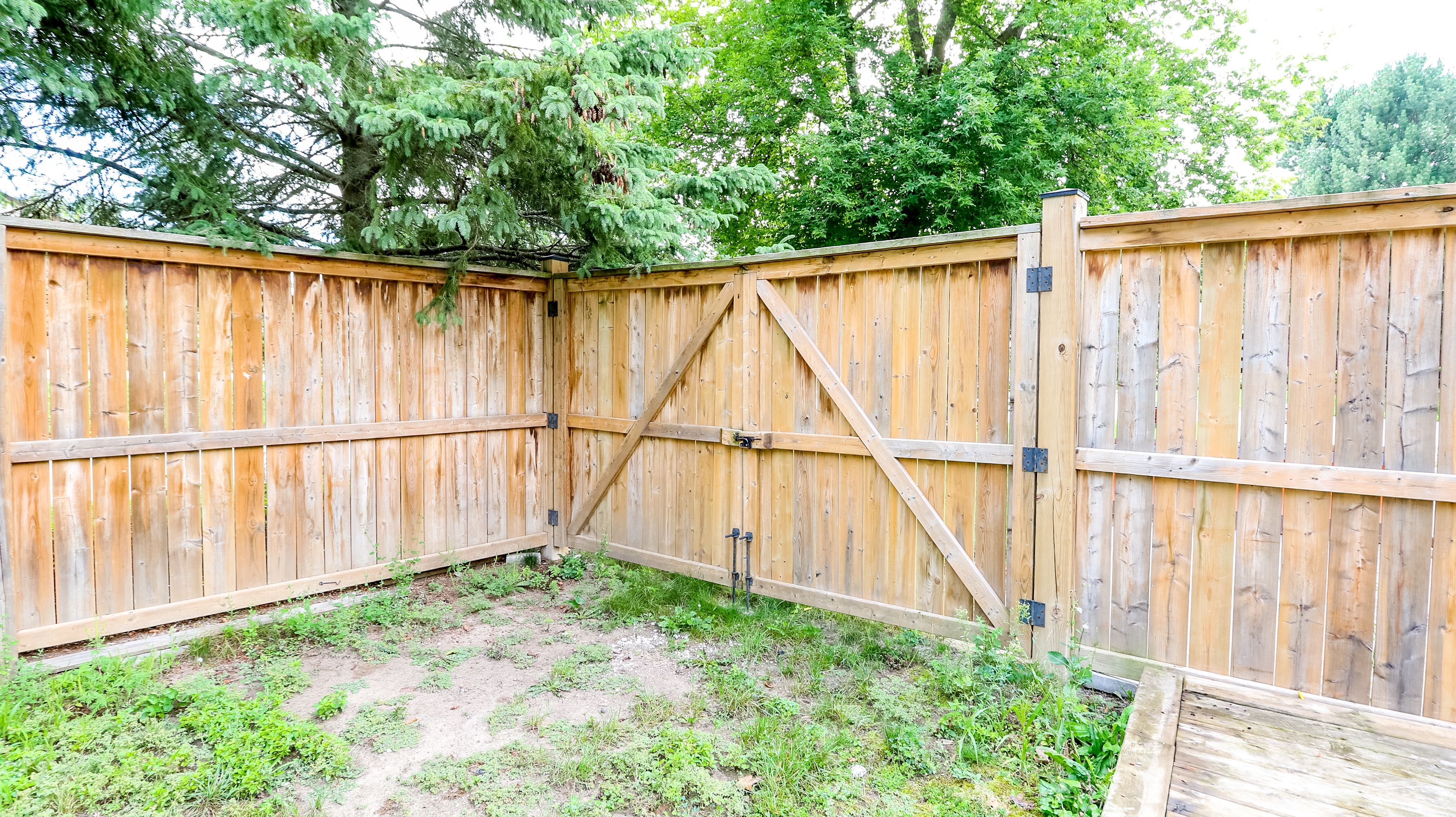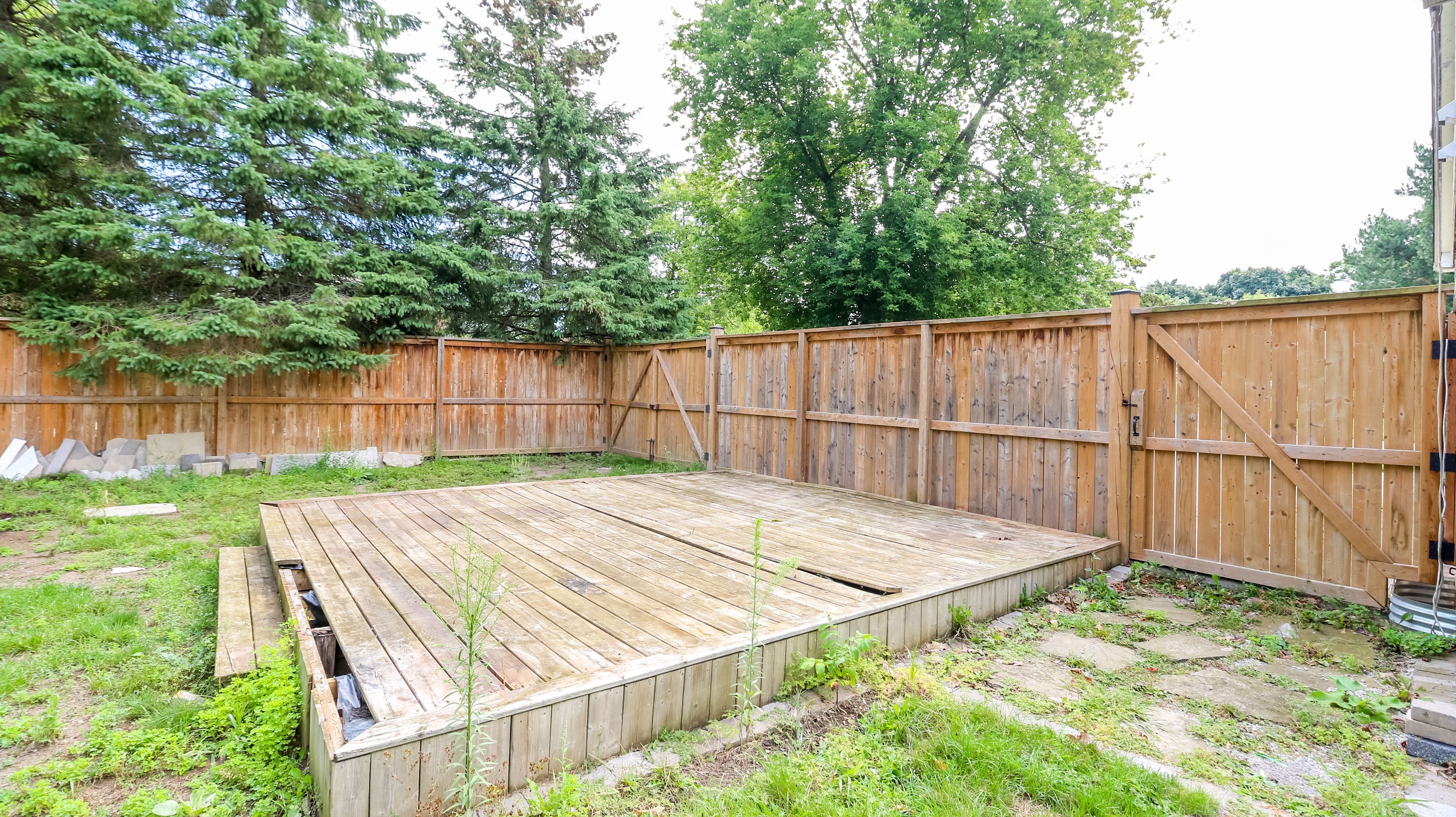 • Spacious fenced backyard with two decks and a shed for outdoor use.