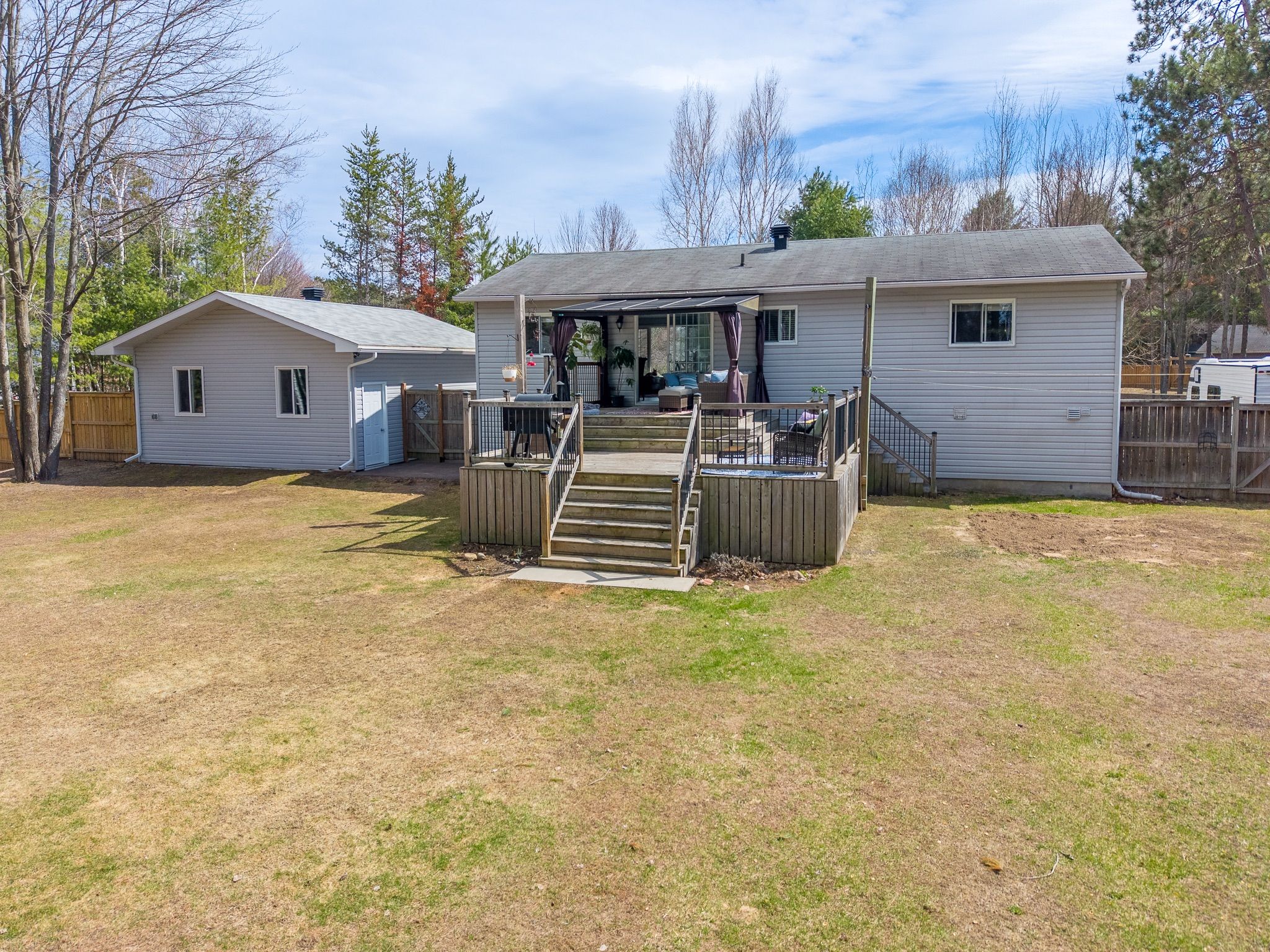 Welcome to 18 cardinal crescent in the forest, a sought-after family-friendly neighbourhood known for its estate-sized lots, mature trees, trails, parks, and convenient access to schools and amenities. This raised ranch offers warm curb appeal with a brick front, concrete walkway, and established garden beds, all set on a fully fenced property with excellent space for outdoor living, play, and vegetable gardening. Inside, the bright living room features large windows that fill the space with natural light, while bamboo flooring runs through the main living areas and bedrooms. The spacious dining area opens to a two-tier deck with pergola, creating an inviting extension of the home for relaxing, entertaining, and enjoying the backyard throughout the seasons. The main level also includes three comfortable bedrooms and an updated full bathroom. The lower level adds excellent versatility, with a large family room featuring a gas fireplace and built-in cabinetry, perfect for movie nights, games, and extra storage. This level also includes a finished laundry room, a den ideal for a home office, gym, or hobby space, plus a fourth bedroom and full bathroom, offering great flexibility for guests, teens, or extended family. Outside, enjoy summer evenings around the fire pit, space to garden, and room for kids and pets to play. A recently built detached garage, approximately 22' x 24', is insulated and equipped with electrical, making it an outstanding workshop, storage area, or hobby space. A wonderful opportunity to enjoy space, privacy, and a true neighbourhood feel in one of the area's most desirable locations. 24 hour irrevocable required on any written offer.