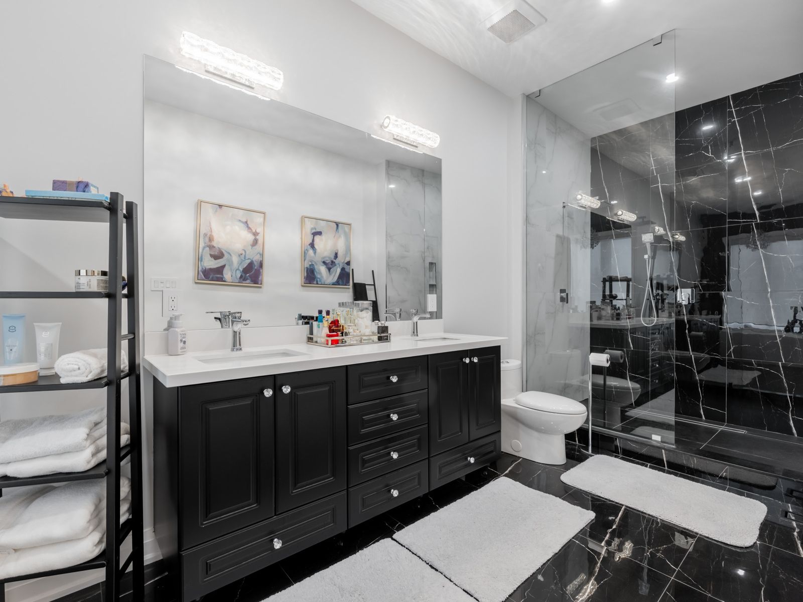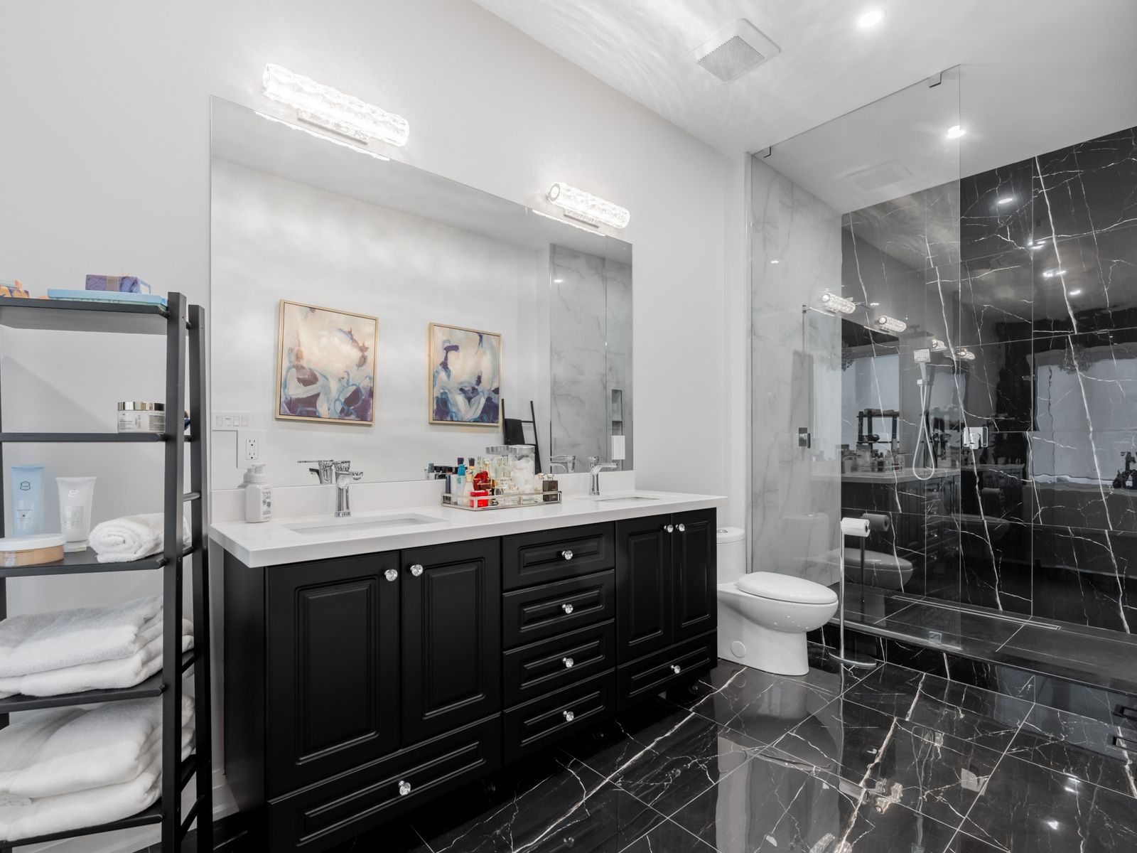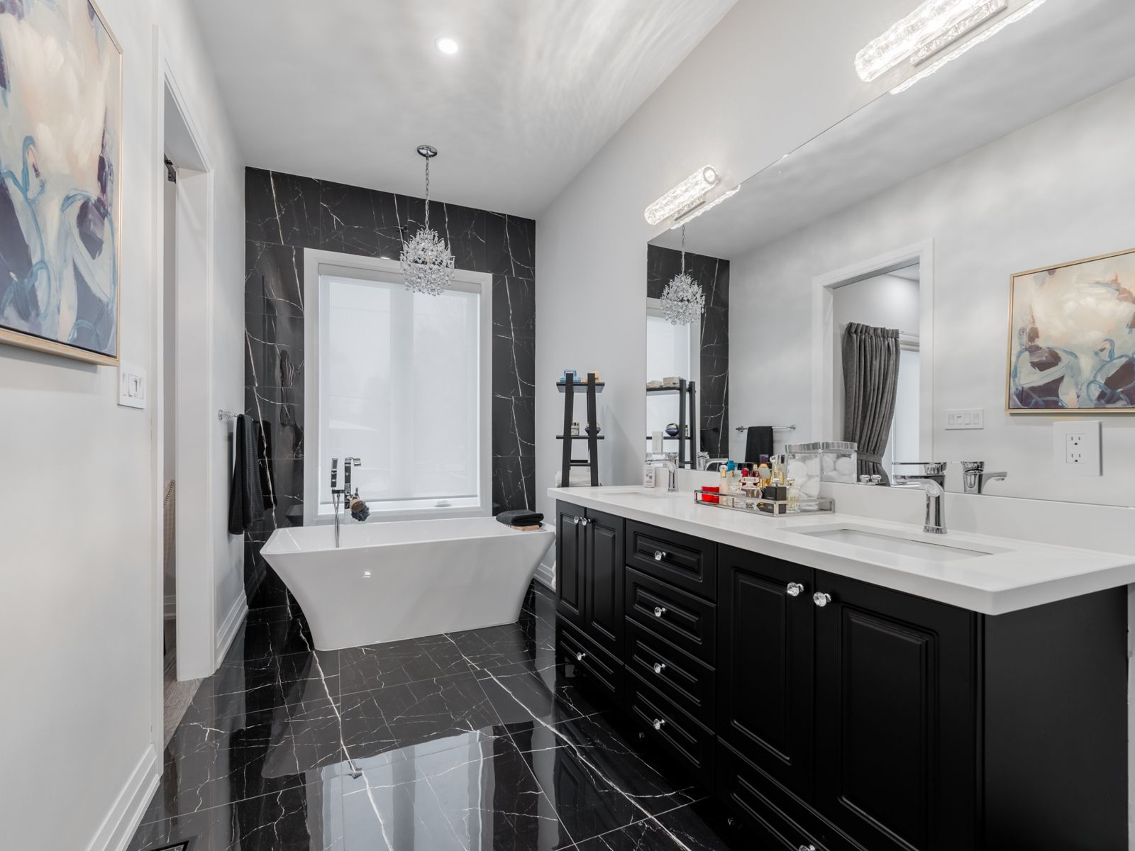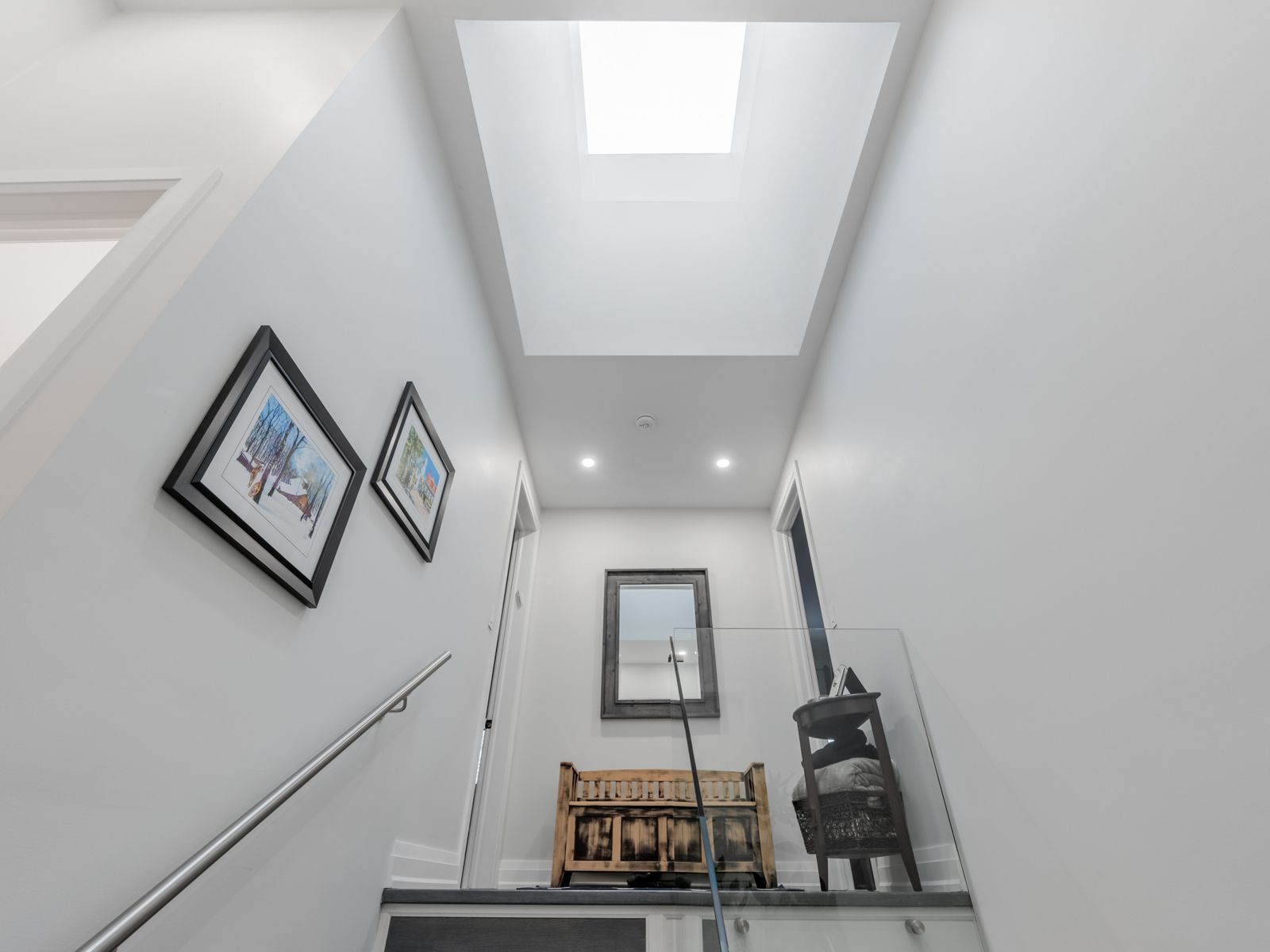 Custom-built luxury residence, offering exceptional craftsmanship, modern elegance, and premium finishes throughout. This sun-filled home with soaring ceilings features an open-concept main floor with wide-plank hardwood flooring, recessed lighting, and a dramatic glass staircase with open risers. The chef's kitchen is a true showpiece with custom two-tone cabinetry, oversized quartz island & breakfast bar, built-in stainless steel appliances, gas cooktop, professional hood fan, designer pendant lighting, and brushed gold hardware. Seamless flow into the dining and living areas makes this home ideal for entertaining. The family room is anchored by a sleek on contemporary fireplace feature wall and expansive windows with modern zebra blinds. A grand foyer welcomes you with oversized porcelain tile, custom built-in cabinetry/bench and designer lighting. The primary retreat offers a tray ceiling, spa-inspired ensuite, and walk-in closet with boutique-style built-ins. Bathrooms feature floating vanities, statement mirrors, and upscale fixtures. Five generously sized bedrooms provide space for family, guests, and home office use. Premium finishes continue throughout with custom millwork, and thoughtful architectural details. Striking modern exterior with exceptional curb appeal completes this rare offering of comfort, style, and sophistication. Additional features include large picture windows, zoned hvac powered by two furnaces and two ac units optimizing comfort and efficiency. Exterior soffit and inground lighting, inground sprinkler system, stone walkway, 10-13 foot ceilings, secondary kitchen in basement, oversized skylight and more. The home overlooks a sloping ravine with privacy, mature trees and beautiful vistas. Steps to transit, shopping, schools and more. Book a showing for this beautiful home today.