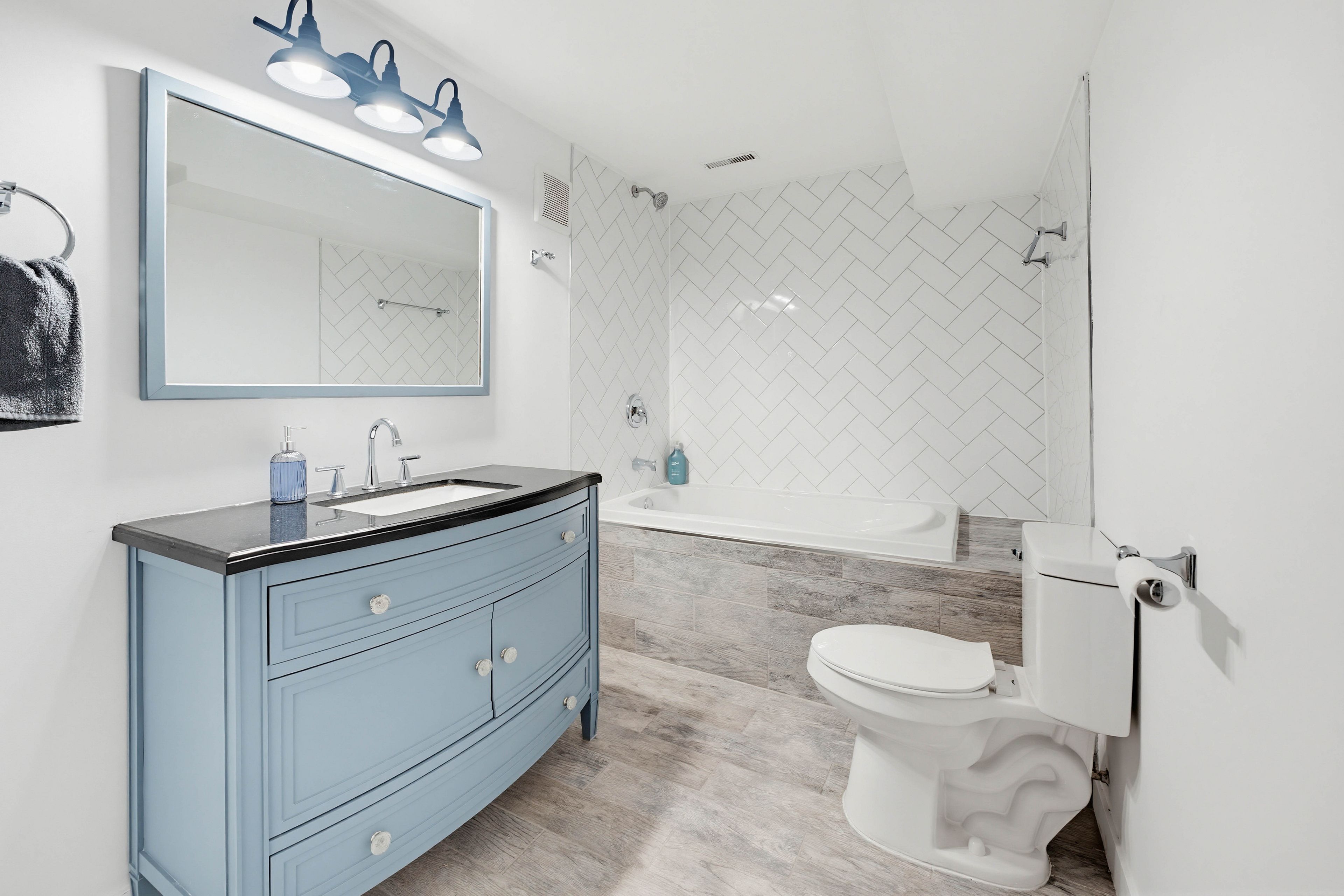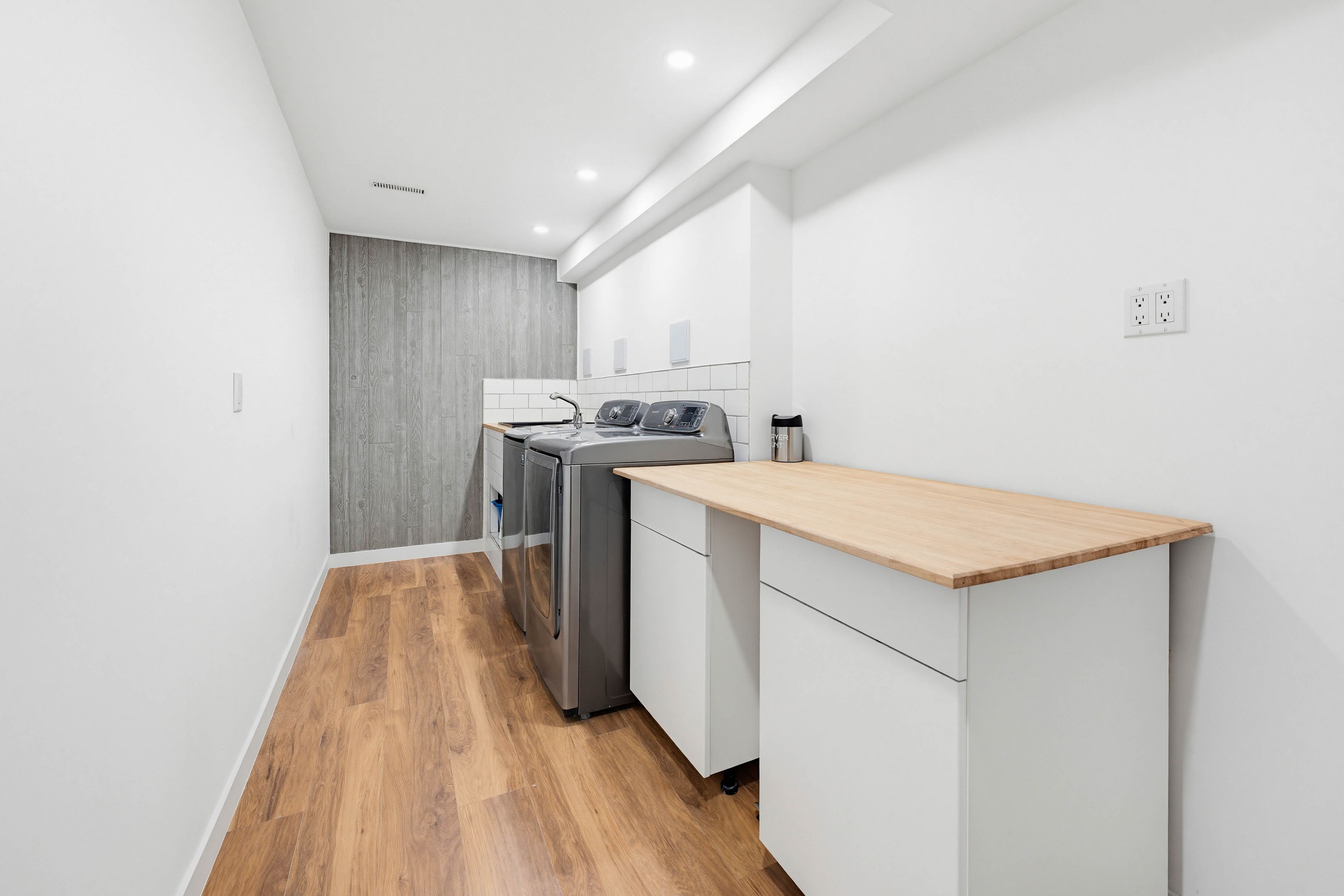• Flexible lower level equipped for potential secondary kitchen and in-law suite.