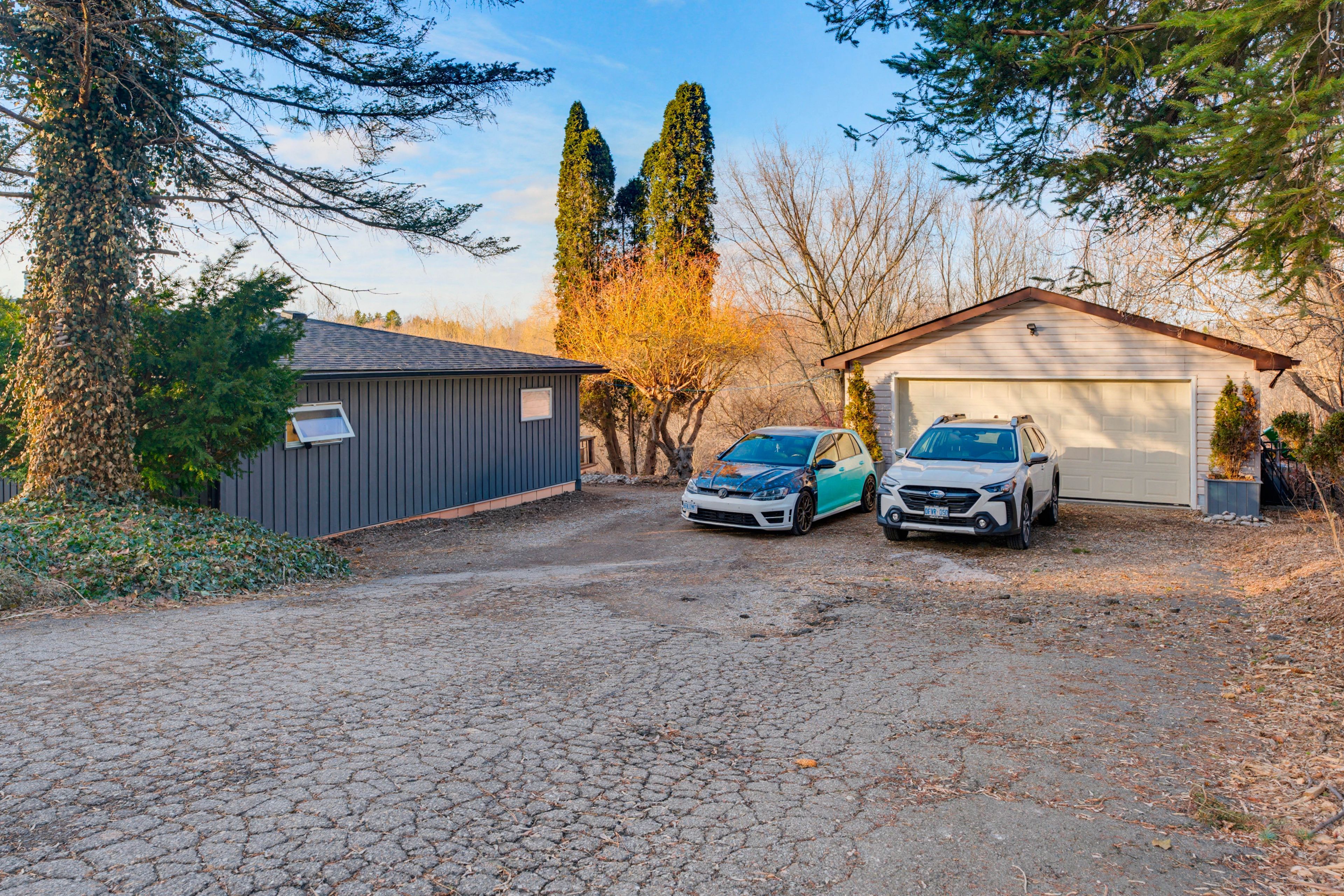 Welcome to the hidden jewel of georgetown featuring over 3. 25 acres and backing onto silver creek, it offers a private, natural backdrop and a beautifully serene setting. Enjoy the convenience of proximity to schools, public transit and shopping. The large lot presents incredible potential for multi-generational living, future use flexibility, and a true estate lifestyle within town limits. Inside, this meticulously upgraded bungalow was renovated down to the studs, featuring a new kitchen, updated washrooms, and a central fireplace that anchors the home. A beautiful view from the living room balcony overlooks the expansive property and surrounding greenery. Engineered for quiet, multi-generational or rental living, the home includes sound insulation between floors. Critical infrastructure has been updated and is turnkey, including a 200-amp electrical service (2018), a new owned high-efficiency furnace (2023), an owned water softener (2022) and updated roof and windows (2017). The walkout basement expands the living space with a brand-new 2026 washroom and laundry renovation. Designed for flexibility, the lower level includes existing roughed in plumbing and electrical hookups for a secondary kitchen in two separate areas. This setup makes it ideal for an in-law suite, extended family living, or rental without requiring major structural modifications. Externally, the property is a dream for hobbyists and professionals alike, featuring a 4-car drive-through garage and a large driveway with parking for 7 additional vehicles (11 total). A separate heated studio has been upgraded with new exterior siding, eavestroughs, and plumbing rough-ins for a potential third kitchen or wet bar. Whether used for multi-family living, a home business, or additional private space, this in-town acreage unicorn combines luxury, privacy, and exceptional functional versatility. For a full list of upgrades and improvements, contact the listing agent.