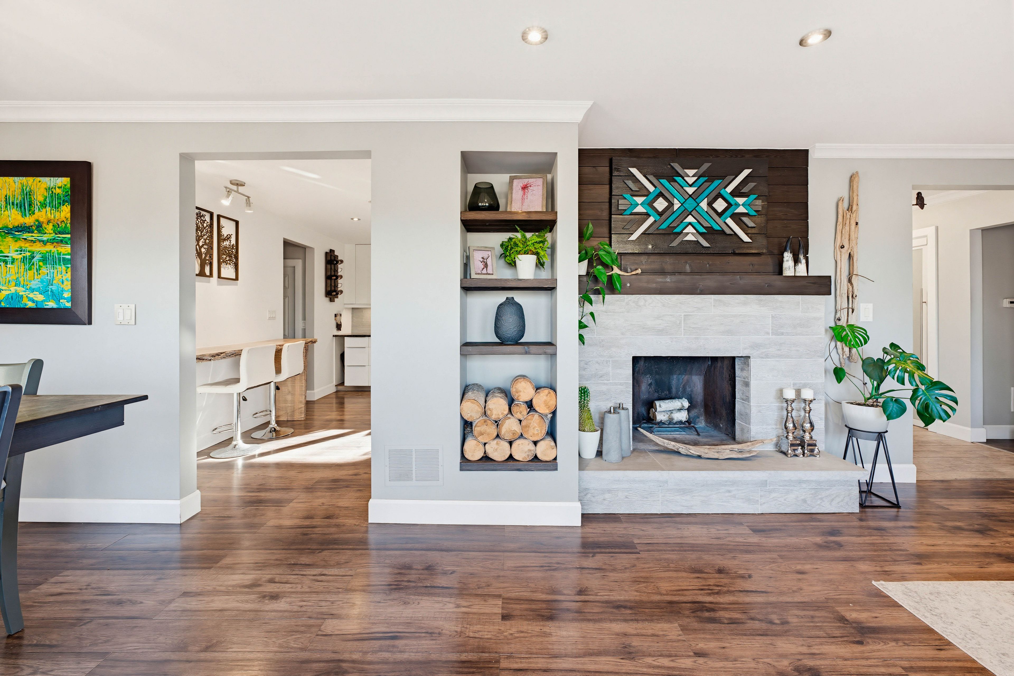 • Meticulously upgraded bungalow with new kitchen, renovated bathrooms, and central fireplace.