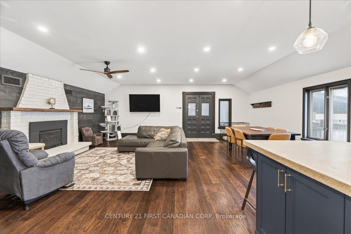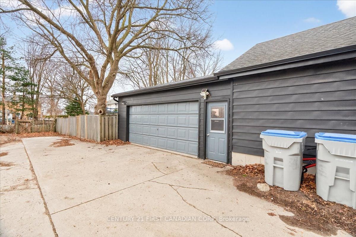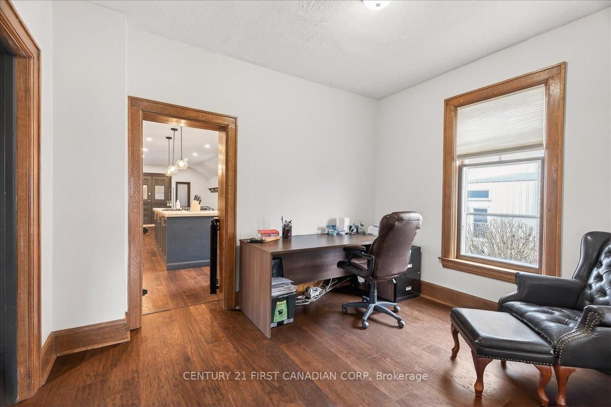Fully renovated and loaded with character, this stunning 2-storey century home sits just steps from downtown strathroy - offering the perfect blend of timeless charm and modern design. From the moment you arrive, the curb appeal and inviting front porch set the tone. Inside, a striking foyer with classic black-and-white tile and an original wood staircase creates a statement you simply won't find in newer homes. The main floor is anchored by a beautifully renovated kitchen featuring custom cabinetry, a statement island, built-in appliances, and designer finishes that feel straight out of a magazine. It flows seamlessly into a bright, open-concept living area with a gas fireplace - ideal for both everyday living and entertaining. What truly sets this home apart is the versatility of its layout, offering a separate front living room, formal dining room, and a dedicated office - perfect for growing families, hosting guests, or working from home. Upstairs features four generously sized bedrooms, including a spacious primary retreat complete with its own private ensuite - a rare and highly desirable feature in a home of this era. A bright sunroom with warm wood ceilings provides a peaceful space to relax and unwind year-round. The bathrooms have been fully redesigned with a clean, modern aesthetic, featuring a luxurious freestanding tub, sleek glass shower, and quality finishes throughout. Outside, enjoy an oversized lot complete with a large concrete driveway, ample parking, and a backyard built for entertaining - featuring a patio and an impressive gazebo, perfect for summer nights and gatherings. Extensively renovated throughout - including kitchen, bathrooms, flooring, and finishes - this home is truly move-in ready while preserving the character that makes century homes so special. Rarely do homes like this come to market with this level of finish, space, and location - don't miss your opportunity to make it yours.