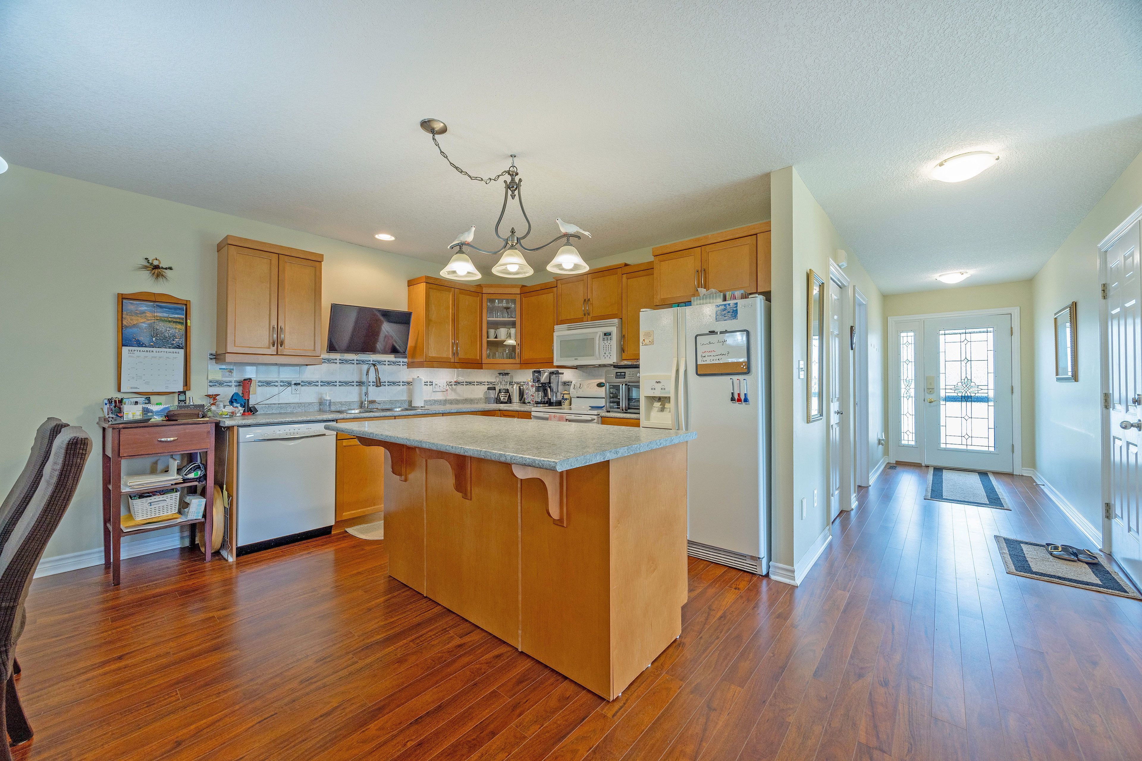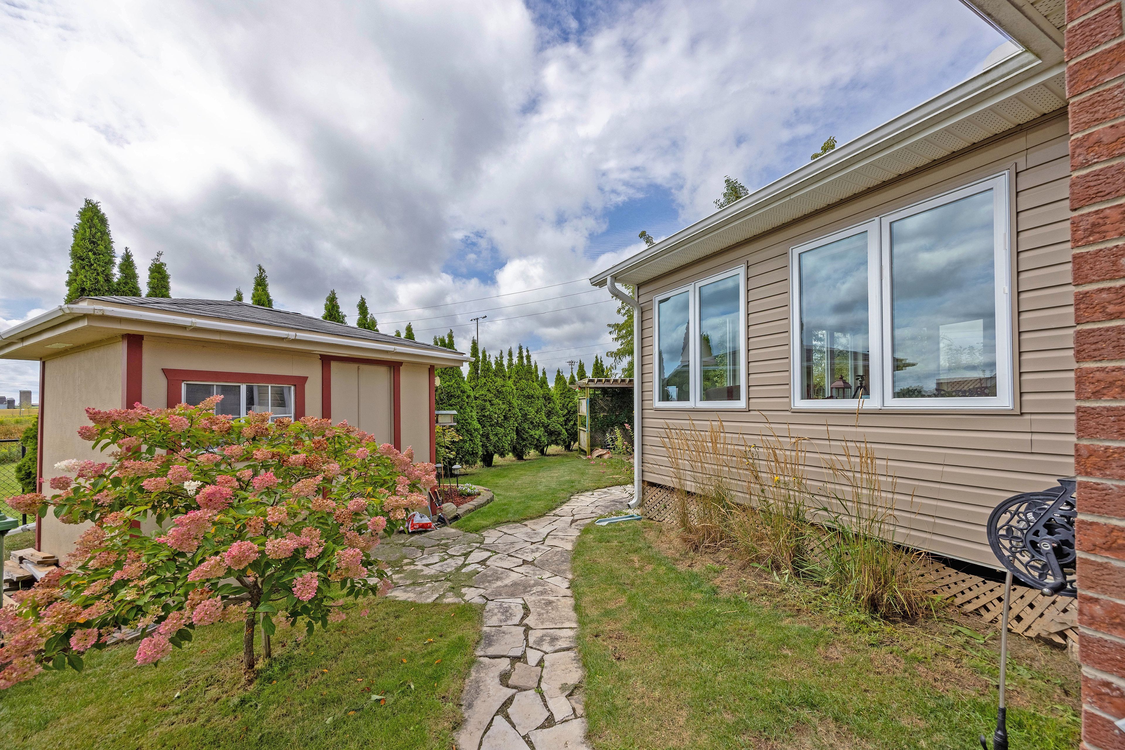 This spacious two-bedroom, semi-detached bungalow is situated on a friendly cul-de-sac, offering both comfort and a welcoming community atmosphere. The main floor is thoughtfully designed, featuring a full bathroom and an open-concept kitchen, dining area, and living room. A newer three-season sunroom, added in 2021, boasts a vaulted ceiling and provides an ideal space for relaxing during summer evenings or expanding your living area. The master bedroom includes large double closets for ample storage and a full four-piece ensuite bathroom, ensuring privacy and convenience. The finished lower level offers flexibility for your personal touches. It includes a spacious recreation room, a den, another full four-piece bathroom, and abundant storage options. With no neighbor's behind, residents enjoy privacy and easy access to walking trails. The nearby doug tarry sports complex further enhances the appeal, making this home ideal for small families, couples, or those seeking to downsize. Updates: roof 2021, water heater 2021.