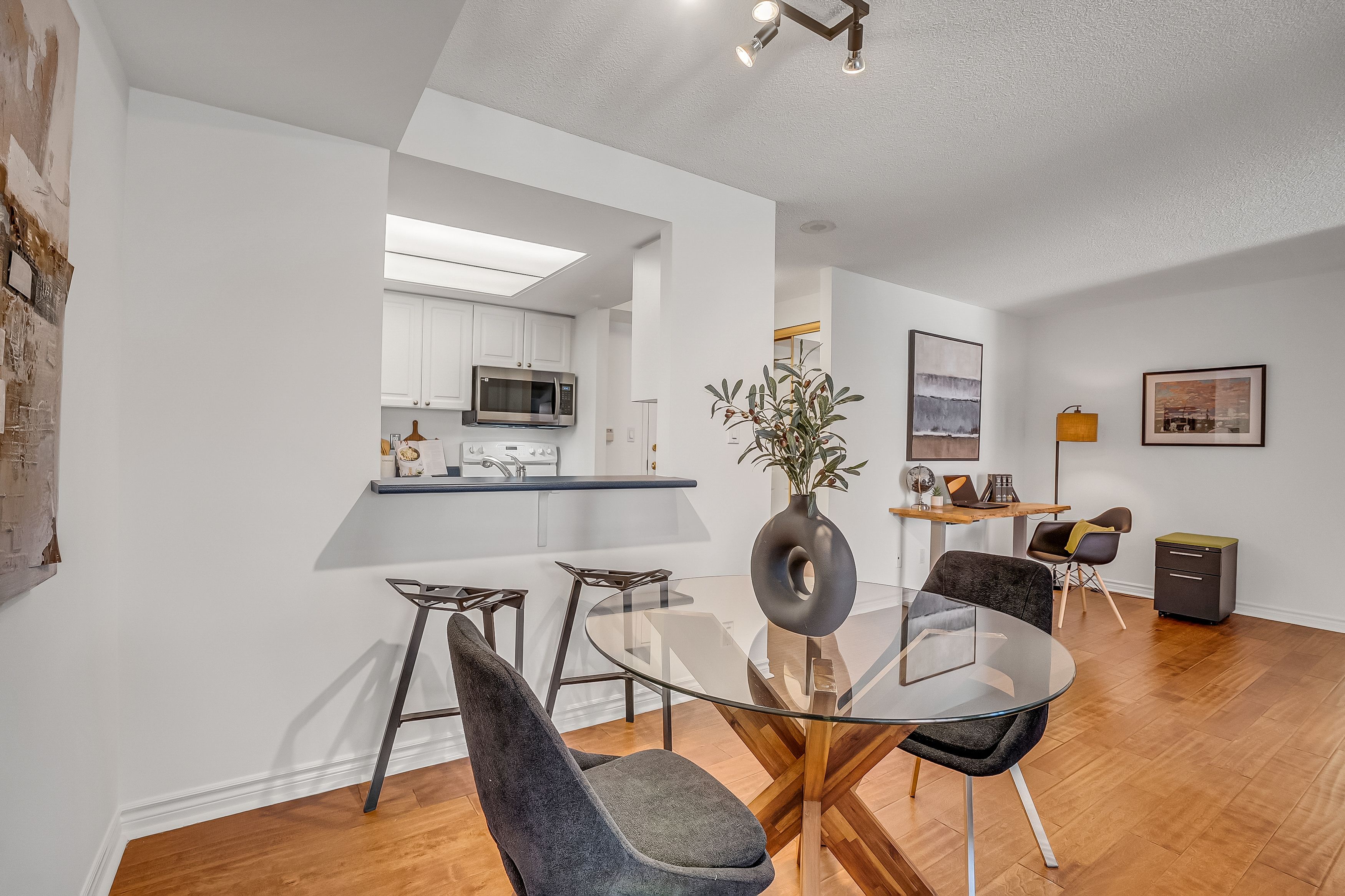 • Spacious 1-bedroom suite with an open-concept office for remote work.
